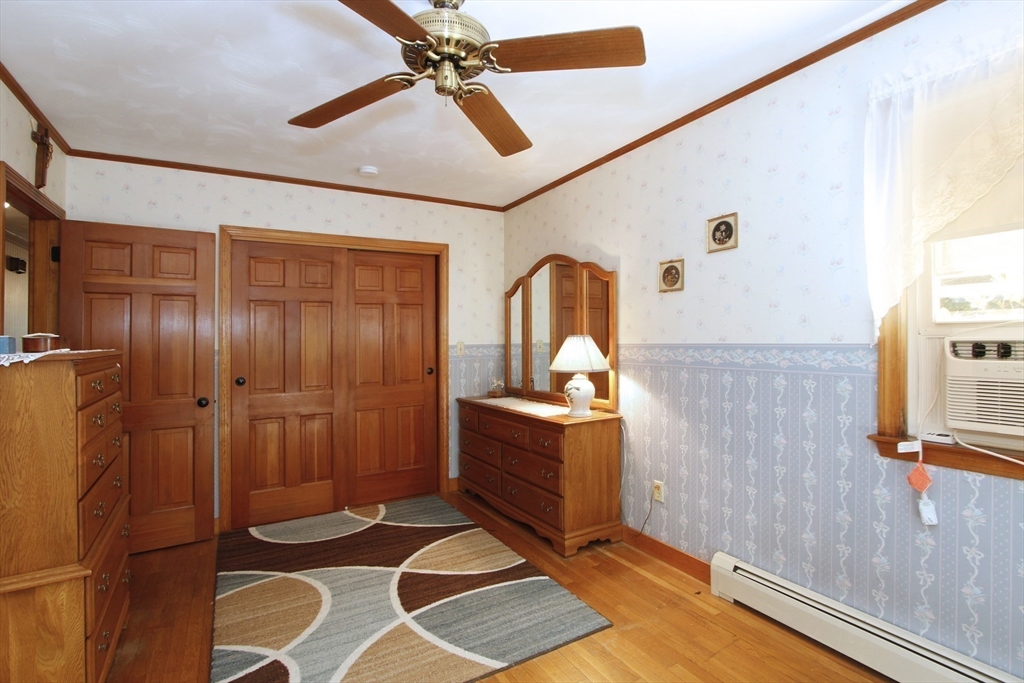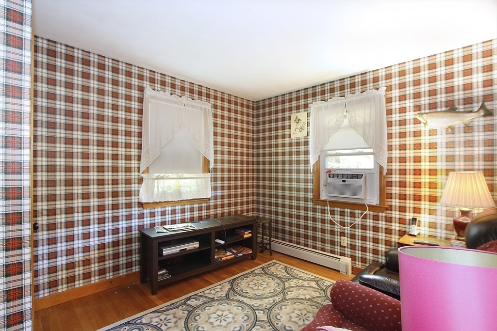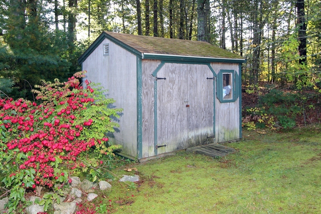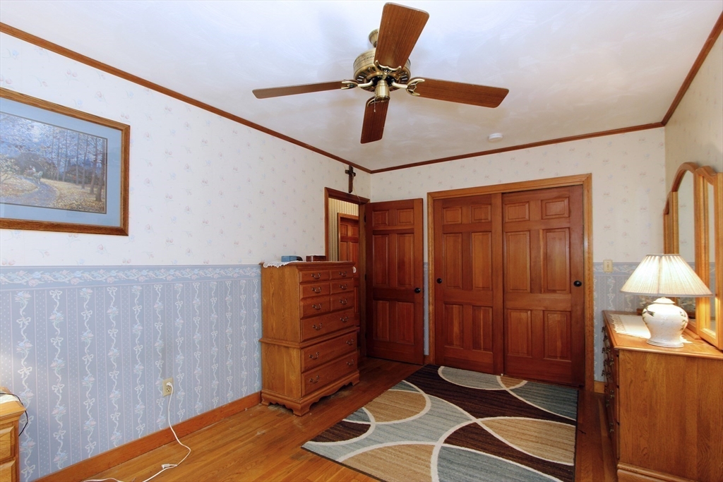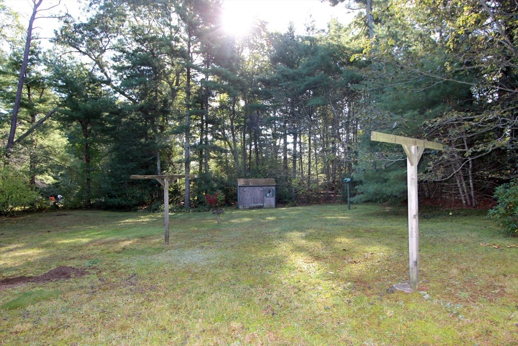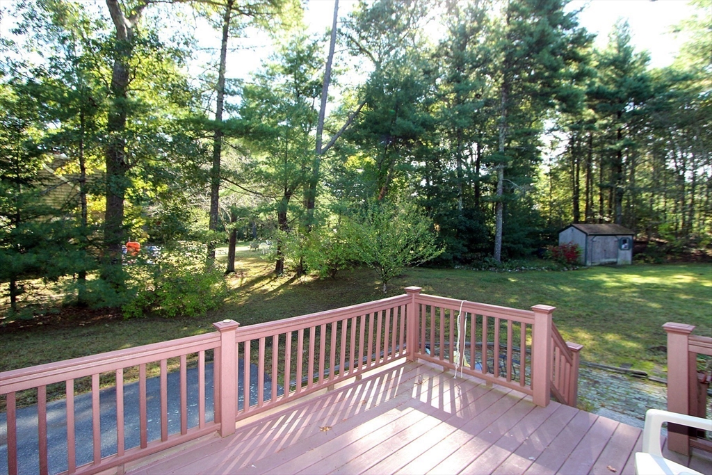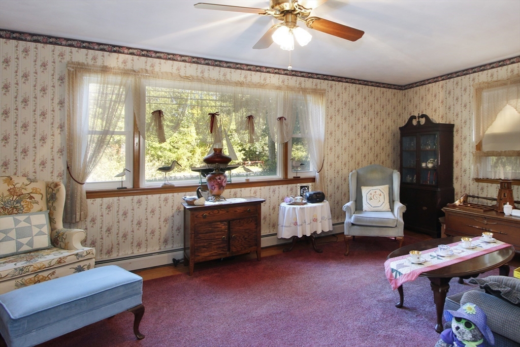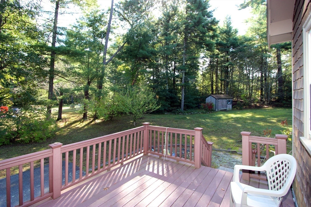 Discover this delightful ranch nestled in pines. This highly desirable single level home is move-in ready to make your own, The heart of this home is undoubtedly the large eat-in kitchen complemented by the expansive counters & original immaculate pine cabinets, The living room is large & spacious, enhanced by crown molding, nice floor space, entrance to the front farmer's porch, and large picture window overlooking the picturesque yard. Each bedroom also features crown molding, ceiling fans, hardwood floors throughout, and solid pine doors throughout. Upgrades include an updated furnace/oil tank, newer well pump, and newer vinyl windows. Outside, the property opens to a generous lot of 21,867 square feet, offering a peaceful woods view that promises tranquility and privacy alongside a deck perfect for enjoying the serene natural surroundings.