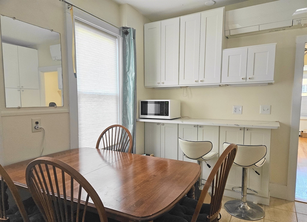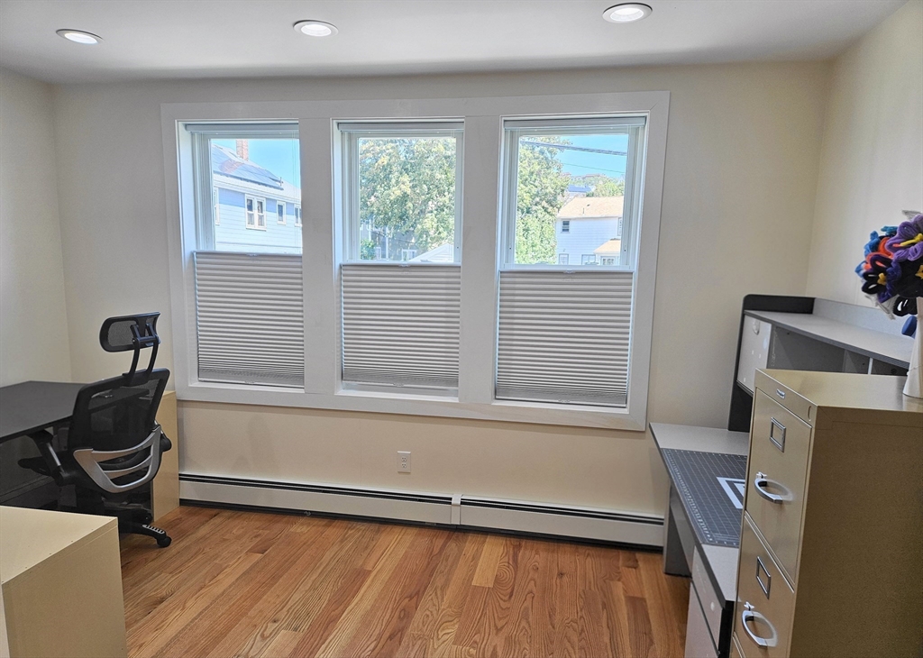Well maintained 1 bedroom apartment on first floor of large two family house. Rent includes ELECTRIC, WATER and TWO parking spaces. Double pane insulated windows, hardwood floors throughout living room, bedroom and office areas. Kitchen has tile flooring, stone countertops, wood cabinets, stainless steel refrigerator, dishwasher and gas stove with vented hood. The large eat-in kitchen with plenty of cabinets presents a functional space to prepare meals with ease from simple breakfasts to elaborate dinners. The full bathroom has a jacuzzi tub providing a private space to relax and recharge. Apartment has DUCTLESS MINI SPLITS for heating/cooling. Your own washer and dryer in the basement. This apartment is a fantastic opportunity to create a personalized haven within a well-situated location. 2 minute walk to Bus (411, 108, 430) to Malden Center. Close drive into Boston with easy access to Route 1. No pets, no smoking, must have good credit and proof of income is required.