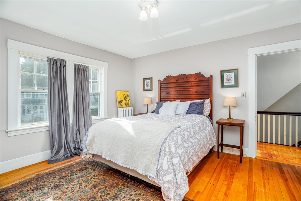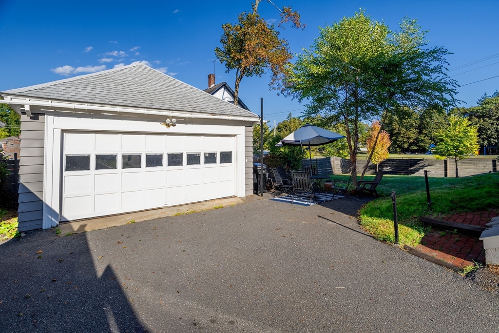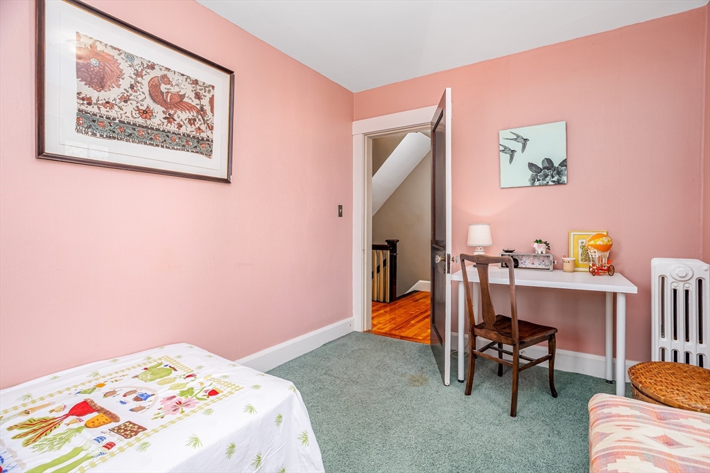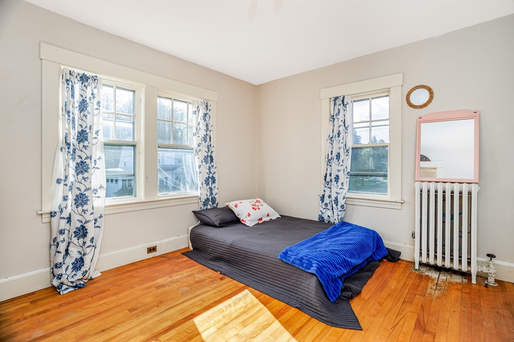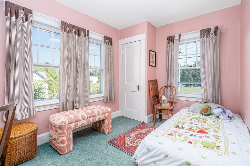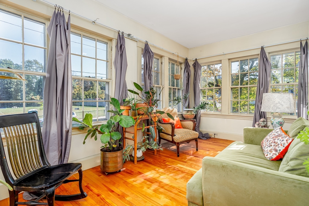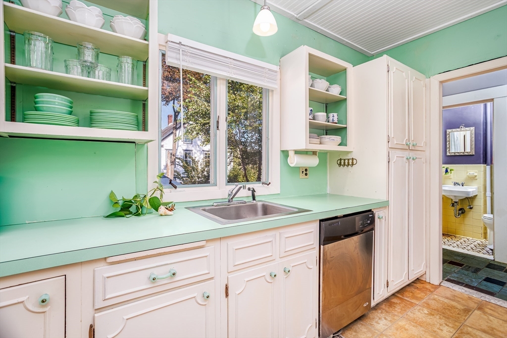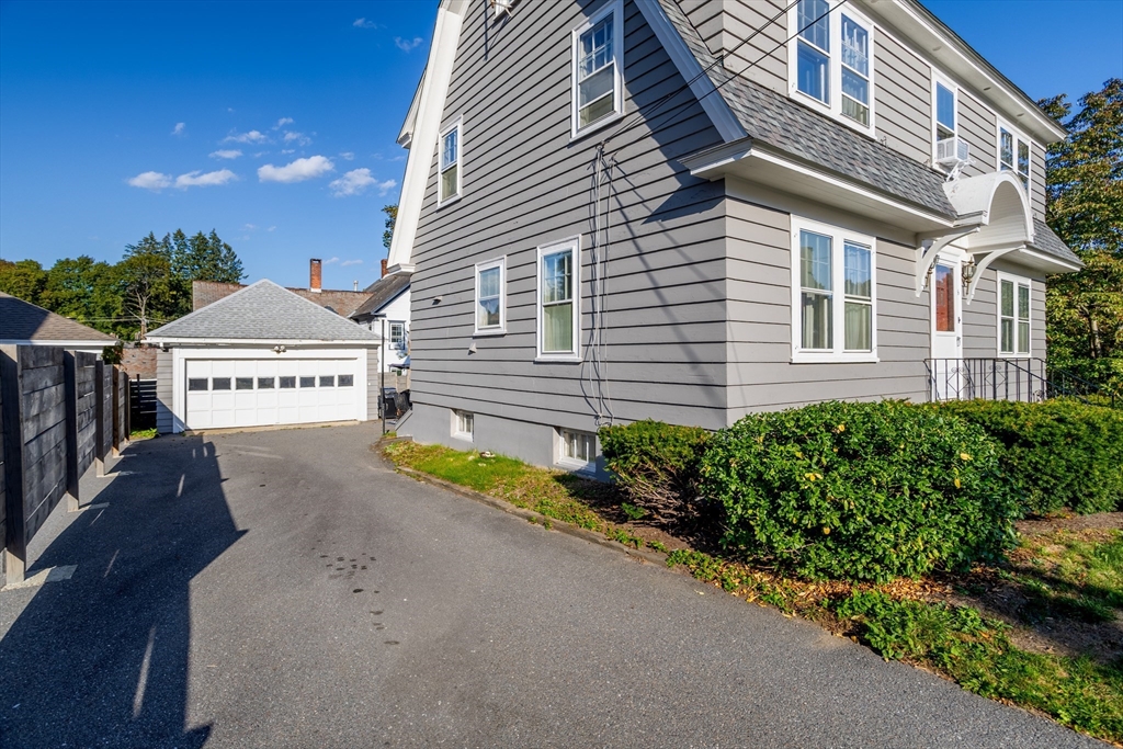 Step into this bright and beautiful Dutch Colonial Revival full of character and warmth! The heart of the home is the spacious kitchen featuring stainless steel appliances, an abundance of cabinets & counter space, plus a charming built-in bench that creates the perfect little eat-in nook. French doors invite you into the formal dining room, highlighted by a built-in China cabinet, while another set of French doors opens into the living room with a cozy fireplace. Off the living room find a sunroom that floods the space with natural light. A convenient half bath on the 1st floor is perfect for guests. Upstairs, the primary bedroom offers hardwood floors & 2 closets, with 3 additional bedrooms & a full bath completing the 2nd level. The partially finished basement provides even more space with a bar and half bathroom, ideal for entertaining. The walk-up attic offers potential to finish & add value with even more living space! Enjoy a field & playground across the street. Close to Rt 2!