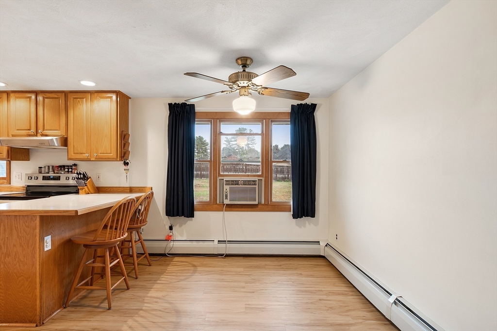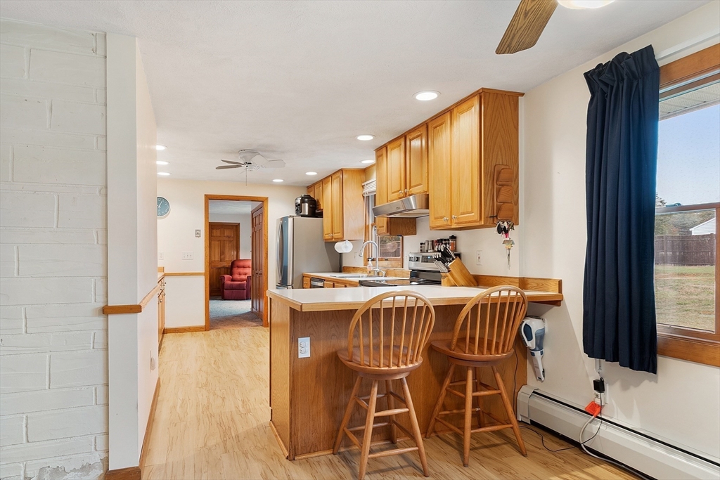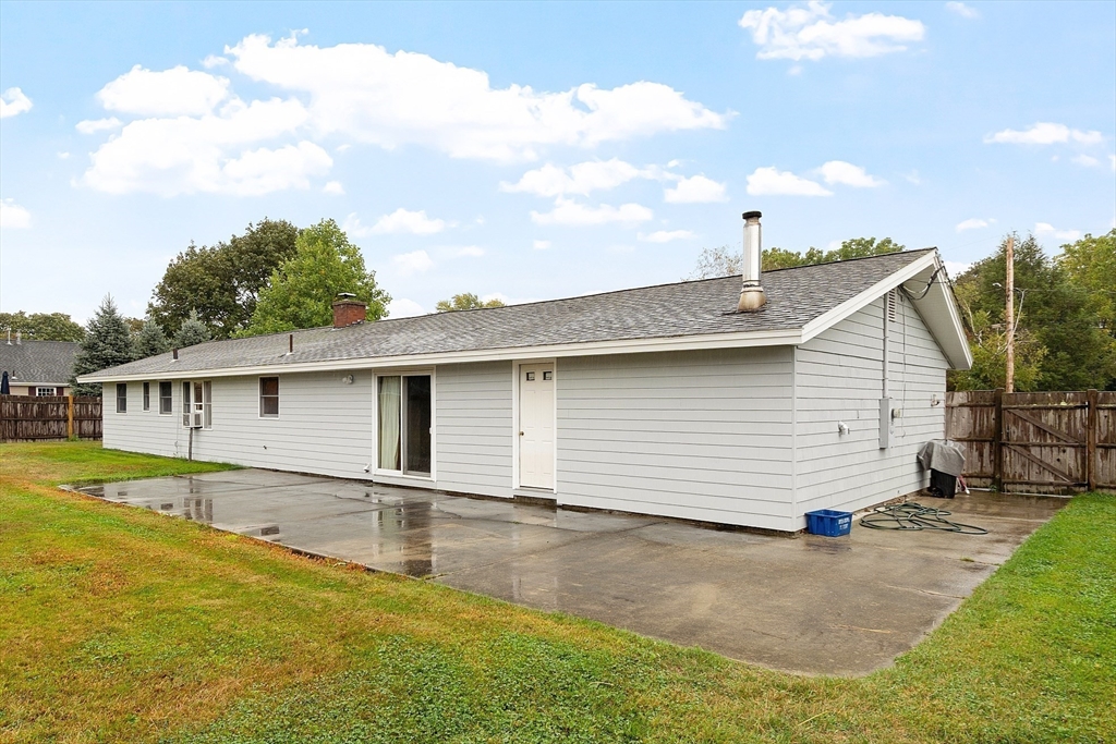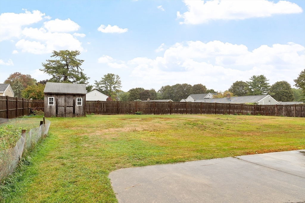 Located in one of the most popular and convenient neighborhoods in Danvers, this Woodvale ranch is bright and spacious. The front-to-back family room with bay window offers handy laundry hookups and access via a sliding door to a large patio and fenced yard with shed that's perfect for pets, sports, cookouts and enjoying the outdoors. Hang out with a book and a cup of coffee in the living room with its cozy wood pellet stove and bay window - a perfect spot for watching snow fall and spring bloom. The open concept kitchen/dining room offers plenty of cabinet and counter space for cooking, entertaining and storage, with stainless appliances and a peninsula for casual meals or food prep. The primary bedroom has a private half bath; two additional bedrooms and a full bath offer space for all. Keep your vehicle and yard equipment protected in the attached garage, with added storage and workshop space. Upgraded electrical, young boiler, forced hot water heat and an unbeatable location!