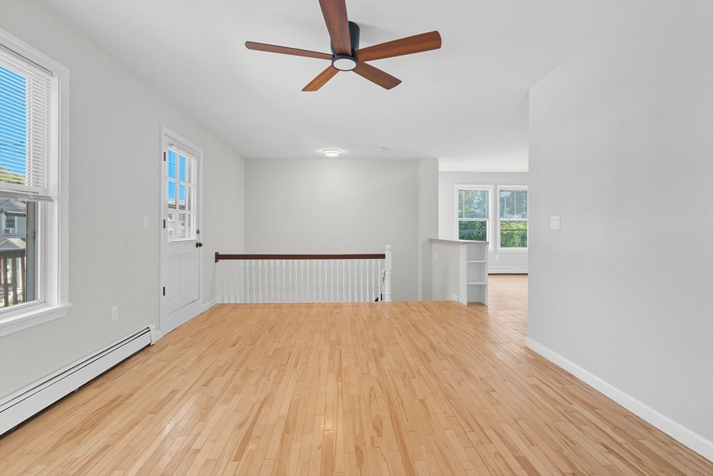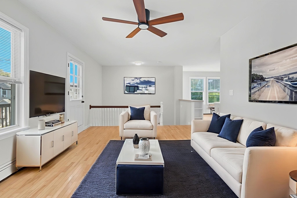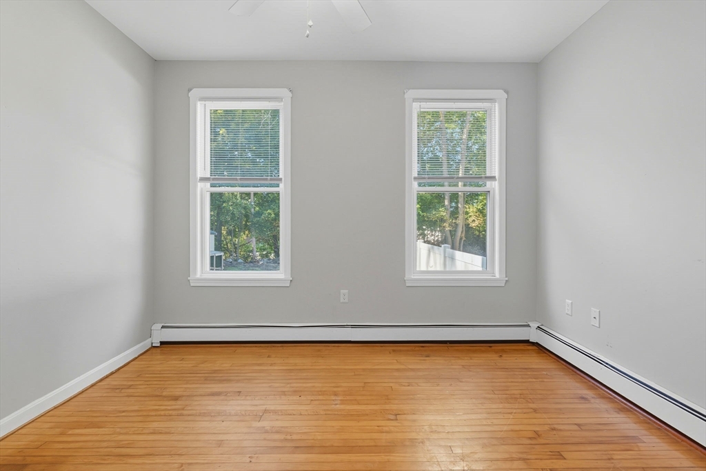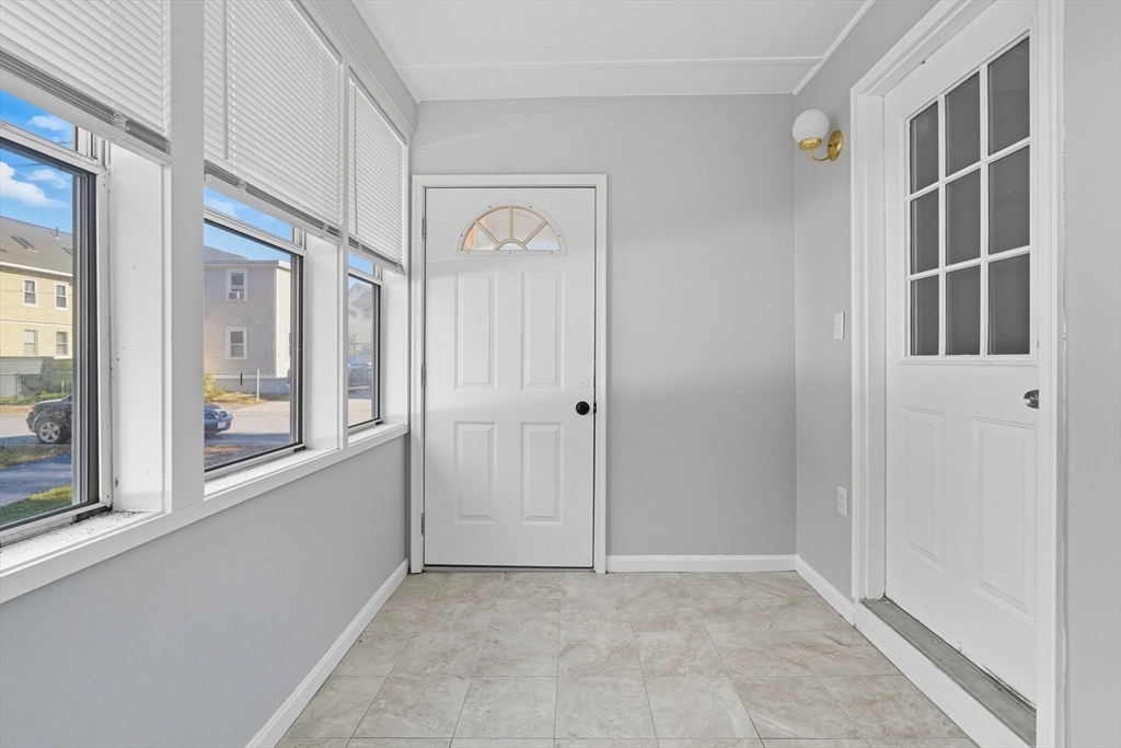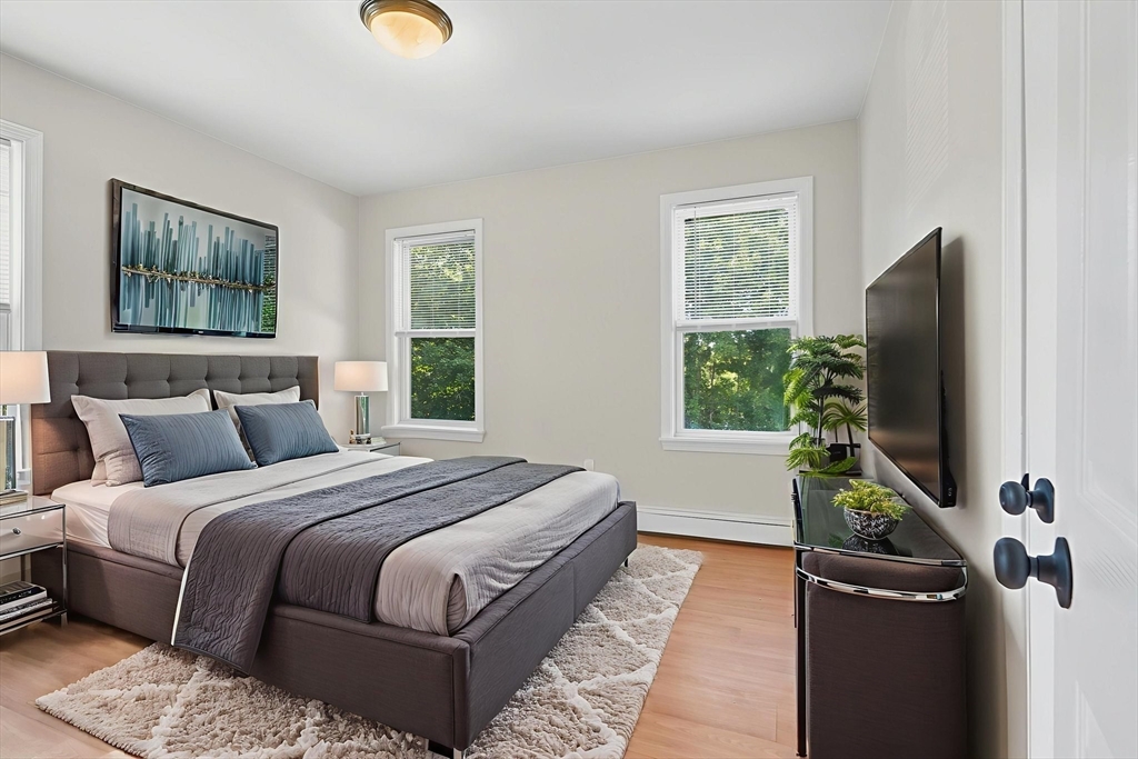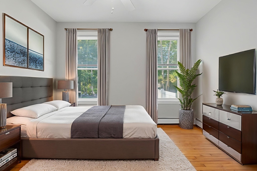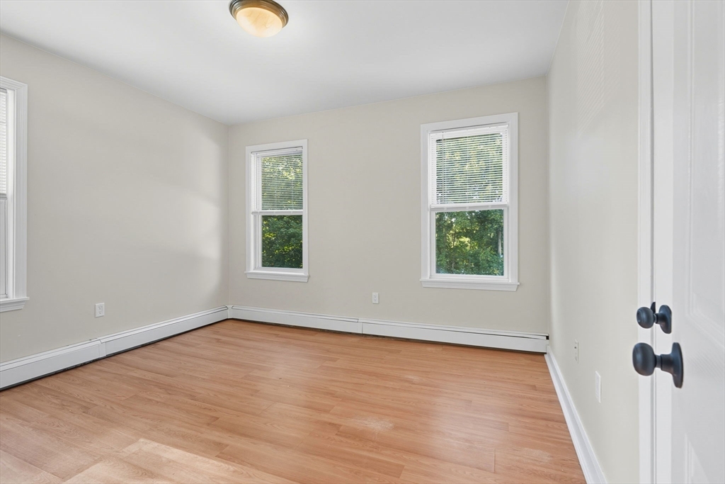 Unique, bright and spacious layout for this well maintained and thoughtfully updated 2-family home just seconds to downtown shops and restaurants and moments to Rte 495. The first floor unit features an open concept living/dining/kitchen with fresh white cabinets and quartz counter tops. There is also a wood stove for cozy nights. Access to the large yard is via the private back deck or from the 3 season sunroom located off the primary bedroom. The second floor unit is freshly painted, with two good sized bedrooms, updated bath and hardwood flooring throughout. A big living room opens to both a large eat-in kitchen with abundant white cabinetry and a private roof deck overlooking the fenced yard. This unit also has a mudroom entry on the first floor and a walk-up attic for great storage and for potential future finished living space. Young heating systems, extra storage and laundry hookups in the basement. New fencing. This is the perfect property for an investor or an owner occupant.