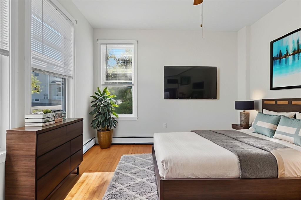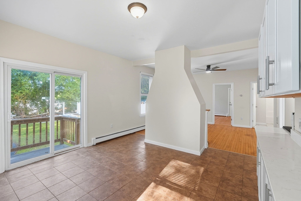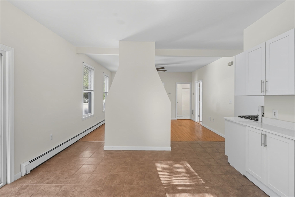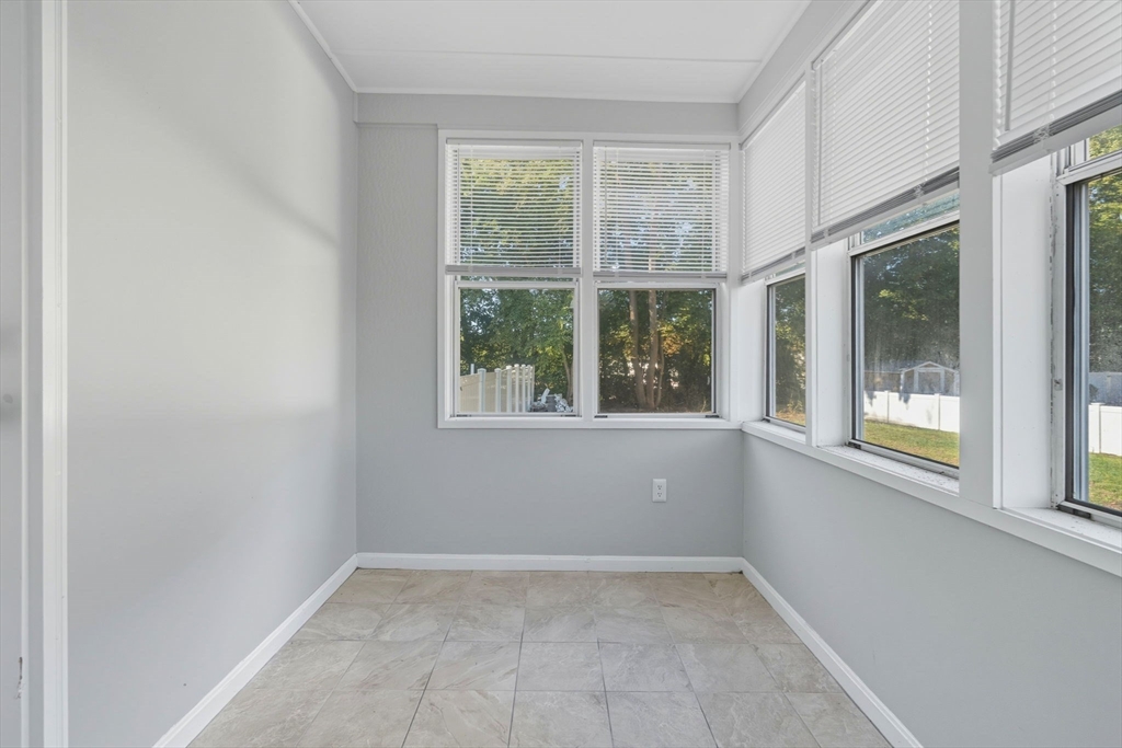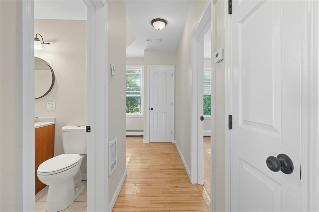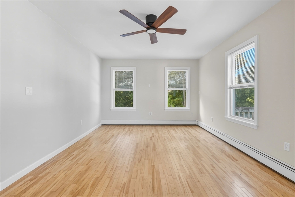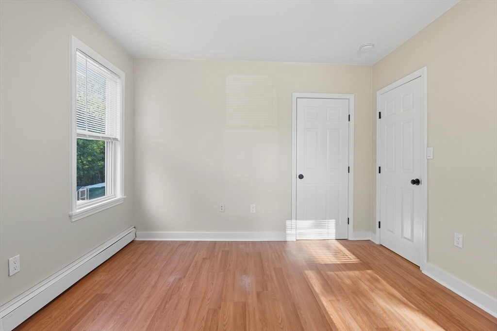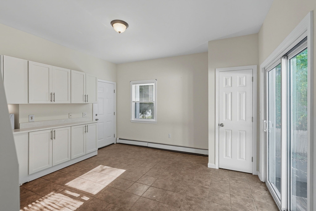 Unique, bright and spacious layout for this well maintained and thoughtfully updated 2-family home just seconds to downtown shops and restaurants and moments to Rte 495. The first floor unit features an open concept living/dining/kitchen with fresh white cabinets and quartz counter tops. There is also a wood stove for cozy nights. Access to the large yard is via the private back deck or from the 3 season sunroom located off the primary bedroom. The second floor unit is freshly painted, with two good sized bedrooms, updated bath and hardwood flooring throughout. A big living room opens to both a large eat-in kitchen with abundant white cabinetry and a private roof deck overlooking the fenced yard. This unit also has a mudroom entry on the first floor and a walk-up attic for great storage and for potential future finished living space. Young heating systems, extra storage and laundry hookups in the basement. New fencing. This is the perfect property for an investor or an owner occupant.