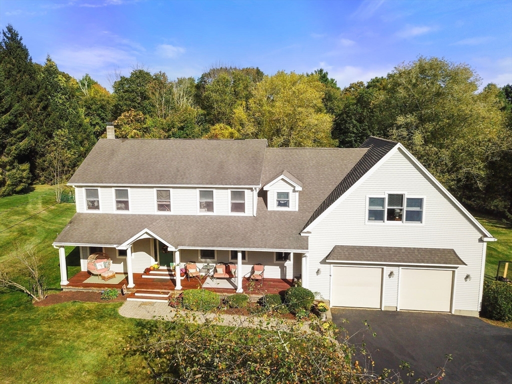 OPEN HOUSE SAT 10/4 12:30-2:00pm. A traditional Farmer's Porch with an inspired mahogany deck welcomes you to this classic home on three stunning acres! An exceptional opportunity to experience comfortable living in a serene setting, it is well suited for multi-generational living. Natural light fills the Dining area while ample prep space, a granite island, and young SS appliances define the kitchen. Find peaceful relaxation and the warmth of a Harmon pellet stove in the Sitting Room. Family Room sliders extend living space to a low maintenance deck (2020) with a fabulous view. The second floor presents four Bedrooms, three full Baths boasting tile floors, and laundry area. Flexible Recreation Room (2021) living area over the garage features a pull-down movie screen, a full kitchen and bath, and separate front entrance for your Super Bowl guests or college student living at home. Updates include vinyl siding, oversized garage, and beautiful oak floors.