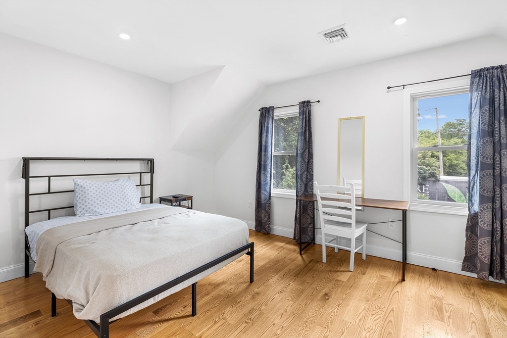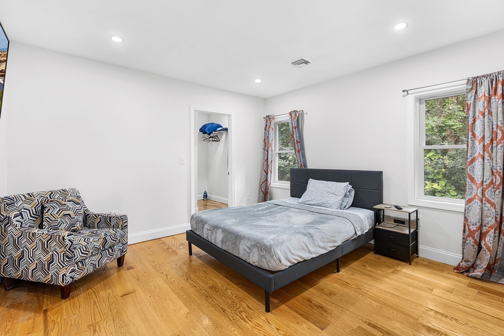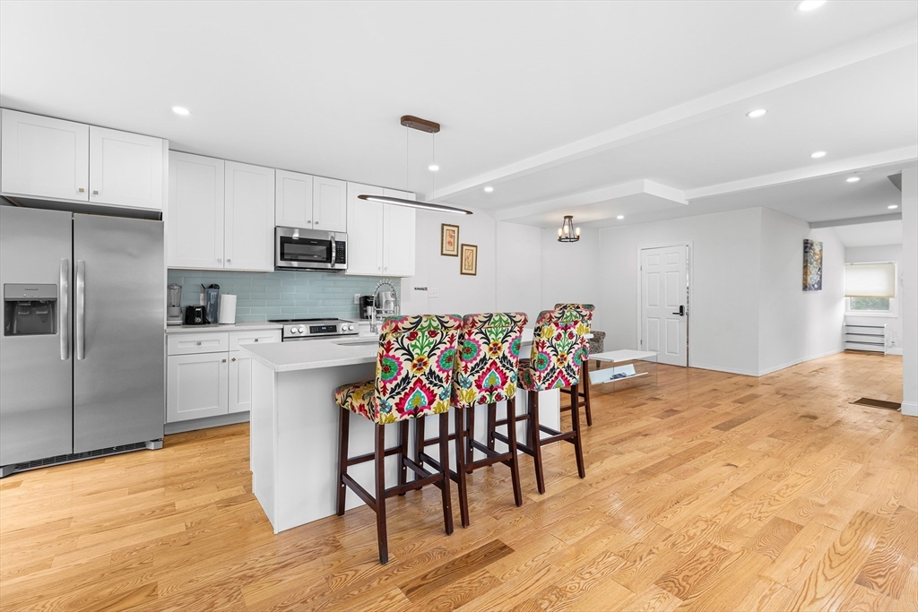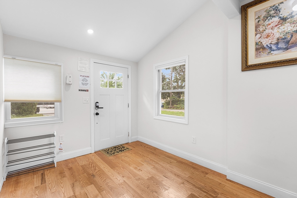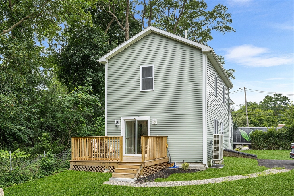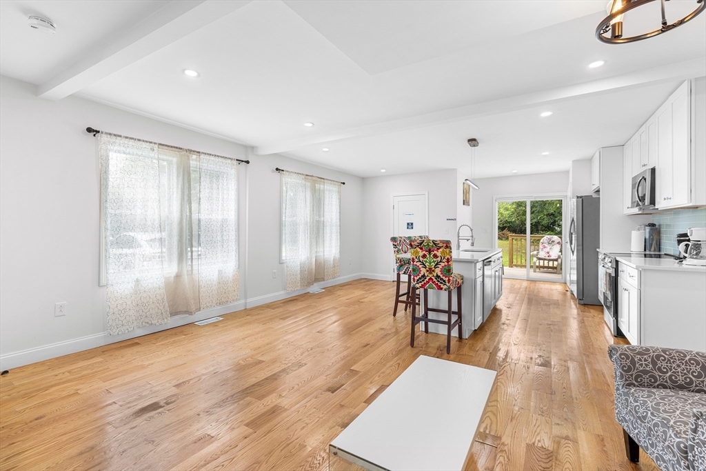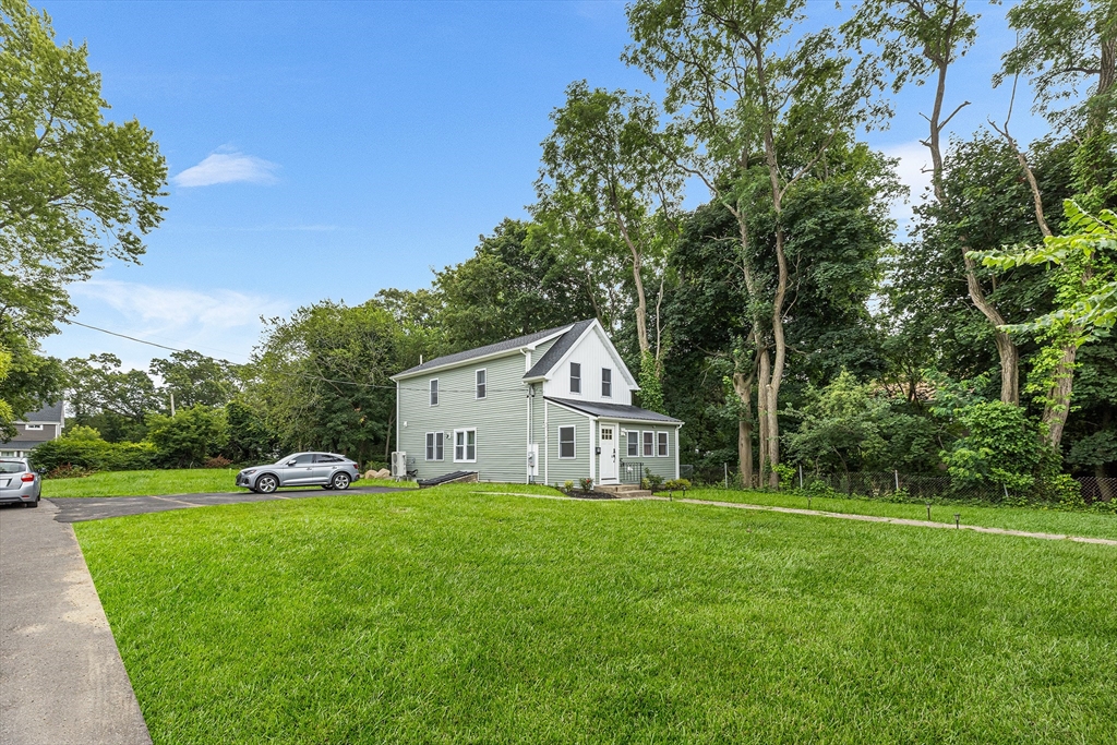 Set back from the road on a spacious 21,500 sq.ft. combined lot, this beautifully gut-renovated 3-bedroom, 2-bath Colonial offers modern comfort with room to grow. Step inside to a bright, open-concept layout featuring gleaming hardwood floors, recessed lighting, and a stunning custom kitchen with quartz countertops and stainless steel appliances. The spacious primary bedroom includes a walk-in closet and convenient Jack & Jill bath. Recent upgrades include a newer heat pump, septic system, and roof—just move in and enjoy! Relax on the back porch overlooking a large, private yard with incredible potential. With town approval and under Massachusetts' new law, you could build a second home or add an income-generating ADU. Located just minutes from major highways for easy commuting, this home offers comfort, space, and flexibility—all in one.