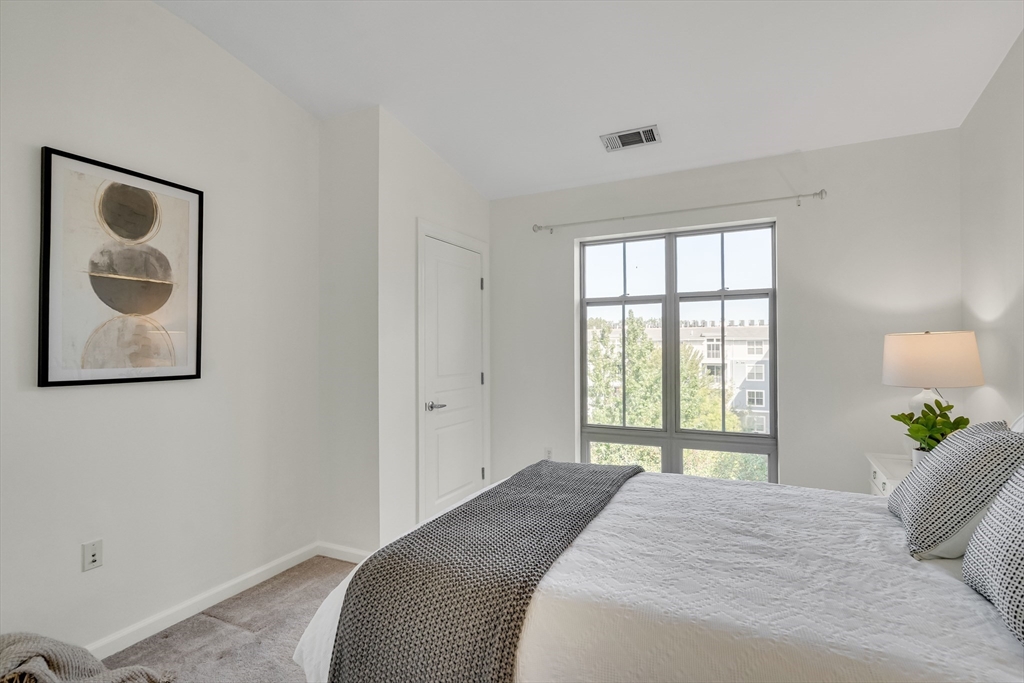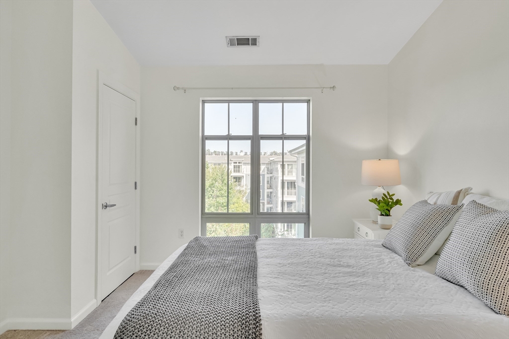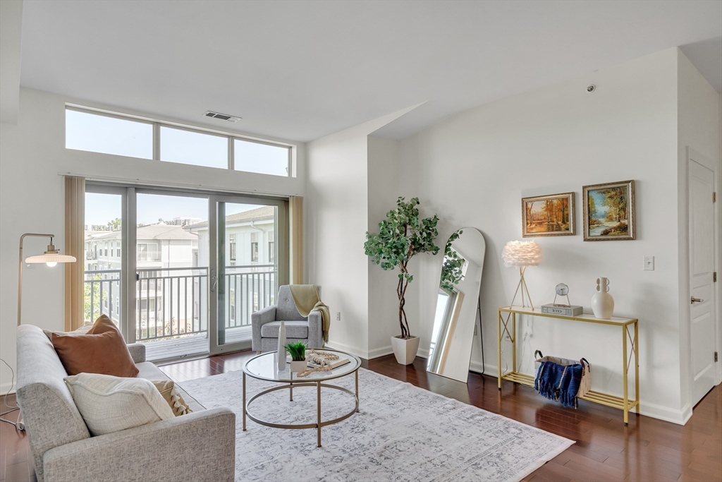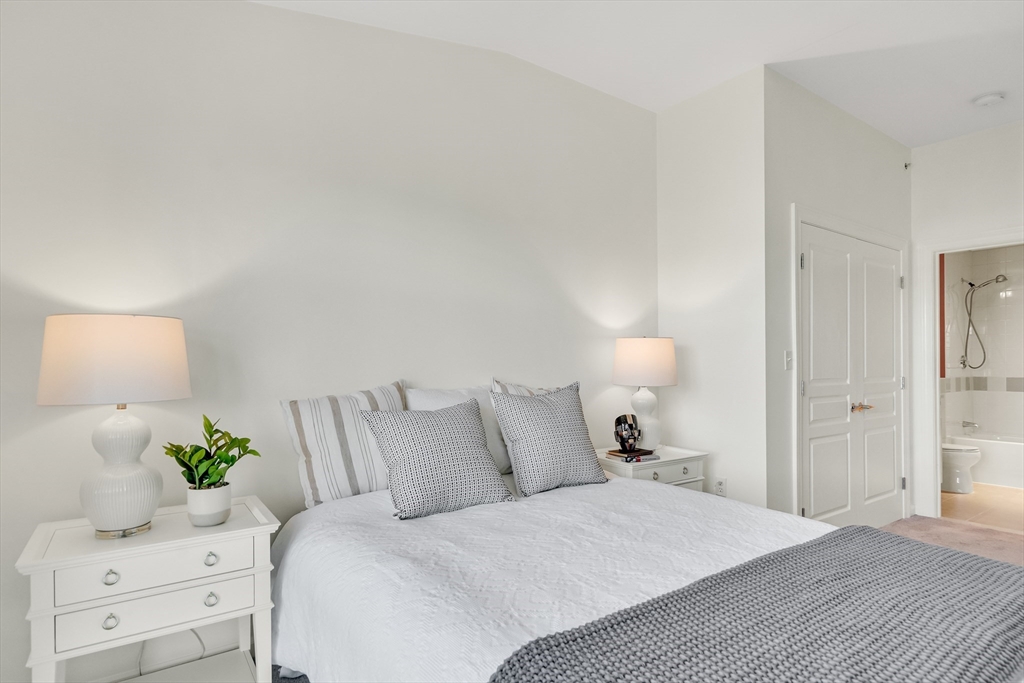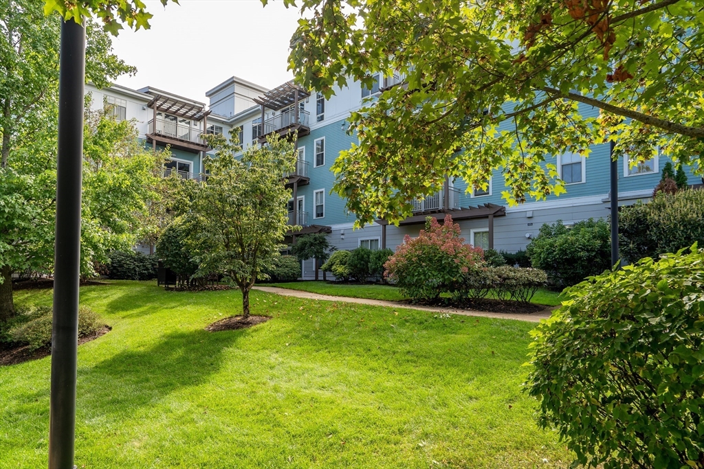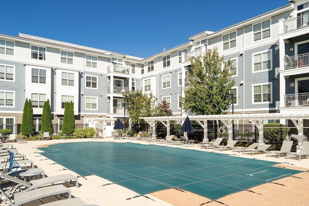 Experience penthouse living at the popular Repton Circle! Elegant 2 bedroom and 2 bathroom unit with 2 deeded garage parkings. Open-plan living room with 9.5ft ceiling height, floor-to-ceiling windows & gleaming hardwood floor. Gourmet kitchen with maple cabinetry, granite countertop & SS appliances. Stepping out to the balcony overlooking the resort style landscaped courtyard. Primary suite and second bedroom both with bright large windows, tile surround tub/shower. In-unit laundry & extra storage. Luxury amenities: pool, fitness center, BBQ, playground, pet run, bike storage, guest parking and pet friendly policy. Prime location walk to Charles River Greenway bike path all the way to Cambridge, Stop & Shop conveniently located across the street, bus to Harvard Sq. and easy drive to Boston. Enjoy Watertown's vibrant art, shopping and restaurant at Arsenal Yard and recreation center at Arsenal Park!!