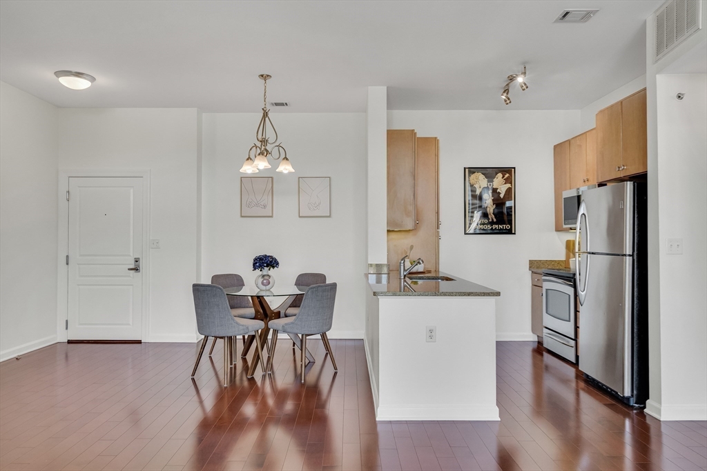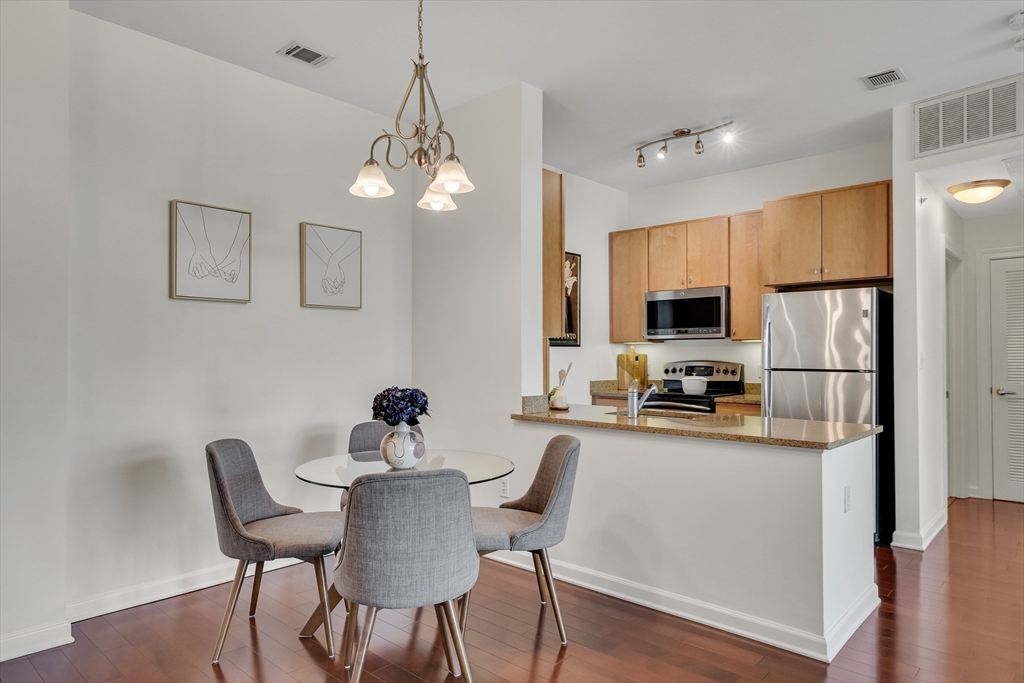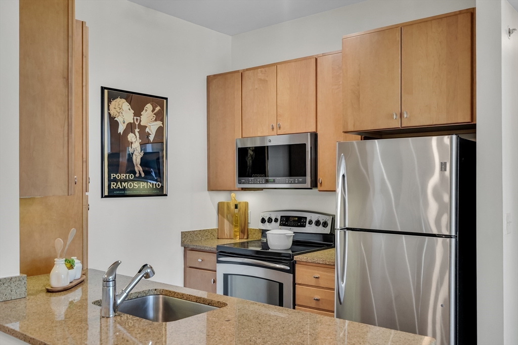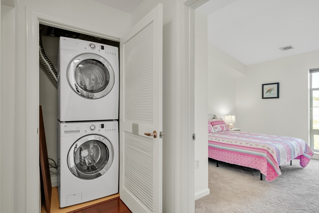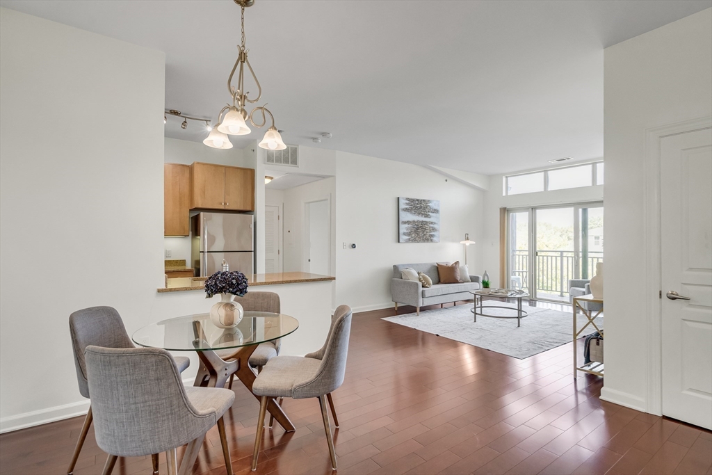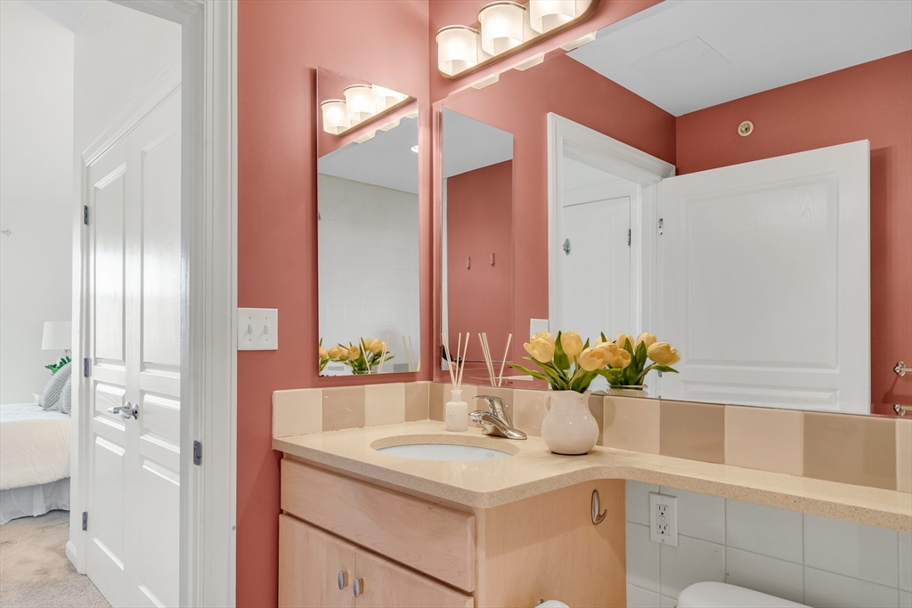 Experience penthouse living at the popular Repton Circle! Elegant 2 bedroom and 2 bathroom unit with 2 deeded garage parkings. Open-plan living room with 9.5ft ceiling height, floor-to-ceiling windows & gleaming hardwood floor. Gourmet kitchen with maple cabinetry, granite countertop & SS appliances. Stepping out to the balcony overlooking the resort style landscaped courtyard. Primary suite and second bedroom both with bright large windows, tile surround tub/shower. In-unit laundry & extra storage. Luxury amenities: pool, fitness center, BBQ, playground, pet run, bike storage, guest parking and pet friendly policy. Prime location walk to Charles River Greenway bike path all the way to Cambridge, Stop & Shop conveniently located across the street, bus to Harvard Sq. and easy drive to Boston. Enjoy Watertown's vibrant art, shopping and restaurant at Arsenal Yard and recreation center at Arsenal Park!!