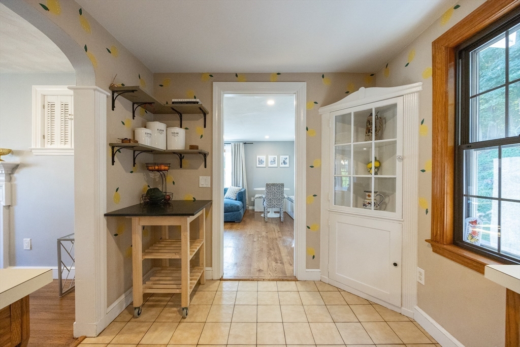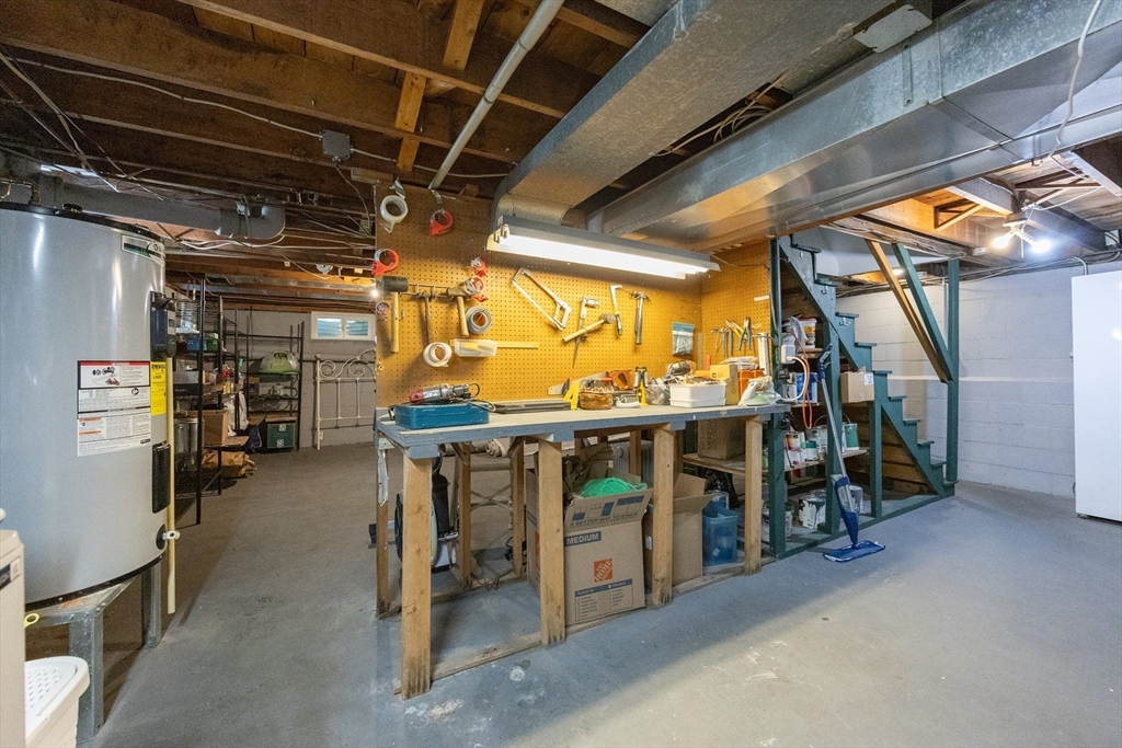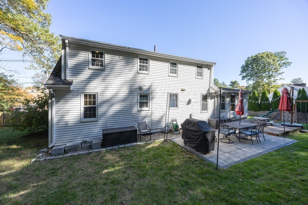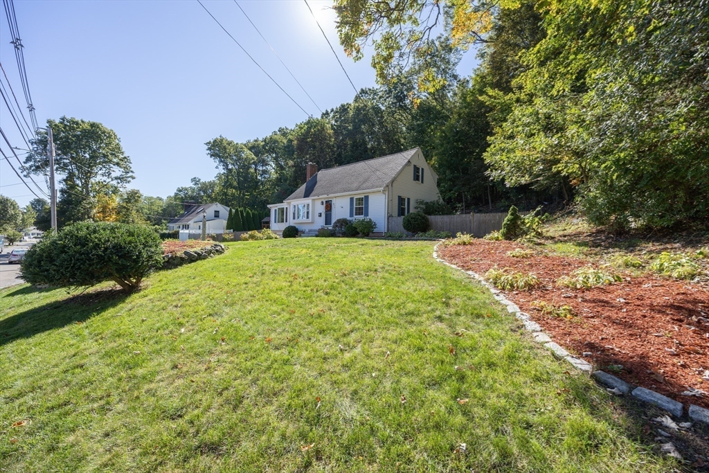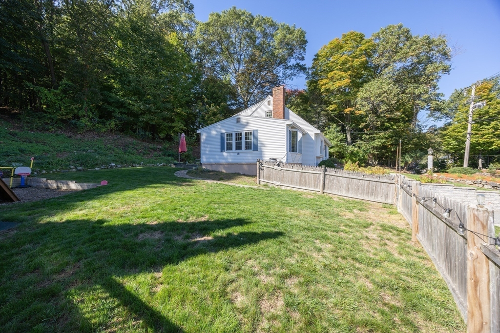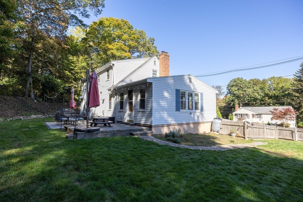 Lovely Cape in the Joshua Eaton school area. This home offers a flexible 1st floor layout. Lots of storage in the kitchen, bright dining room with fireplace, spacious living room w/bow window & access to the back yard, a main bath with tub & shower & a linen closet, a large 1st flr. bedroom is used as a guest/playroom & there is a great home office. There is a closet in the main hall. The 2nd floor offers a primary bedroom with a large closet, storage space & built-ins, a 1/2 bath, and a linen closet. Another spacious bedroom with built-ins. The basement has the potential to be finished, it has been used as an exercise space & is great for storage. It has a laundry area with a laundry sink & garage access. This lot offers wonderful privacy and entertaining space, two patios, garden space, and a grass game area. Great commuter location for all highways & the commuter rail. AHS Home Warranty is included for the buyer's peace of mind.
