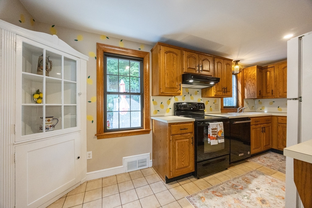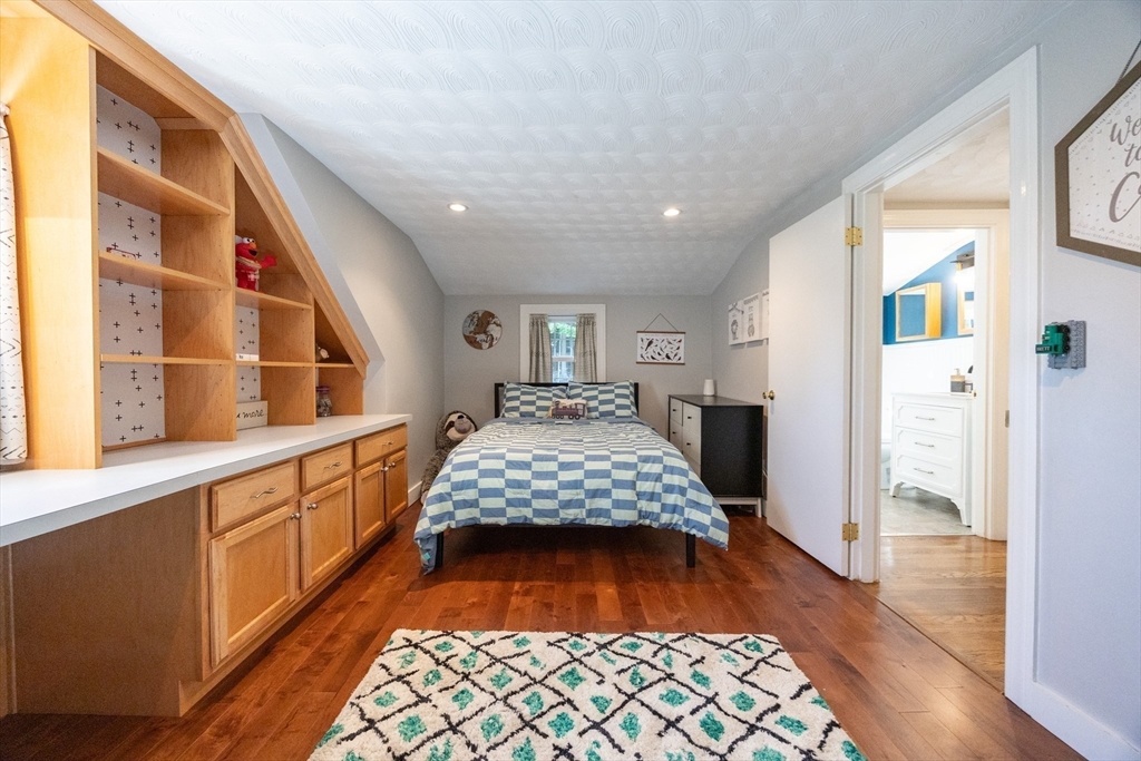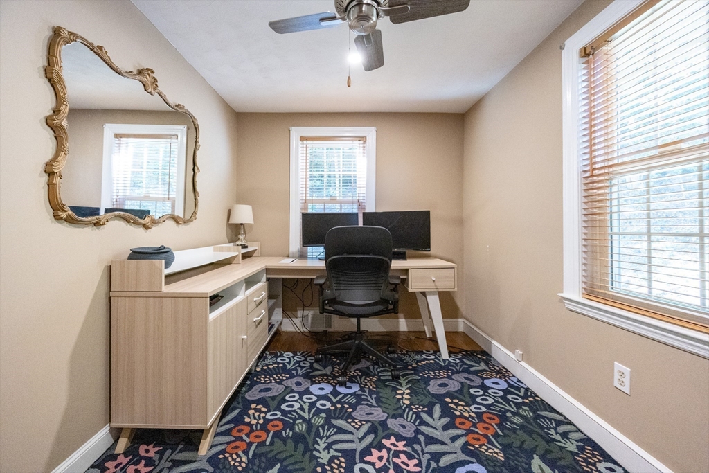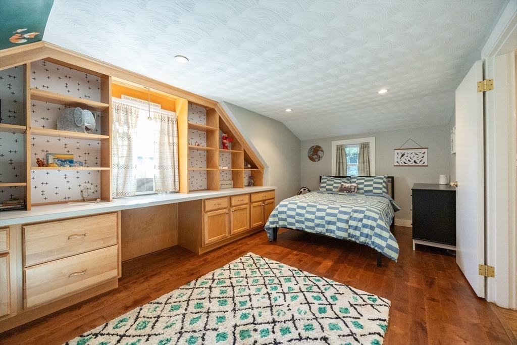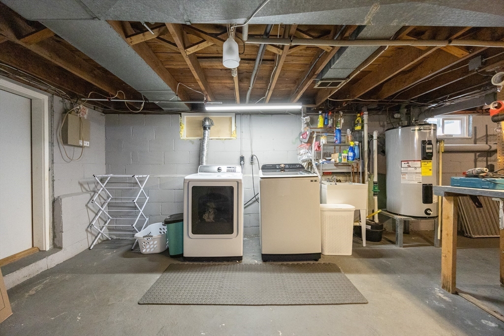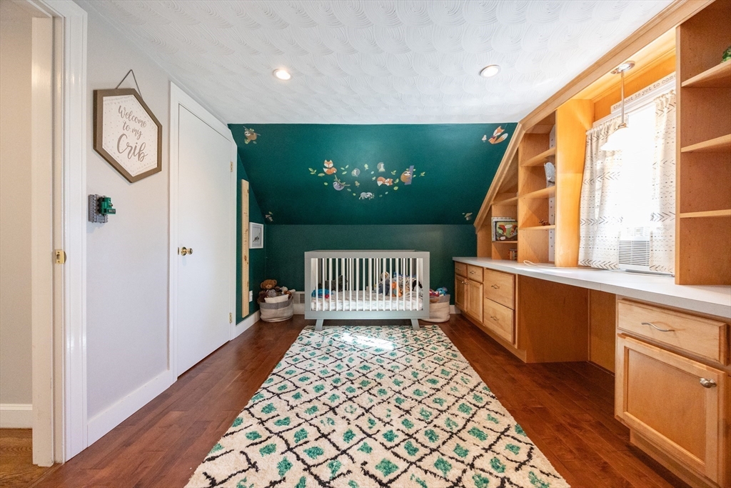 Lovely Cape in the Joshua Eaton school area. This home offers a flexible 1st floor layout. Lots of storage in the kitchen, bright dining room with fireplace, spacious living room w/bow window & access to the back yard, a main bath with tub & shower & a linen closet, a large 1st flr. bedroom is used as a guest/playroom & there is a great home office. There is a closet in the main hall. The 2nd floor offers a primary bedroom with a large closet, storage space & built-ins, a 1/2 bath, and a linen closet. Another spacious bedroom with built-ins. The basement has the potential to be finished, it has been used as an exercise space & is great for storage. It has a laundry area with a laundry sink & garage access. This lot offers wonderful privacy and entertaining space, two patios, garden space, and a grass game area. Great commuter location for all highways & the commuter rail. AHS Home Warranty is included for the buyer's peace of mind.