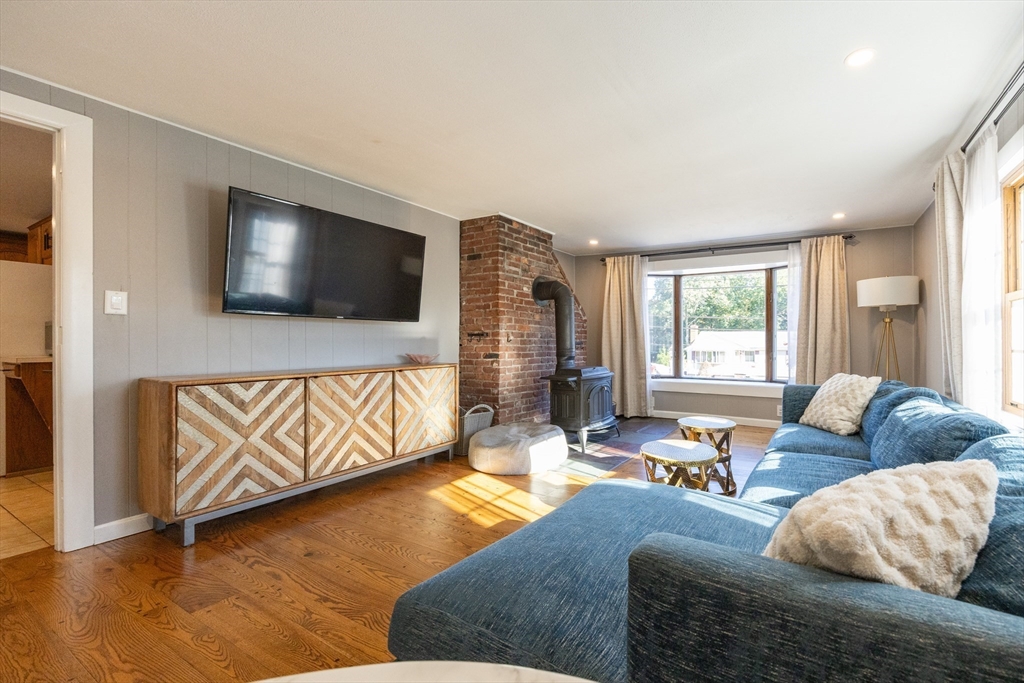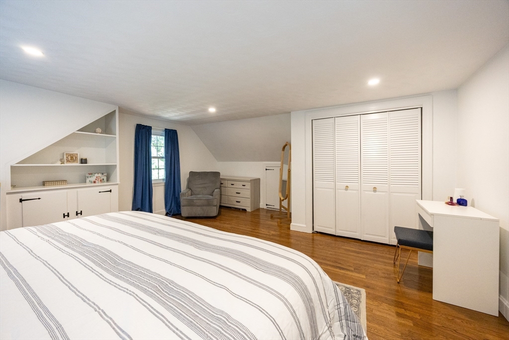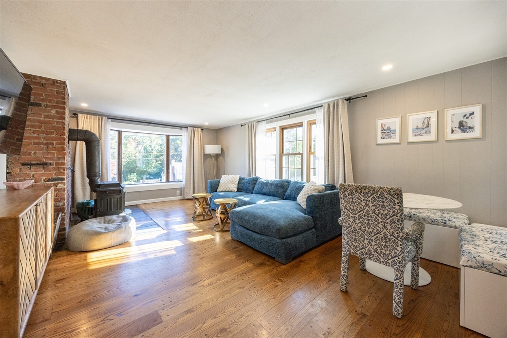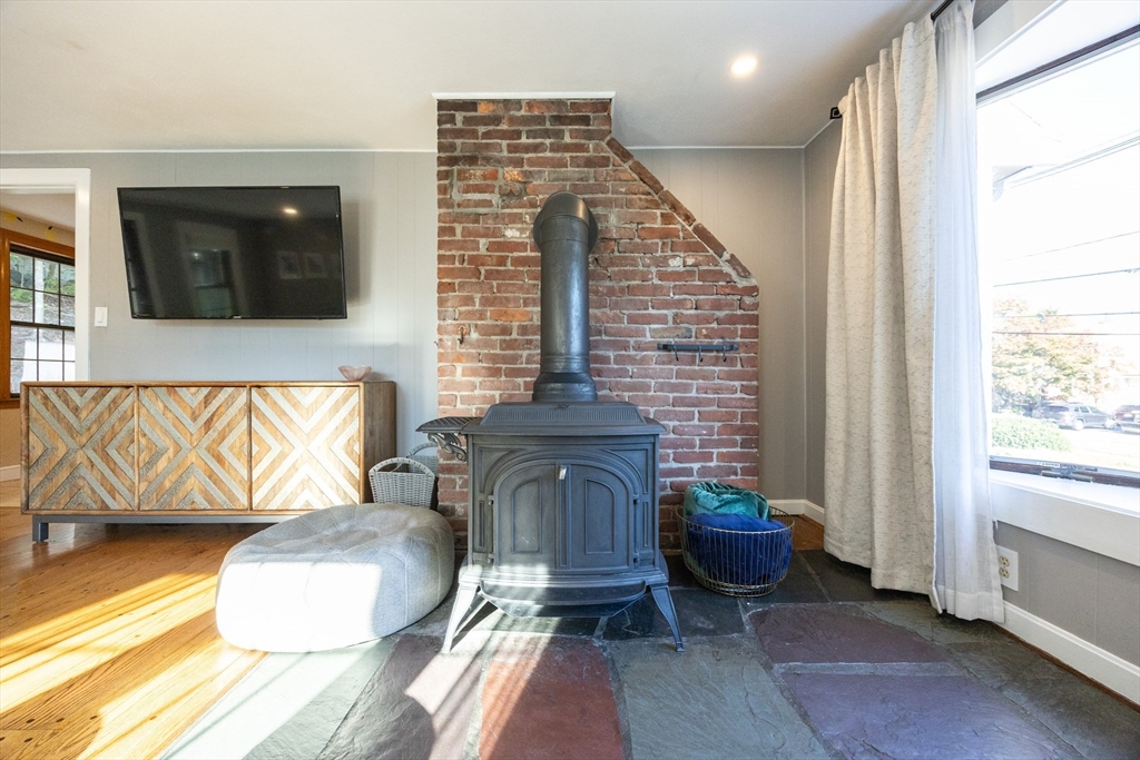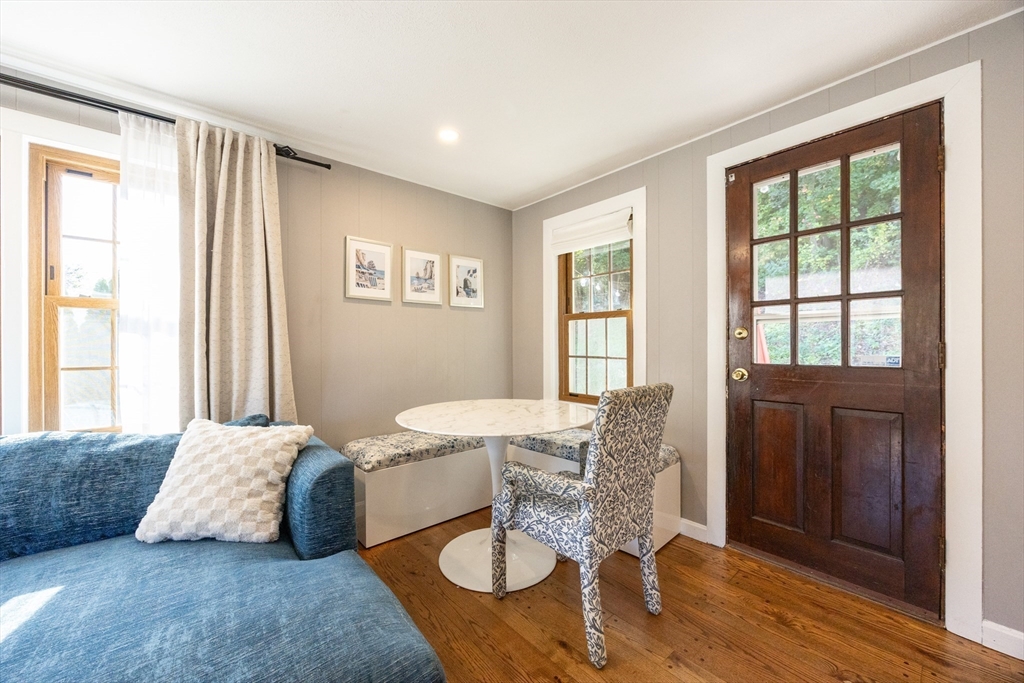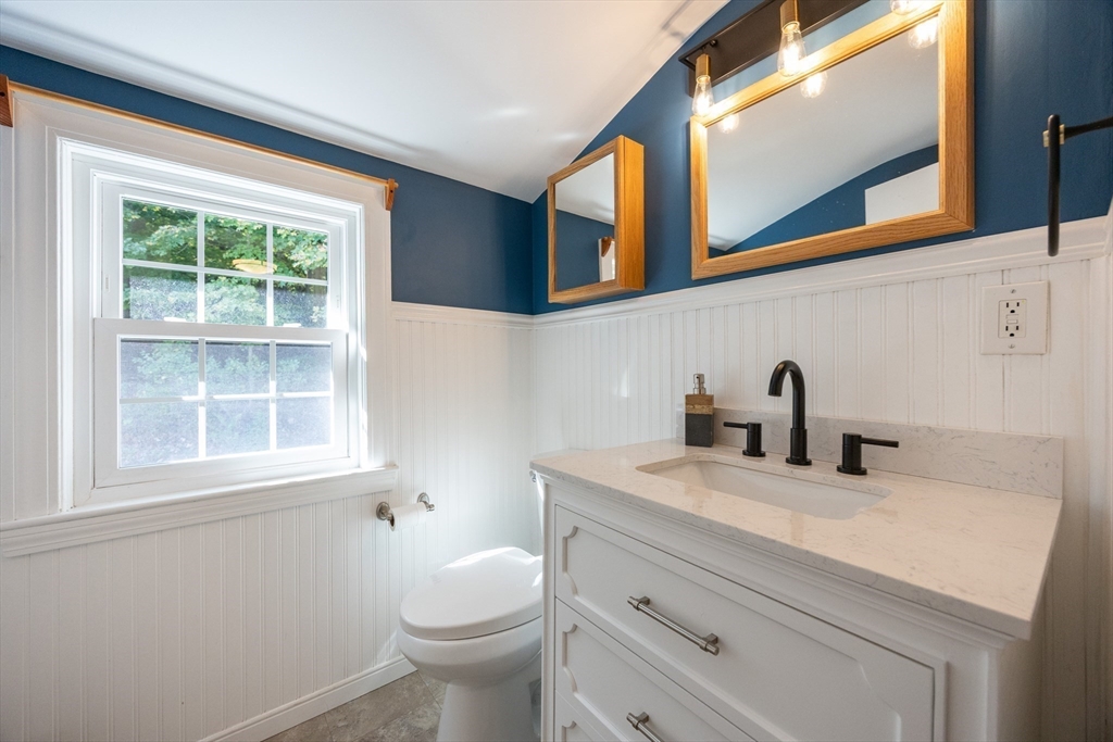 Lovely Cape in the Joshua Eaton school area. This home offers a flexible 1st floor layout. Lots of storage in the kitchen, bright dining room with fireplace, spacious living room w/bow window & access to the back yard, a main bath with tub & shower & a linen closet, a large 1st flr. bedroom is used as a guest/playroom & there is a great home office. There is a closet in the main hall. The 2nd floor offers a primary bedroom with a large closet, storage space & built-ins, a 1/2 bath, and a linen closet. Another spacious bedroom with built-ins. The basement has the potential to be finished, it has been used as an exercise space & is great for storage. It has a laundry area with a laundry sink & garage access. This lot offers wonderful privacy and entertaining space, two patios, garden space, and a grass game area. Great commuter location for all highways & the commuter rail. AHS Home Warranty is included for the buyer's peace of mind.