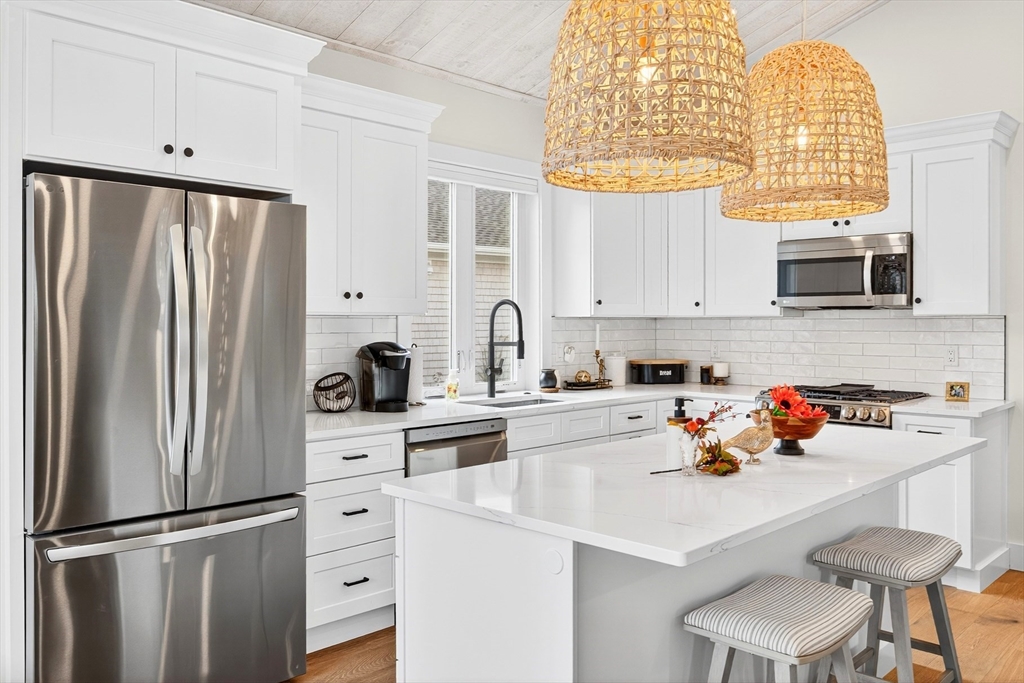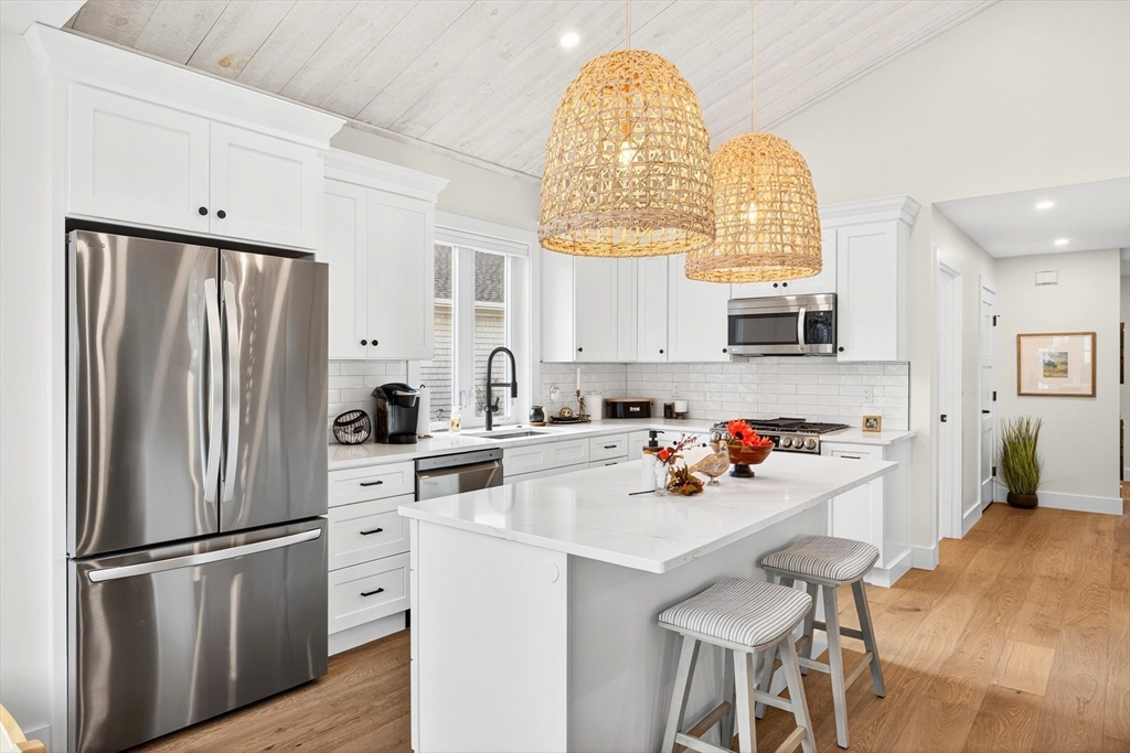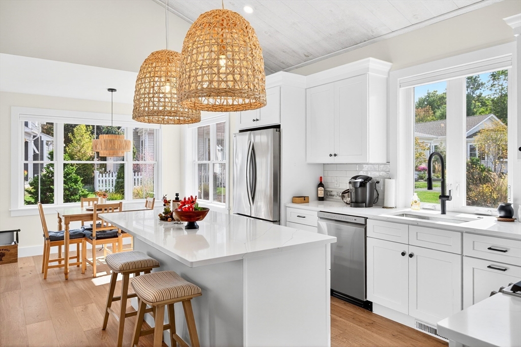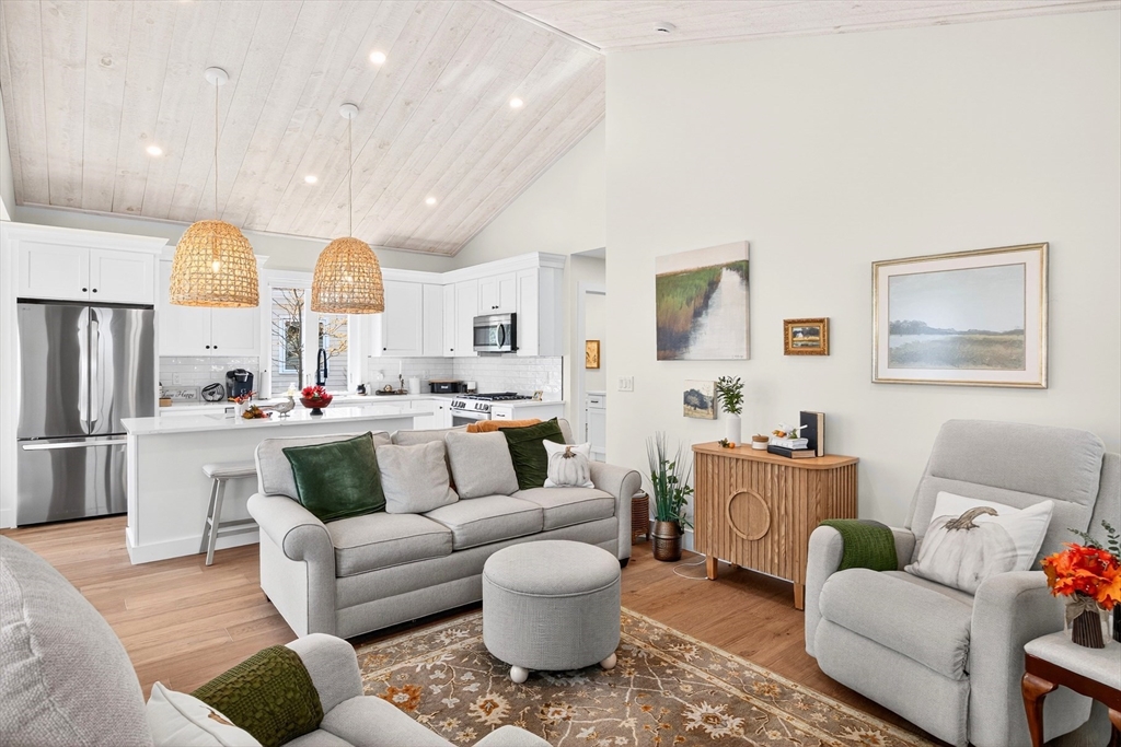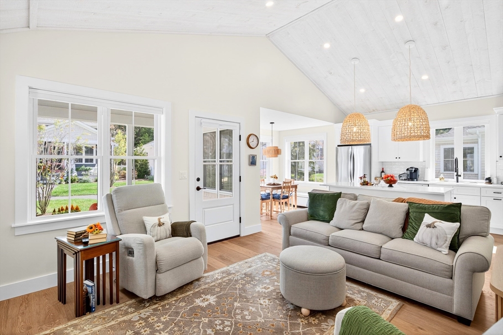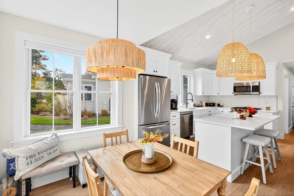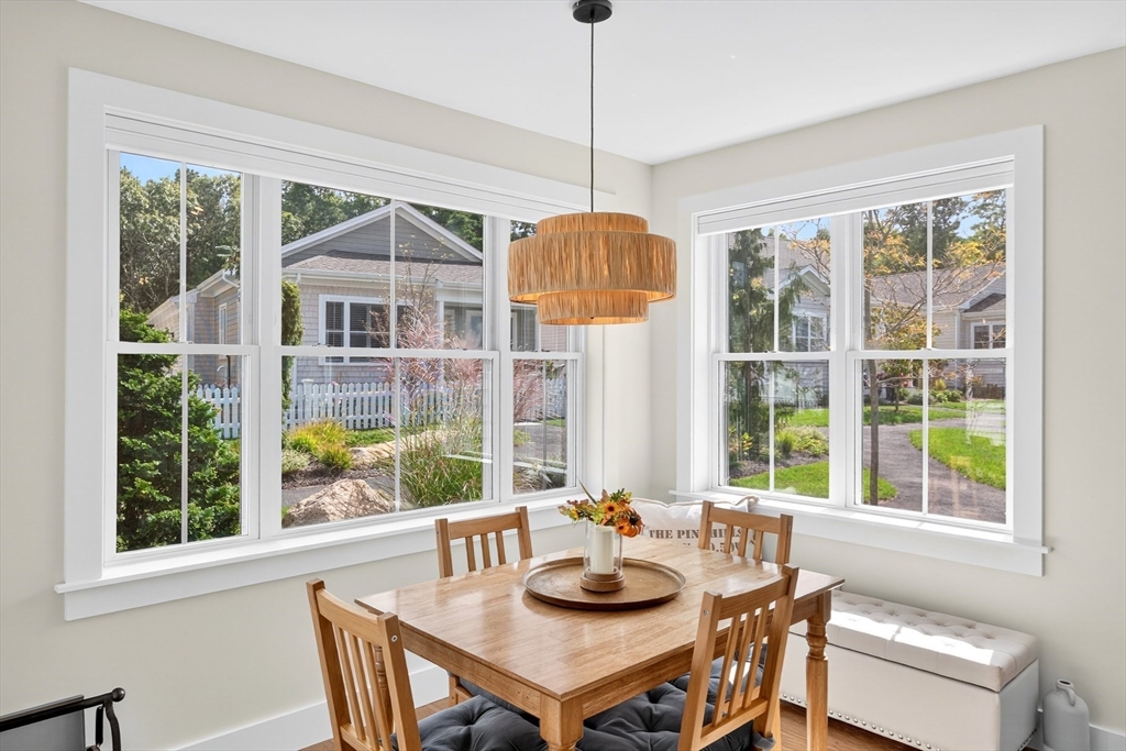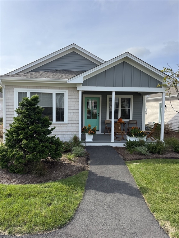 Don't miss out on this AMAZING opportunity for a better than brand new home in the popular 55+ Birdsong neighborhood in The Pinehills Village Green! This home is completely stunning with wonderful interior upgrades, and a location that is ideal with a view of the pocket park. This bungalow-style home has 2-bedrooms, 2 full baths, a cathedral whitewashed shiplap ceiling living room with a gas fireplace, a kitchen that a chef would delight in, all on one level with modern day finishes. Birdsong is an intimate neighborhood of 14 homes, designed and built by Barefoot Cottage Company, known for their interior and exterior attention to detail, including the landscape design of the lush pocket park. It is located across the street from The Market and walking trails connect you to the Village Green, with conveniences and fun including the Market, Post Office, Mirbeau Inn & Spa, banks, bookstore, beer garden, restaurants, shops, and services. The HOA includes pools/exercise facility/tennis.