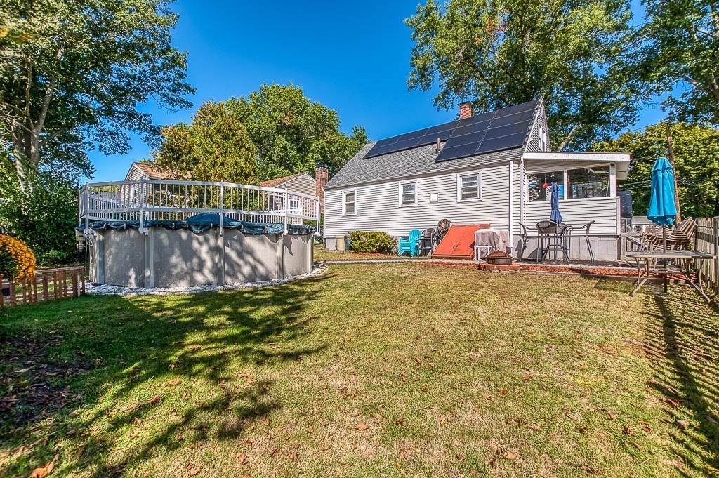 Amazing home on a tranquil, leafy dead end street. This must see 3 bedroom with 1.5 baths may appear to be just another cape-style house but has the finishes buyers seek such as white kitchen cabinets, hardwood flooring, energy-friendly solar panels (OWNED) on a young roof, vinyl siding and windows plus partially finished dry basement. Just a few of the highlights offered in this historic Readville neighborhood. Schedule a private showing for a firsthand experience of summer days on the patio of the fully fenced back yard with pool and storage shed or admire the peace while relaxing with beverage in hand on the 3 season porch. Is location important? Under 5 minutes to 2 commuter rail lines plus easy access to bus connection for subway. Close to major routes as well as recreation at Blue Hills Reservations and your choice of Legacy Place in Dedham or University Station in Westwood. Drop by the first open house on Saturday, 10/4 between 12 and 1:30 or Sunday 10/5 from 11:30 to 1:00
