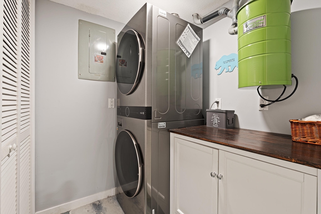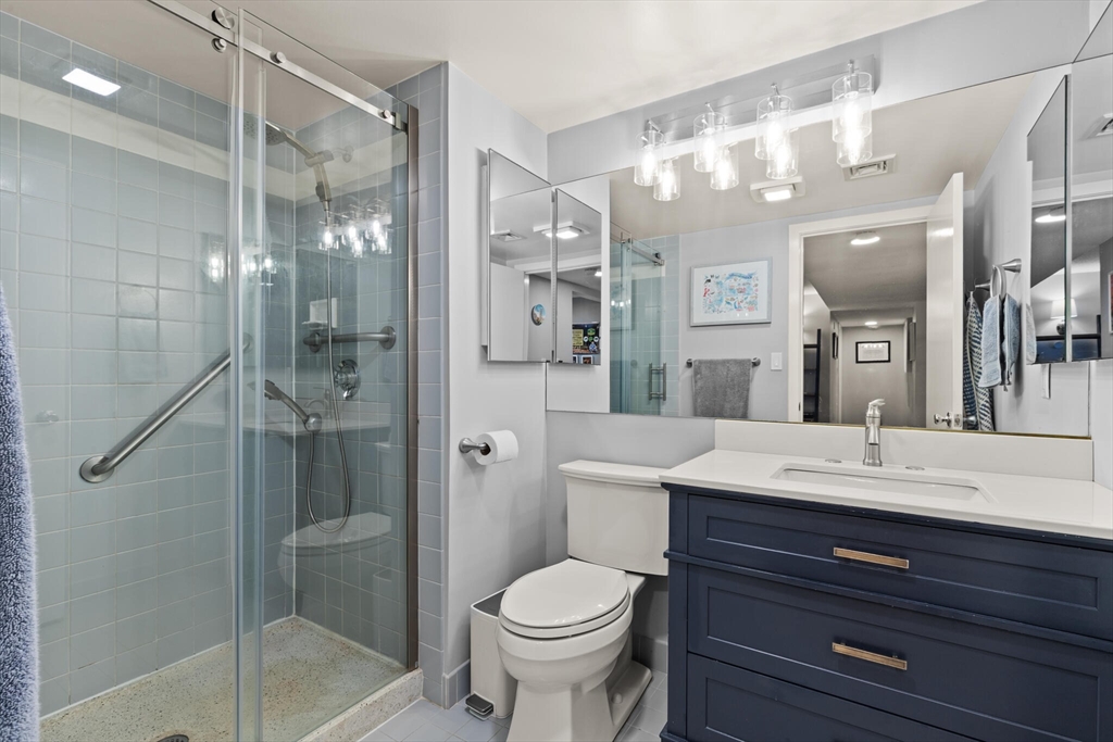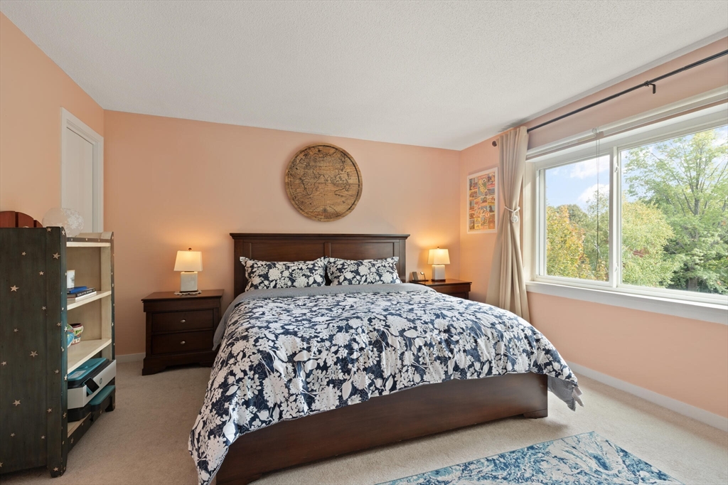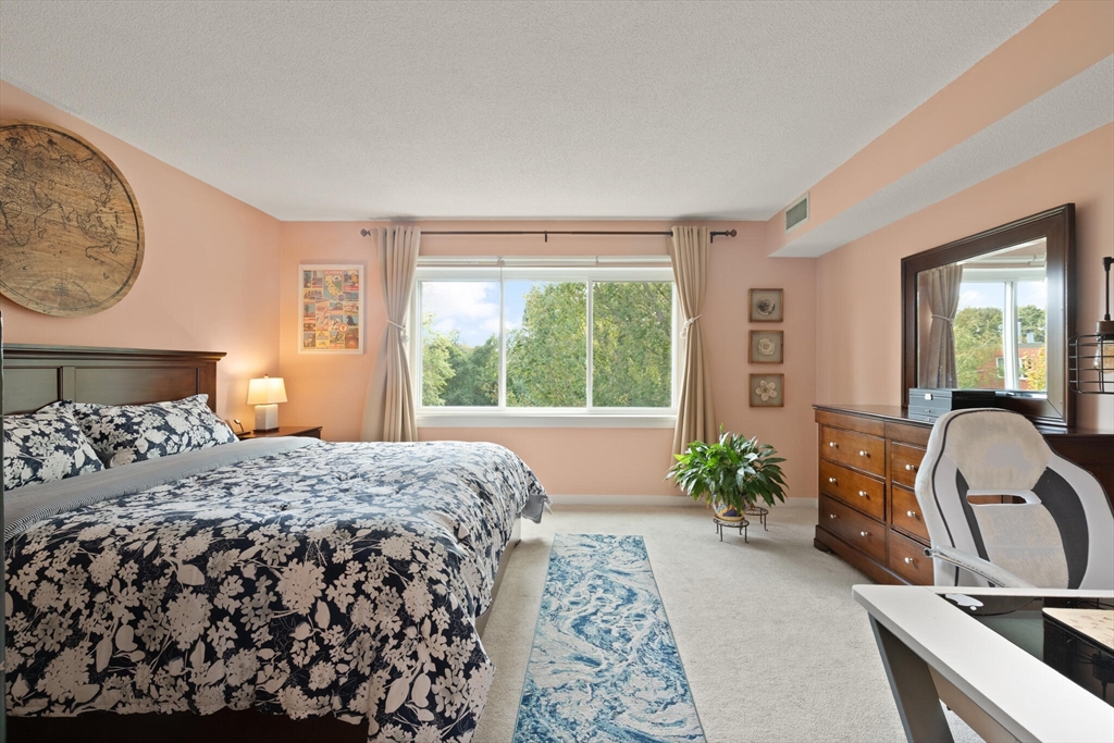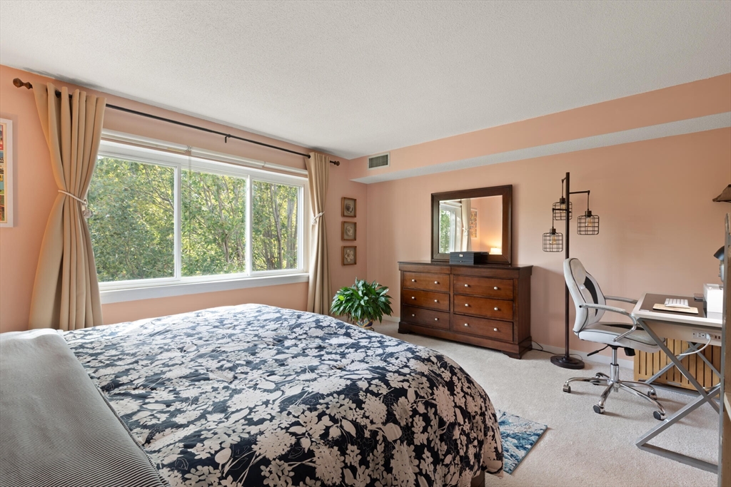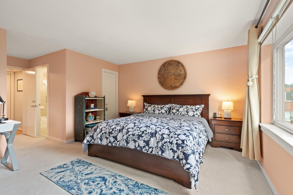 Remodeled 2-bedroom, 2 bath unit located at Place Lane Condominiums. Features: Kitchen with New Avance soft close cabinets, quartz countertops, tiled backsplash, recessed lighting, skylight, s.s. appliances, - convection stove. Large Dining room, living room is very spacious w. a fireplace and a slider to the 11 x 4 balcony. Master bedroom suite is carpeted, and has a full bath with new vanity, countertop, toilet, glass tub enclosure, also a walk-in closet plus a 2nd closet. 2nd bedroom has carpet and a double closet. Laundry area has a stackable washer/dryer. Updated Gas heating system and hot water tank. Central air and Central vac. New windows thought the unit. Enjoy all the Place Lane has to offer. large clubroom, inground pool, tennis court and extra storage. Conveniently located near Rt 128/93., bus and train. Stop by the Open Houses Friday 4:30-6pm, Saturday 12-2 pm, and Sunday 1-3pm