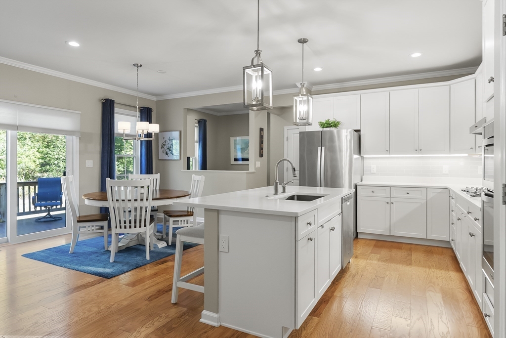 Welcome to 198 Stonehaven Drive — a 4 bedroom, 3.5 bath home that embodies warmth, style and sophistication. Experience the best of both worlds with a formal living room for timeless gatherings, a dedicated office nook, and open-concept spaces for effortless entertaining. Thoughtful upgrades shine in every detail: quartz counters, crown molding, walk-in closets, and a finished lower level designed to suit any lifestyle. Start your mornings with coffee on the welcoming front porch and end your evenings on the back deck, where a serene wooded backdrop creates a peaceful retreat. Nestled along the distinguished edge of the neighborhood, this home is elevated, inviting, and ideally placed near shopping, dining, and just a mile from the South Weymouth MBTA. At Union Point, you’ll find the perfect blend of home and community, designed for seamless living and easy access to all the South Shore offers.