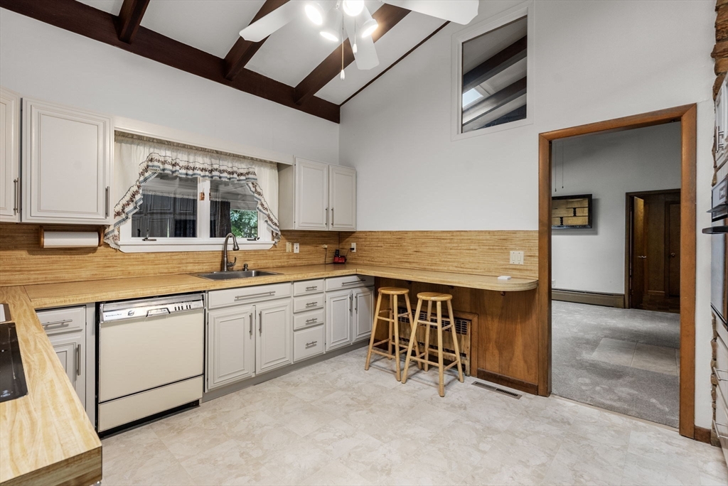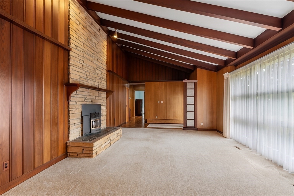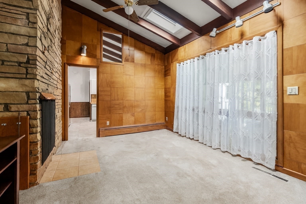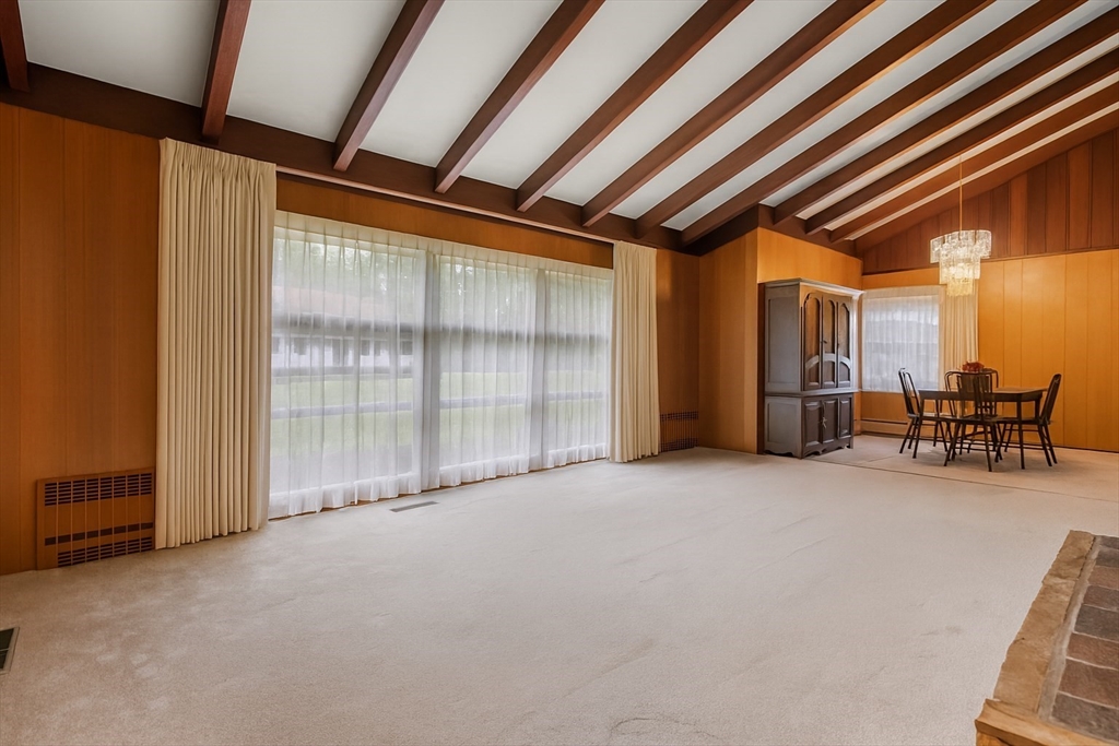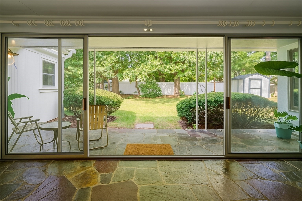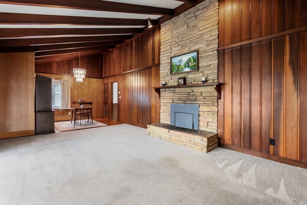 Tucked away on a quiet cul-de-sac, this approx. 3,250 sq ft Westfield ranch offers 4 bedrooms and 3 full baths in a flexible floor plan. The heart of the home is a stunning family room and enclosed patio with an expansive moving glass wall system which fills the area with natural light and lush views—blending indoor and outdoor living for year-round entertaining or relaxation. Vaulted ceilings with exposed beams, hardwood floors, and stone fireplaces add warmth and character. The kitchen features ample storage, stainless and classic appliances, and flows to a bright Great room. Spacious bedrooms boast oversized closets, built-ins, and sparkling baths. A finished lower level provides a large recreation room and generous storage. Outside, enjoy a private yard with patio and amazing in-ground pool for resort-style fun. Two-car garage, central air, and storage shed complete this home combining New England charm with distinctive architectural flair. Open House Saturday 10/4/25 from 12-2!