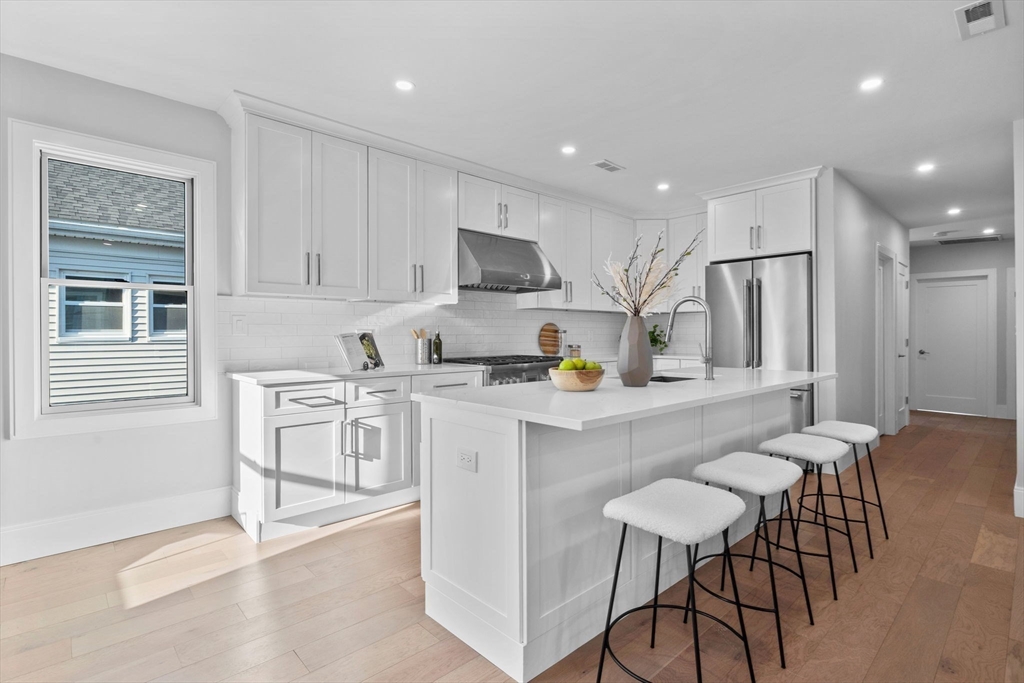 Discover modern luxury in this gut-renovated penthouse duplex near Tufts and the Ball Square Green Line. Perfect for entertaining, the open-concept layout features a chef’s kitchen with Thermador appliances (including 36" range/hood), quartz countertops and a spacious living room with a sleek linear gas fireplace. The master suite is a serene retreat with a spa-like en-suite bathroom, walk-in closet and a private walk-out balcony. Additional highlights include a lounge area, unfinished bonus room and a dedicated laundry room. Enjoy private front and rear entrances, non-tandem off-street parking and a durable exterior with Hardie Plank siding and Pella aluminum-clad windows. LED recessed lighting, a new roof, electrical, plumbing (including Rinnai instant-hot water heater) and two-zone American Standard HVAC system complete this exceptional home. This penthouse offers unmatched comfort and style - schedule your showing today!