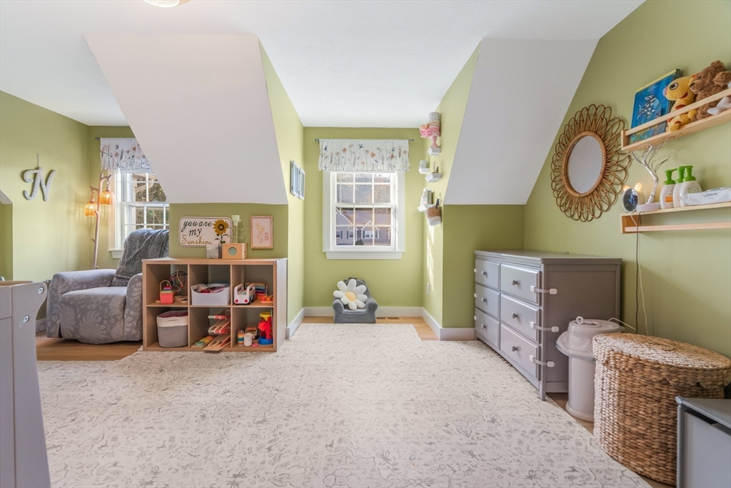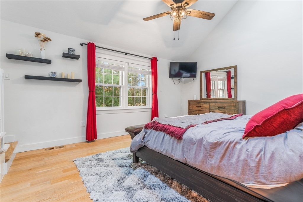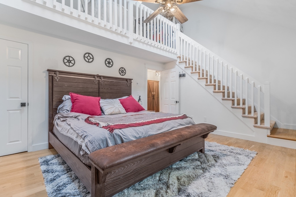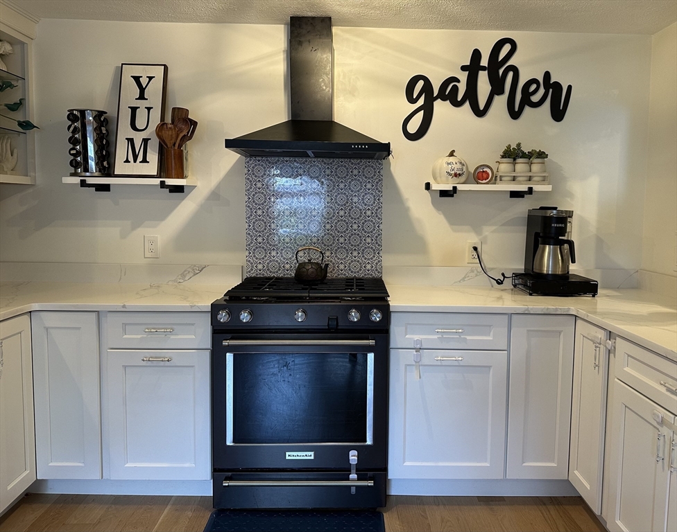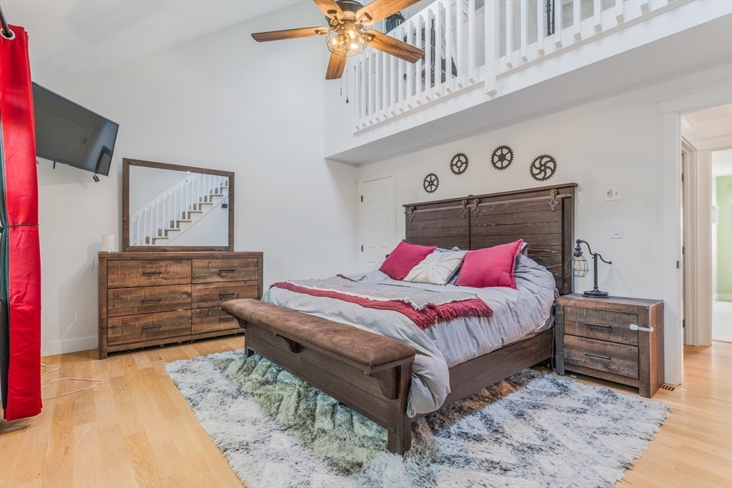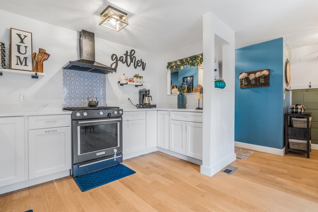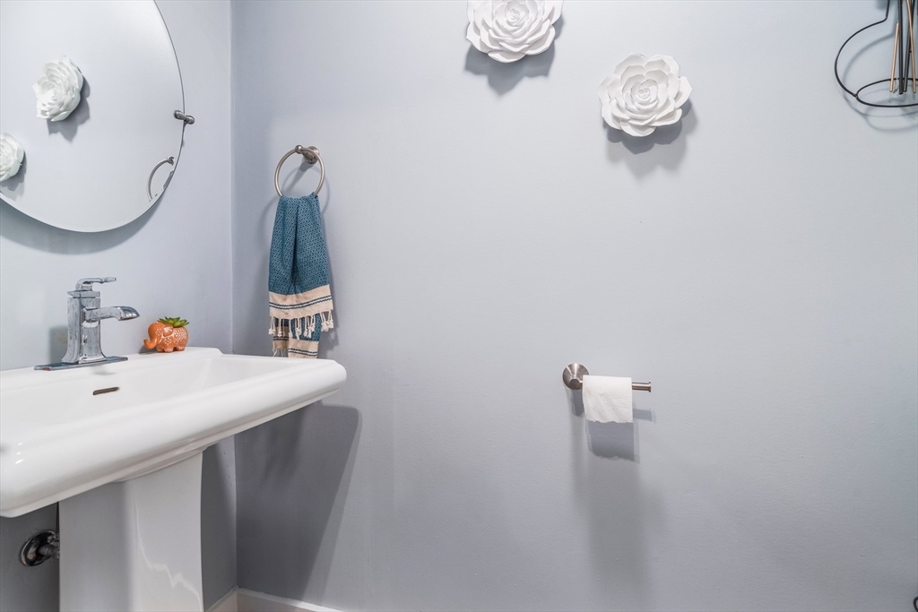 Desirable Abbot's Pond Condominium with Classic New England Charm! Welcoming entrance to a beautifully updated eat-in kitchen with quartz counters, white cabinetry with custom paneled refrigerator and dishwasher and a black gas range and hood. Natural white oak hardwood flooring throughout. Half bathroom and large living room area with recessed lights and endless possibilities for arranging. French doors leading to a rear deck. Second floor consists of a newly tiled full bath and two bedrooms. The master with a walk in closet and skylights as well as a fantastic loft with a closet and eave storage. This additional space is perfect for a home office, study, exercise area. Full large basement, ready to be finished for yet additional space with bulkhead to rear yard. Great location; off the beaten path with easy access to 93, the charming downtown area, commuter rail and scenic recreational trails (AVIS). Close proximity to Phillips Academy, Merrimack College and Indian Ridge Country Club