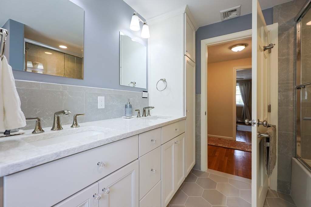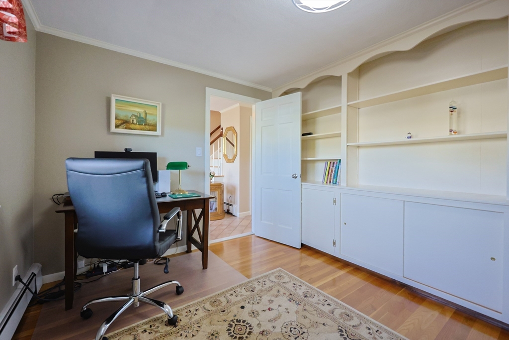 Pristine Move-In Home in the Colonial Park area. This home has been lovingly cared for & upgraded. The 1st floor offers an inviting entry foyer, light-filled living room, formal dining room, large updated kitchen with eating area, spacious family room w/fireplace, private office space with built-ins, laundry room, & lovely deck overlooking the private back yard that backs to conservation land. The upper level has a large primary suite, beautiful primary bath, walk-in closet & built-ins. The 3 spacious bedrooms have double closets. The main 2nd flr upgraded bath has a quartz top vanity, & tiled tub/shower. The lower level offers a wetbar with lots of cabinets, a bar fridge that serves as a flex space for a great/media room, exercise area & storage spaces. LL opens to the patio & private yard. The home has new windows, doors, & gleaming hardwood floors. Location is perfect for walks, hikes, playgrounds, schools, commuter rail & major commuter routes. Too many great features to list here.