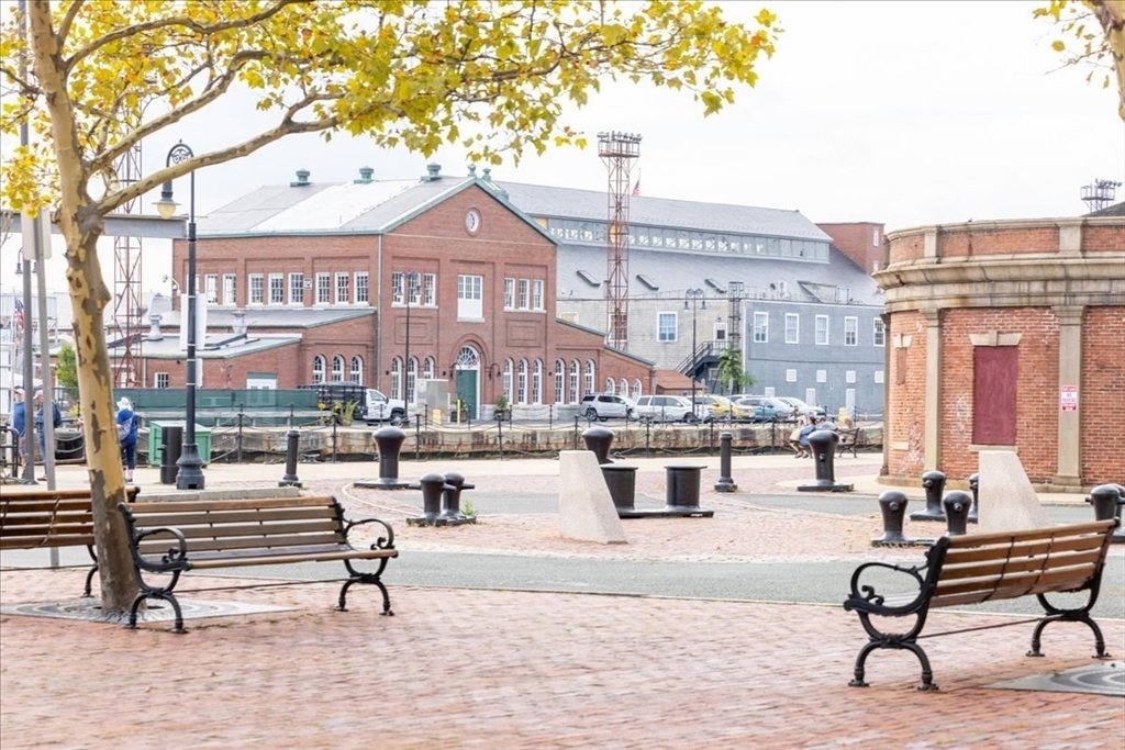 Welcome to Parris Landing, where you will love this home the moment you walk in the door. The incredible light, open layout, stunning windows with treetop and water views, it just feels comfortable and warm. The well designed, spacious floor plan offers a wonderful living space, generous sized bedroom and outstanding closets throughout. The brand new bathroom is beautiful and the unit has been freshly painted and new high quality carpet installed. This converted wharf building is in the heart of the Charlestown Navy Yard and is an exceptionally well maintained property offering the best amenities, including garage parking, heated pool, patio w/year round barbecue grills, 24 hour concierge, fitness center, community lounge, business center and meeting rooms all immersed in this historical location with easy access to the T, Water Shuttle to the Financial District, Partners Bus Shuttle, restaurants, shops and so much more! Enjoy all that both the Navy Yard and charming Charlestown offer!