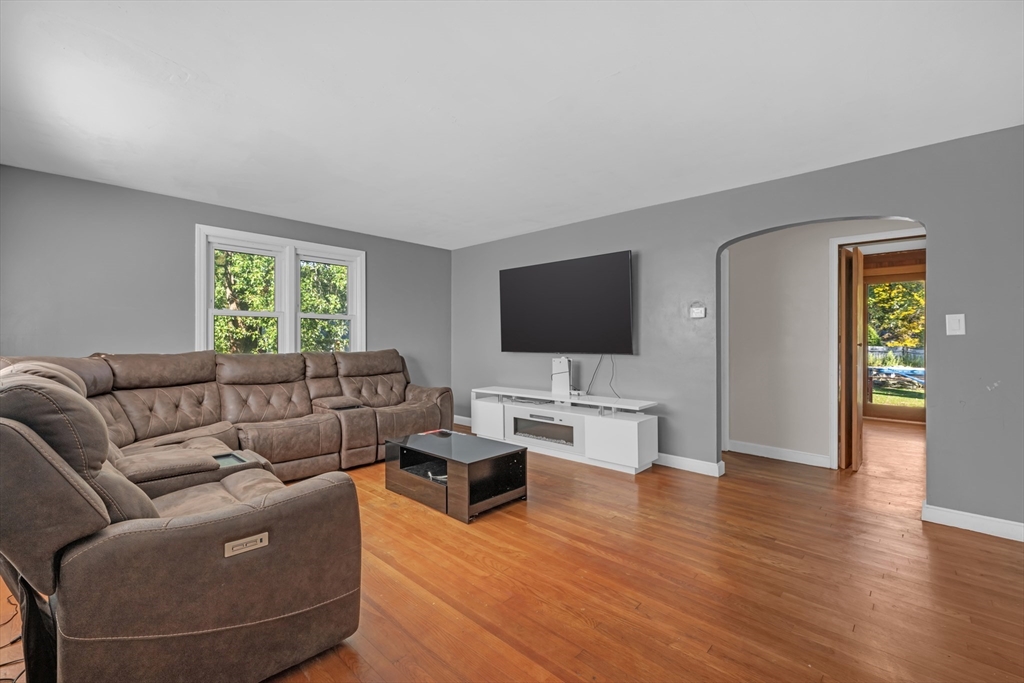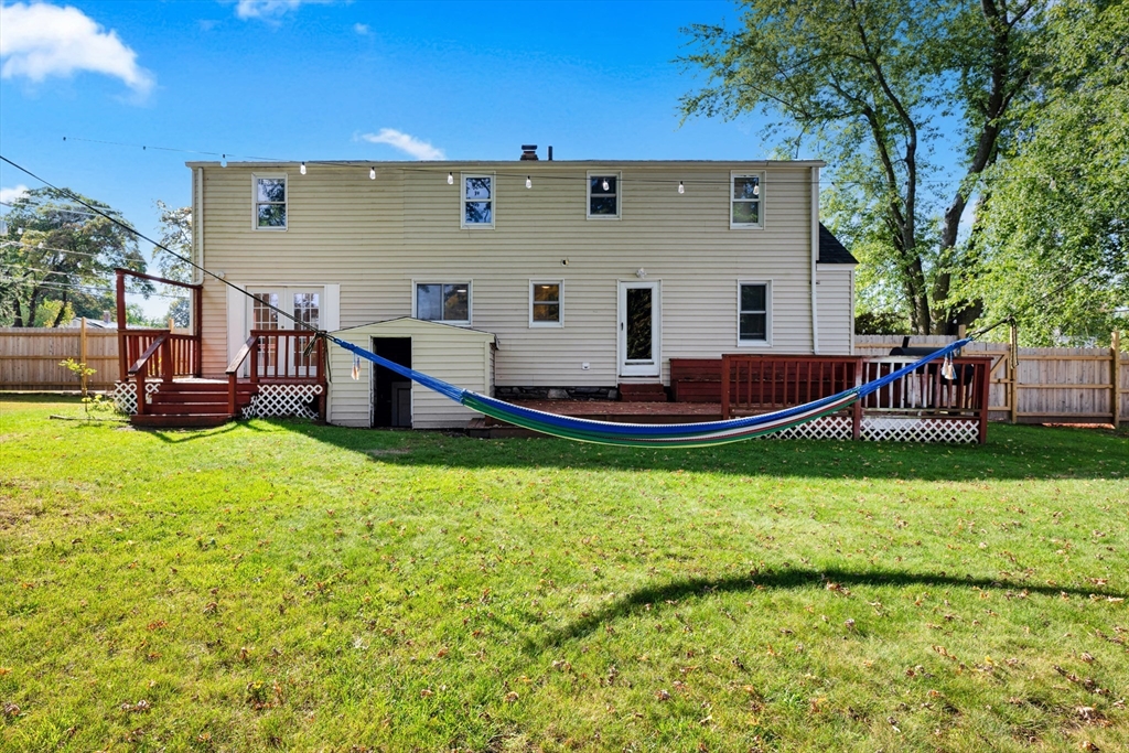 Welcome to this expansive Cape-style home, offering plenty of space inside and out! With 4 bedrooms plus a possible 5th, this property provides the flexibility today’s lifestyle demands, perfect for growing families, guests, or a home office. The main level features a front-to-back family room with French doors leading to your outdoor escape, a bright kitchen that opens to a step-down dining room with a picture window and built-ins, plus a flexible first-floor bedroom option and living room.Upstairs, you’ll find three generously sized bedrooms, a full bath, and an additional office or potential 5th bedroom.Step outside to enjoy a large backyard designed for entertaining, complete with two decks, an inground pool, and a storage shed. Whether it’s summer gatherings or quiet relaxation, this outdoor space delivers it all. Conveniently located with easy highway access and close to local colleges, shops, and amenities, this home offers both size and lifestyle. New roof (2022).