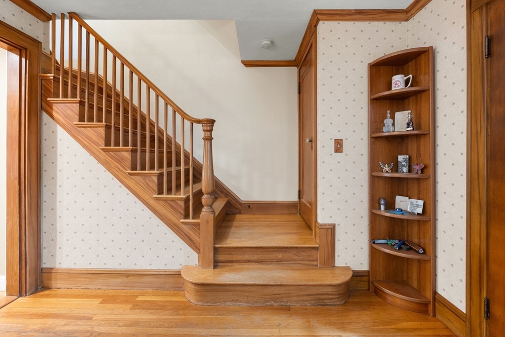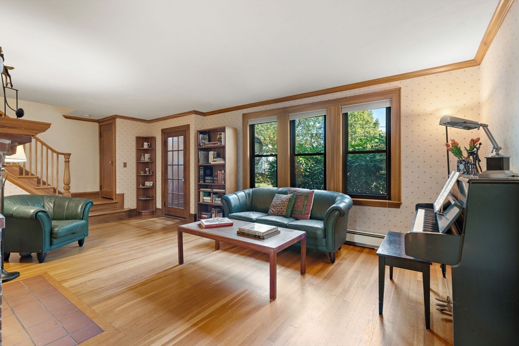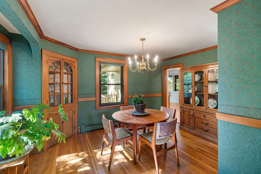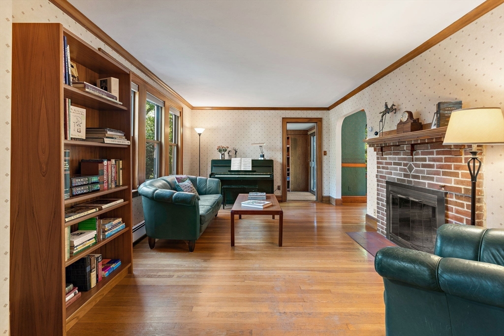 Spacious 5-bedroom, 1.5-bath home filled with early 1900s character and timeless details. Hardwood floors run throughout, complemented by gorgeous woodwork, archways, and a fireplaced living room. Enjoy the screened porch for private summer relaxation. Gorgeous lot in an amazing location—just moments to downtown, the commuter rail, all three schools, and local conveniences. Gas heat and potential to expand in the basement add modern comfort and future opportunity. With its charm, space, and setting, this home is a rare find.