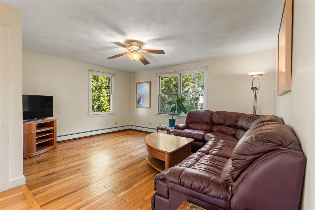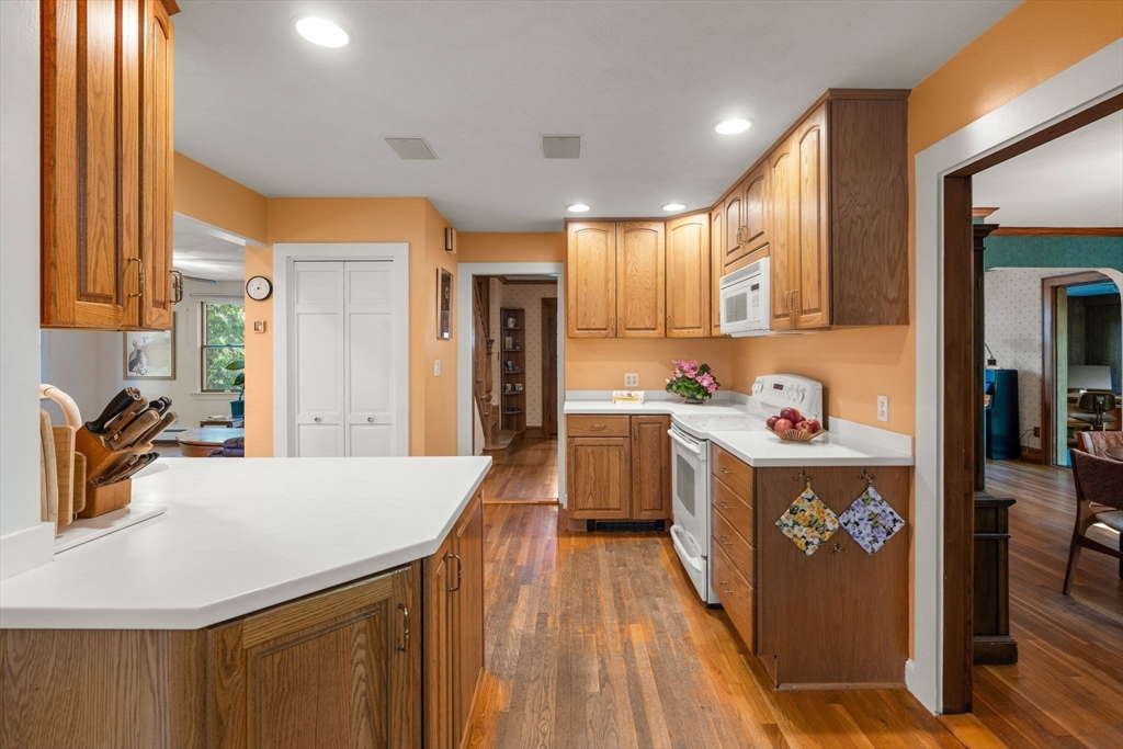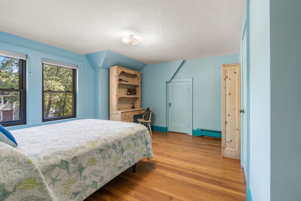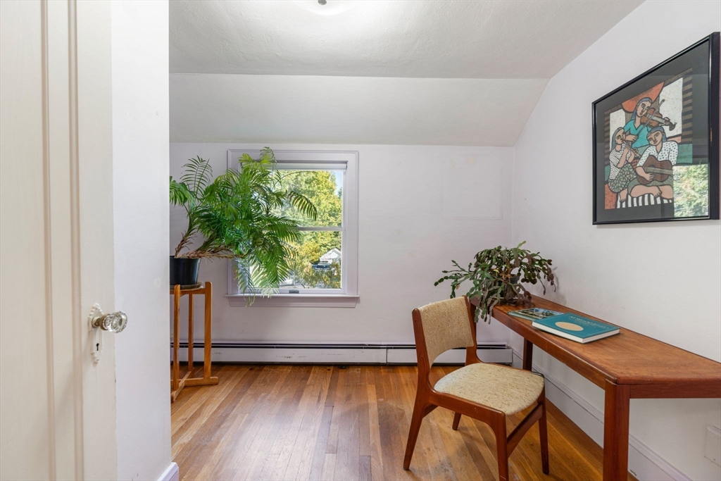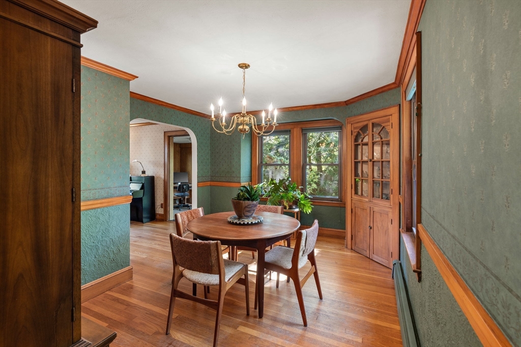 Spacious 5-bedroom, 1.5-bath home filled with early 1900s character and timeless details. Hardwood floors run throughout, complemented by gorgeous woodwork, archways, and a fireplaced living room. Enjoy the screened porch for private summer relaxation. Gorgeous lot in an amazing location—just moments to downtown, the commuter rail, all three schools, and local conveniences. Gas heat and potential to expand in the basement add modern comfort and future opportunity. With its charm, space, and setting, this home is a rare find.