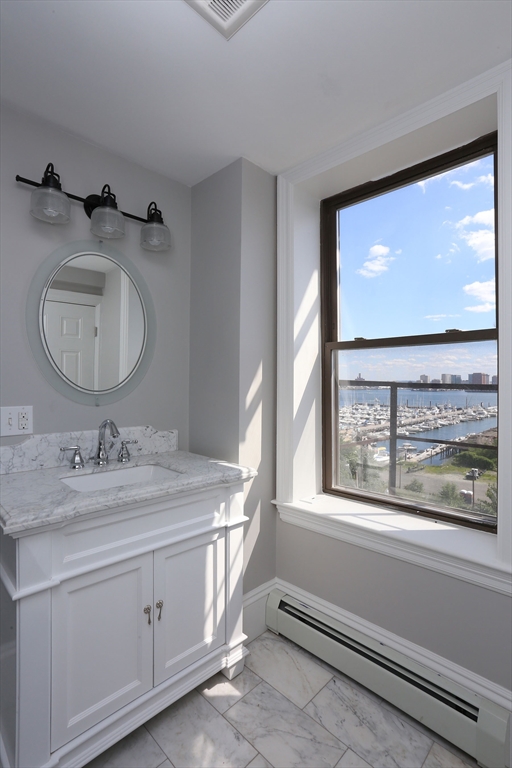 Incredible and best views of Boston and Boston Harbor! Don't miss this opportunity. Quiet 1 Bed PLUS office. Stainless steel appliances. Gas stove. Frig. Microwave. Garbage disposal. Sink. Granite counters. Marble Bathroom. Gorgeous wide pine floors. IN UNIT Washer/Dryer. Easy on street parking, 10 min walking distance to MBTA blue line Maverick.