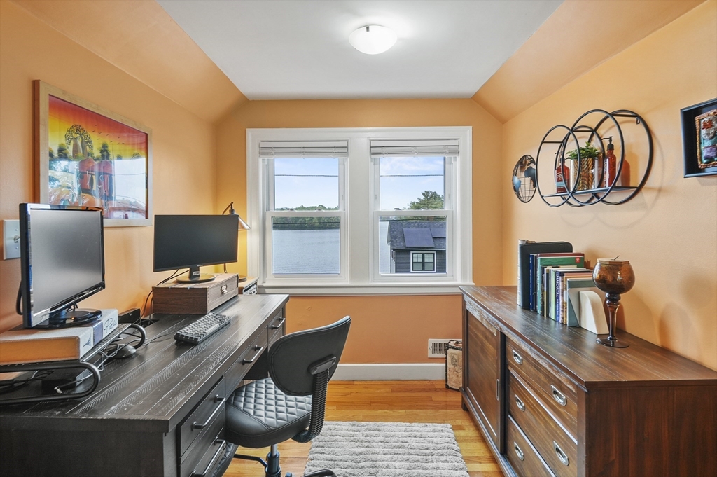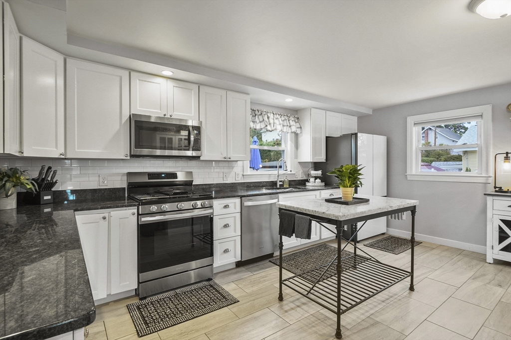 Welcome to this charming 3 bedroom, 2.5 bathroom home in Worcester! Enter inside through the three-season porch and you'll find beautiful hardwood floors flowing throughout. The first floor offers a comfortable family room with a large picture window, a living/dining area with a cozy fireplace, and a kitchen featuring granite countertops, stainless steel appliances, and gas cooking. A versatile den and a half bathroom with convenient first-floor laundry complete this level. Upstairs, a true retreat awaits in the primary bedroom, which boasts a private full bathroom and a walk-in closet. Two additional spacious bedrooms with ample closets and another full bathroom off the hall provide plenty of room. Enjoy the comfort of central AC and the detached two-car garage. The backyard is fully fenced and features a wood deck, perfect for outdoor gatherings. With its great location just a stone's throw from Lake Quinsigamond, this home is an absolute gem!