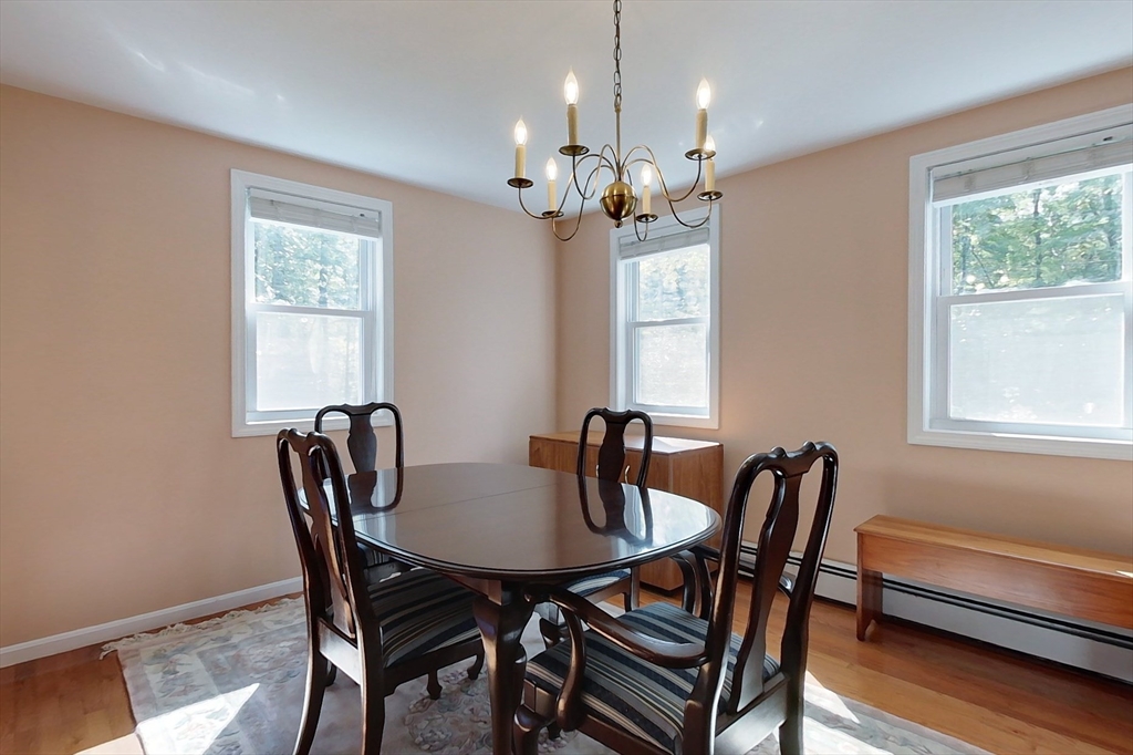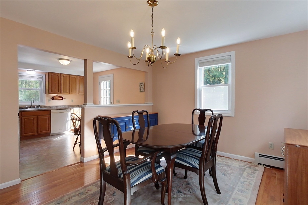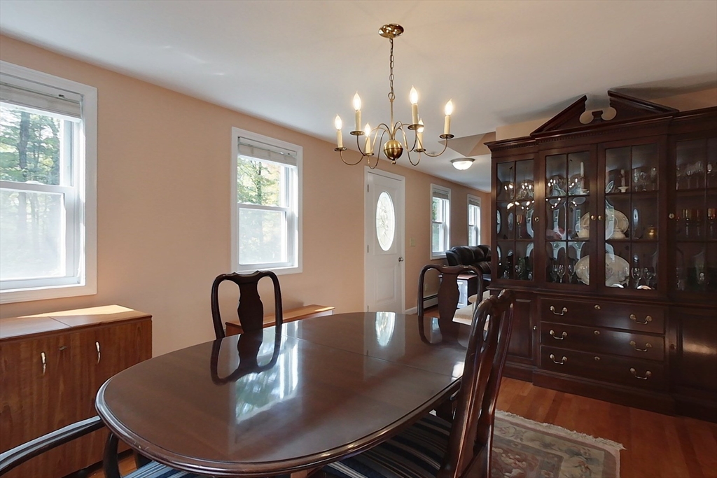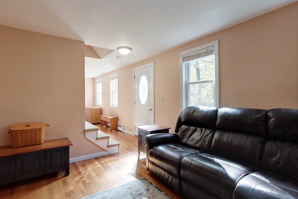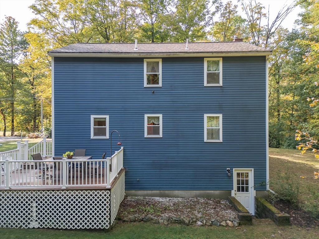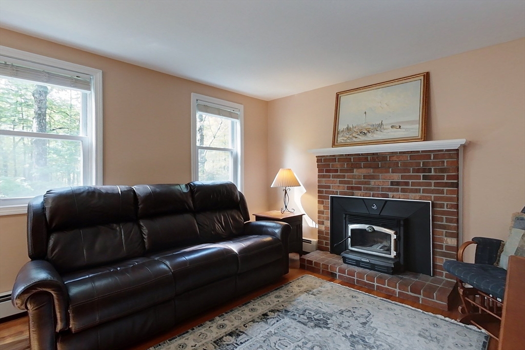 Welcome home to this 4-bedroom gem situated on a wooded lot where the treeline wraps the entire property, creating natural privacy. Gather around the backyard fire pit, plant your dream garden, or simply enjoy the seasons from the renovated deck. Inside, hardwood floors flow through a sun-filled dining room and cozy living room with a wood-burning fireplace insert that can heat the whole home. The kitchen features warm wood cabinetry, some stainless appliances added within the last 5 years, and deck access. A first-floor bedroom adds flexibility, while upstairs offers 3 bedrooms—including a spacious one with dual walk-in closets—and a full bath. With 650+ sq ft of storage in the basement, a newer roof, chimney work, gutter covers, and shed this home blends charm with function. Just minutes to Route 119, the MA/NH line, and local shops/dining. Showings begin at the Open House Sat, 10/4, 11AM–1PM.