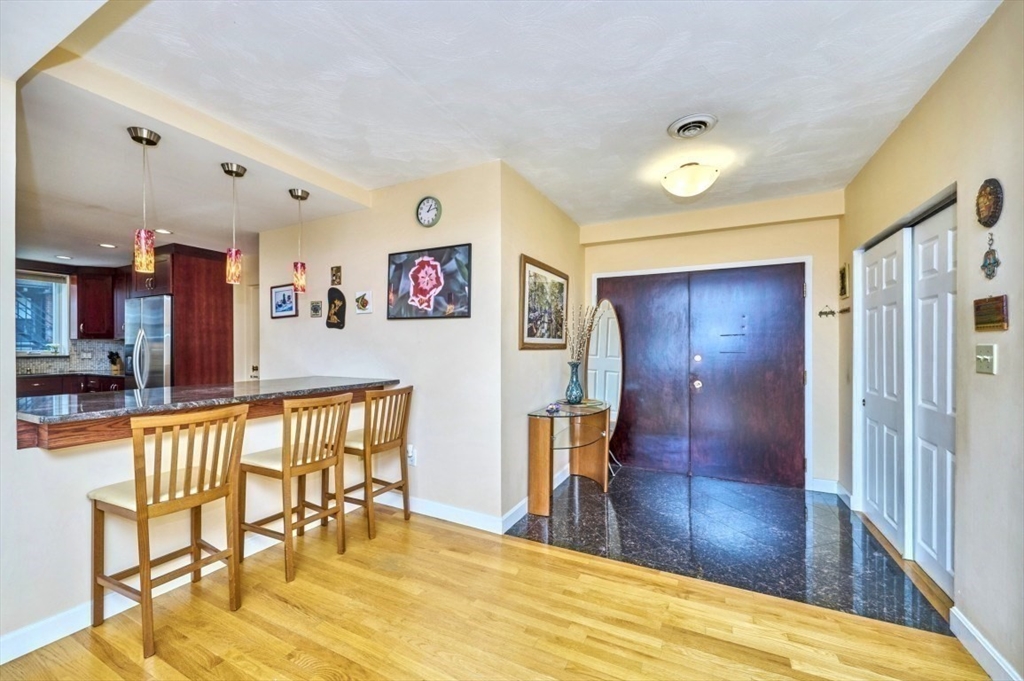 The Commonwealth House: The Ultimate Luxury Elevator Building In Chestnut Hill Located On The Carriage Lane Atop Heartbreak Hill. Ultra-Rare 1,927 S/F Sprawling 2Bed/2Bath Front Corner-Unit On The 3rd FL w/Massive Open Floorplan. You Have Never Seen A Larger Layout Or Room Sizes Anywhere. Enter Through The Dramatic Double Wooden Doors Into The Flowing Open Foyer w/Walk-in Closet Large Enough To Be An Office. The Spacious Dining Area & Sun-Drenched Living Rm Blend Seamlessly Into One Another w/Gleaming Hardwd Floors & Recessed Lights Throughout. Elegant Eat-In Kitchen w/Cherry Cabinets, Granite Counters, Mosaic Stone Backsplash, Stainless Appliances & 6 Person BFast-Bar. Jaw Dropping Primary Suite w/3 Closets, Including a Walk-In. Ensuite Main Bath w/Double Sink, Corian Counters & Tub. Bed 2 w/Slider To Priv Balcony. Bath 2 w/Glass Shower & Custom Storage. Central Air. In-Unit Laundry. Garage Parking. Xtra Storage. Next Door To Waban Hill Reservoir. Walk To Top-Rated Schools, Shops & T.