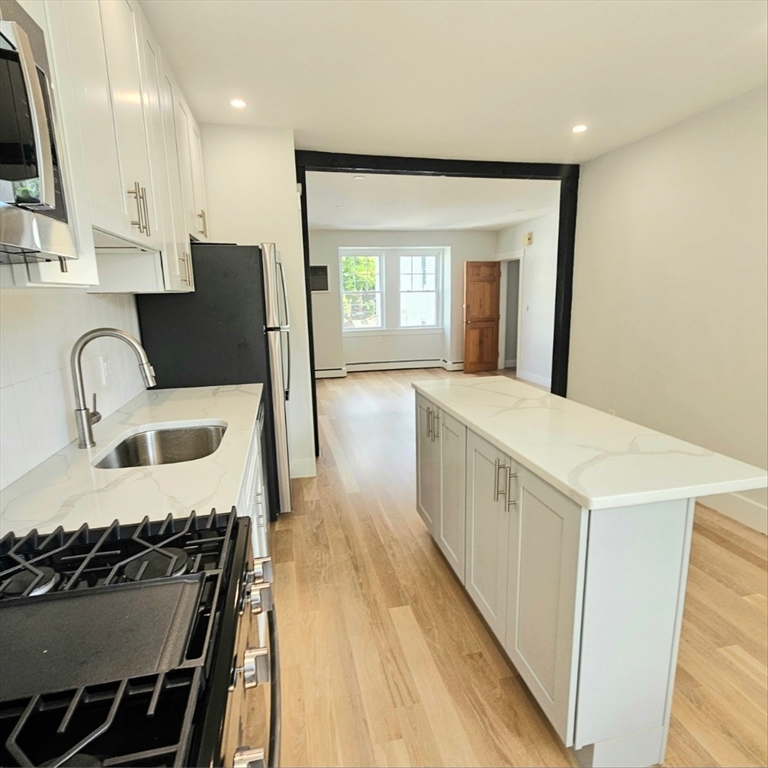 Renovated one bedroom apartment in a professionally managed complex. Spacious living room and new custom kitchen with granite countertops, stainless steel appliances, and island. Large bedroom, and nice natural light throughout. Heat and hot water included in the rent. Air conditioning, common laundry and additional storage as well. Quick walk to Brookline Hills T stop (D line) and close proximity to close to Brookline Village, Longwood Medical, and Olmsted Park. Lots of coffee shops, grocery store and restaurants close by make this a wonderful place to call home.