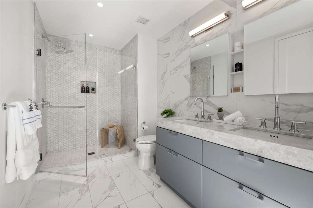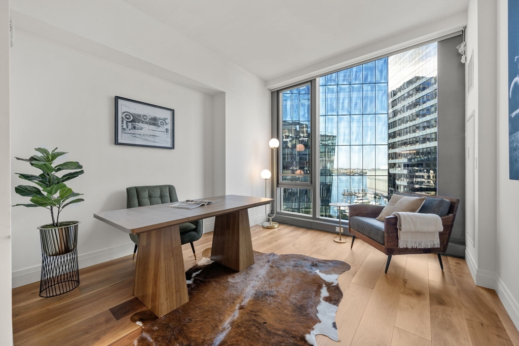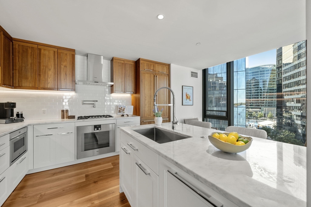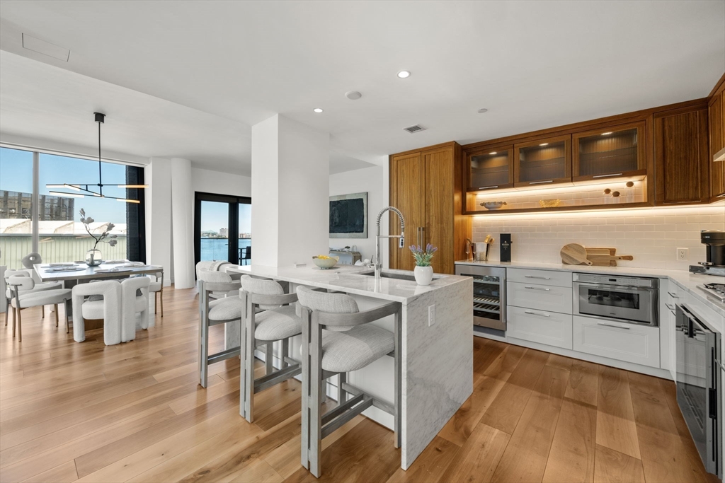 Experience exceptional waterfront living in this rare, single-level luxury Seaport condo. This 3-bed, 2.5-bath home features an open layout, floor-to-ceiling windows, and stunning water views from every room with three sunlit exposures. Enjoy two private balconies, two garage spaces, and a coveted all on one level floor-plan. This incredible full service building includes valet, 24-hour concierge, resident lounge, an outdoor terrace with water views and grills, fitness center, and golf simulator. Steps to Seaport’s top shopping and dining, including in building restaurants Nautilus, Woods Hill Table, and The Block at Woods Hill.