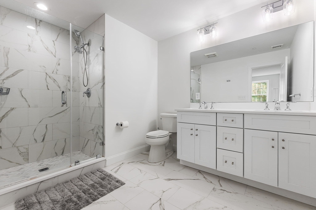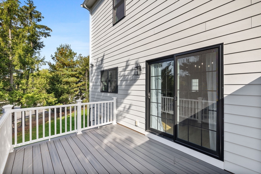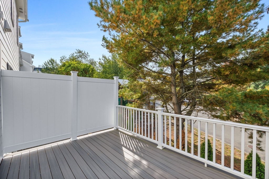 End Unit at the very end of desirable Ashley Court, built in 2023 with today’s modern style—white exterior, black accents, and extra windows that fill the home with light. The first floor offers a private office, while the open main level features 9+ ft ceilings, gleaming oak hardwoods, and a chef’s kitchen w/upgraded white cabinetry, Quartz island & countertops, basket-weave backsplash, stainless steel appliances, and gas cooking with grill. The kitchen flows to a dining room with sliders to a composite deck, perfect for barbecues, and a family room with quartz fireplace—an ideal entertaining space. Upstairs, laundry area, two bedrooms, & two full baths, including a primary suite with walk-in closet and spa-like bath with double quartz sinks and oversized tiled shower. The Top floor offers a cathedral-ceiling flex/bedroom. One-car attached garage extra common parking, and a prime location near public transportation, shopping, dining, trails,& major rtes complete this move-in readyhome