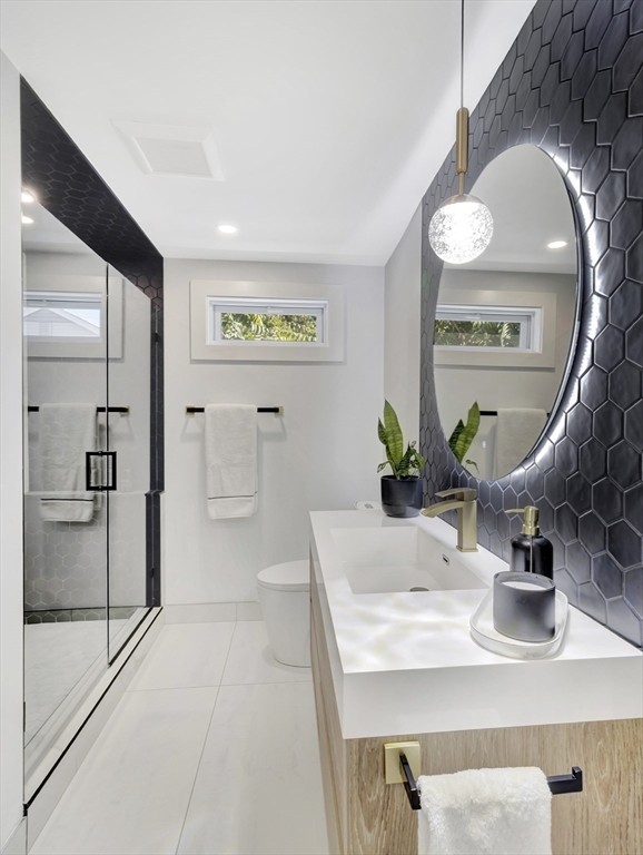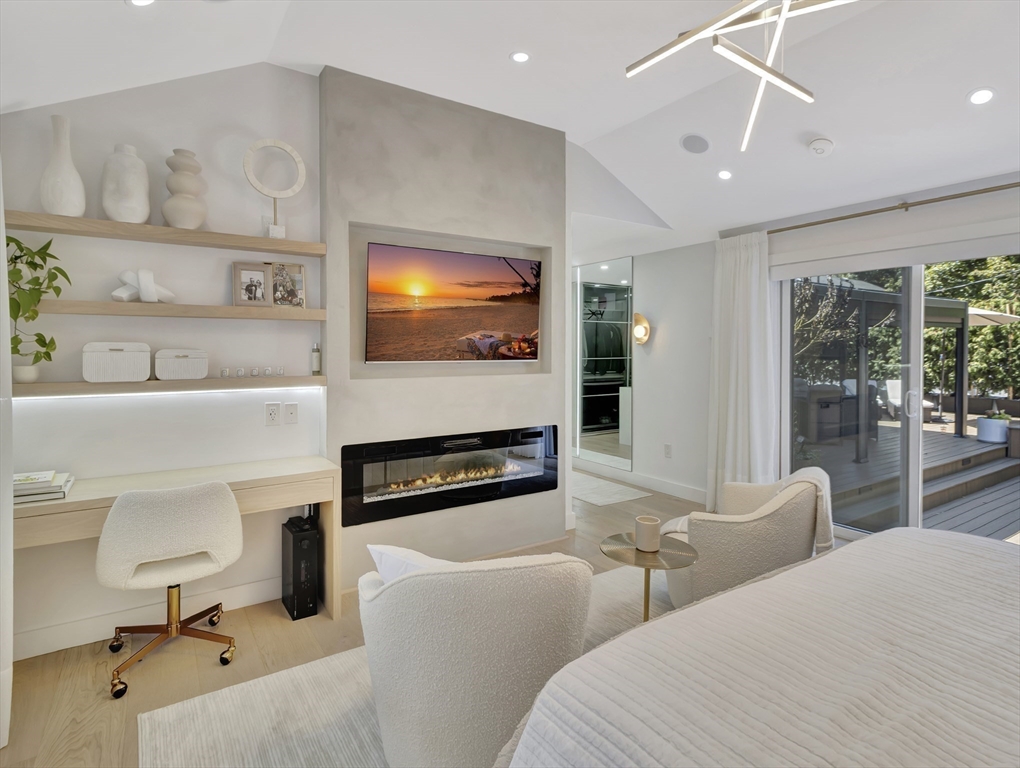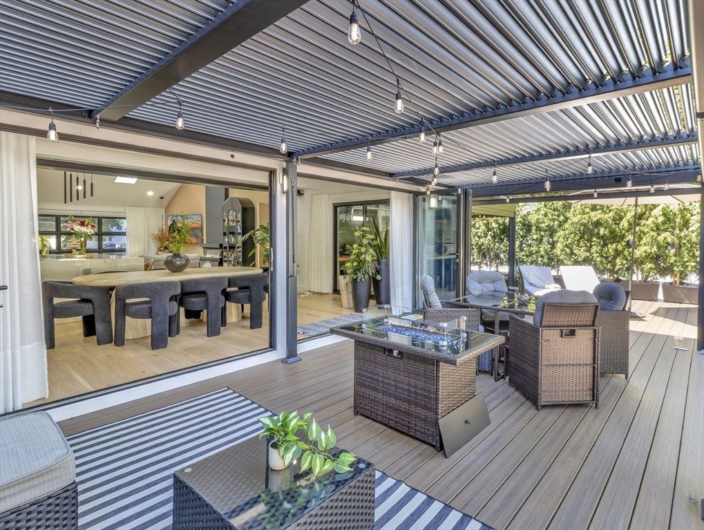 This beautiful home presents an unparalleled opportunity to own a luxury property in pristine condition. Situated in a desirable area, with a superb combination of sophisticated design and top-tier materials. The heart of this amazing residence is the kitchen, designed with both aesthetics and functionality in mind. The kitchen's shaker cabinets offer abundant storage, while the stone countertops provide a durable and elegant workspace. A skylight floods the space with natural light, complementing the backsplash and illuminating the island and bar. Open to a covered deck that leads to the adult playground beyond w/unparalleled outdoor spaces for endless entertaining possibilities. The living room presents a dramatic picture defined by its vaulted ceiling, further enhanced by a skylight that lets the sunlight in. A primary ensuite that wows, tons of storage, finished areas for exercising, gaming, relaxing and entertaining, surround sound throughout, there is something here for everyone.