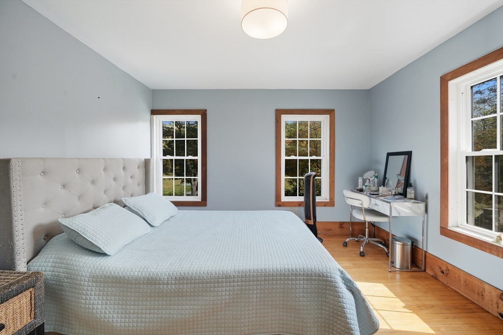 This 1800's farmhouse was once home to The Ideal Shoe Company (Danvers, MA). It's a property rich with history, charm, and situated in the middle of 13+ gorgeous acres fit to explore, or simply revel in their beauty. Surrounded by hundreds of acres of conservation land, your adventures could be endless. Take in the tranquil sounds of the Westfield River while roaming the tree-lined paths or relaxing in the Gazebo. Once inside, hardwood floors and beautiful wood beams decorate nearly every room. Fire up the wood stove, grab a book from the library, and unwind in the spacious living room, the 3-season porch, or have a swim in the pool room. The impressive kitchen is ideal for entertaining, with easy access to an office/studio space and a newly renovated bath with laundry. The 2nd floor offers 3-4 bedrooms with beautiful natural light, and a full BA. Located right between Northampton and Pittsfield, yet tucked away from it all. This peaceful retreat is not to miss! 1st showings at OH 10/4
