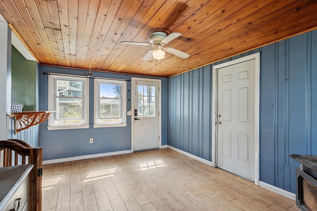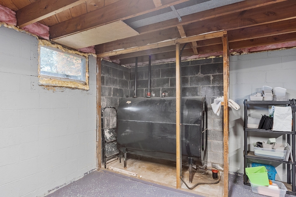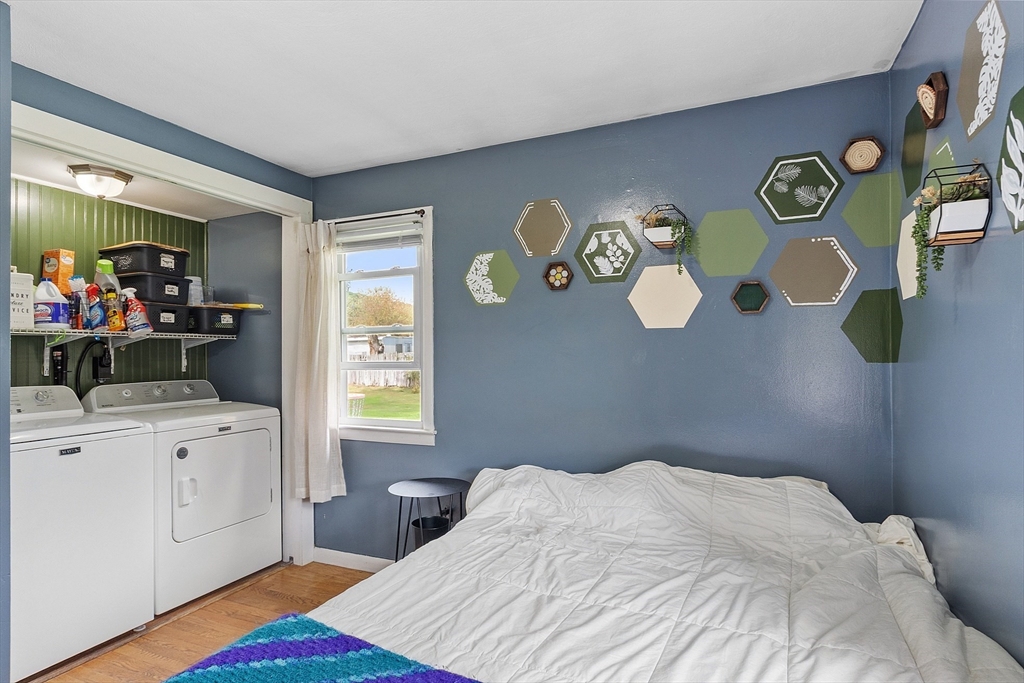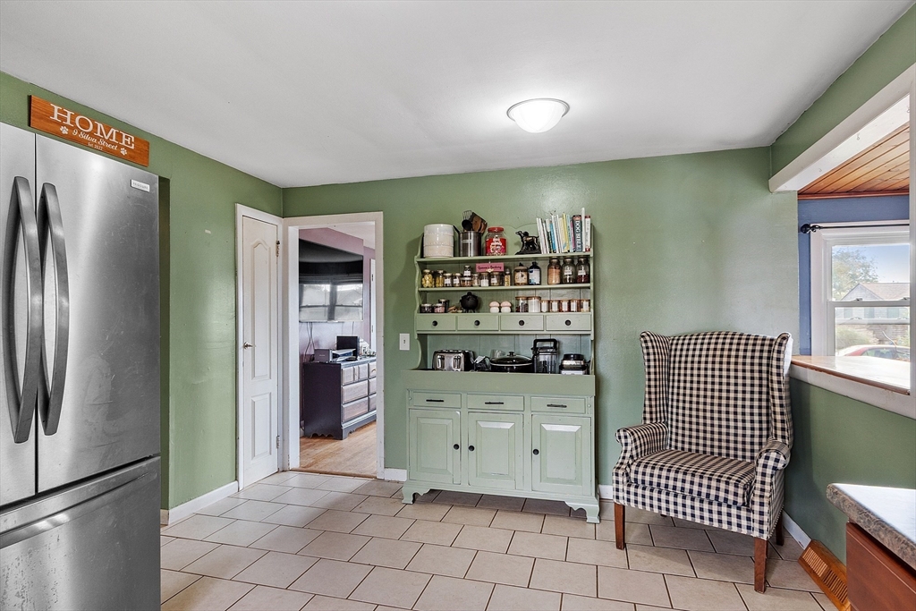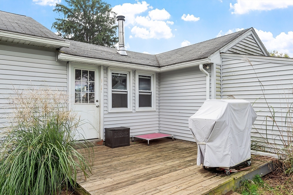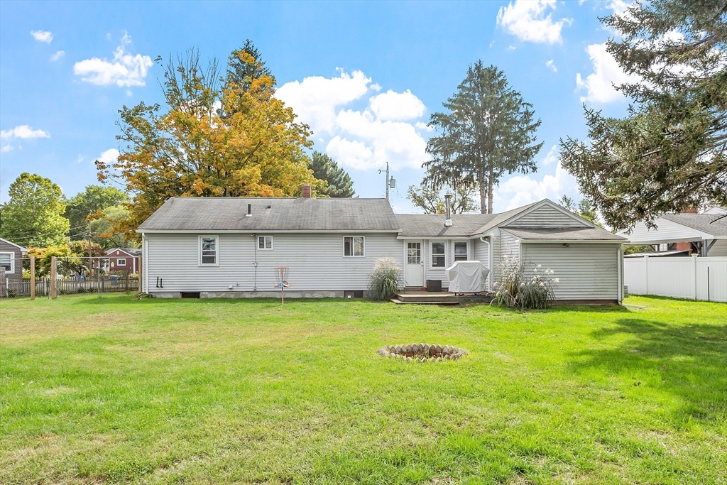 Come check out this adorable 2 bed 1 bath ranch. Enter through the spacious mudroom with a cozy wood stove to warm up after a long day. Step up into your eat-in kitchen; perfect for hosting indoors or out. This home has hardwood floors in the living room and bedrooms. The living room just off the kitchen, pooling with natural light. Primary bedroom continues with hardwood floors, and features a spacious walk-in closet. Second bedroom offers first floor laundry. Downstairs you'll find a partially finished basement, with fresh epoxy floors and a finished office space. Just outside, you'll find a large, flat yard with raised flower beds, a convenient shed, and fire pit. Oversized 1-car garage with workbench and loft storage. On a dead end street, there is plenty of privacy and peace. This is one you won't want to miss.