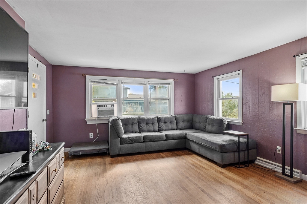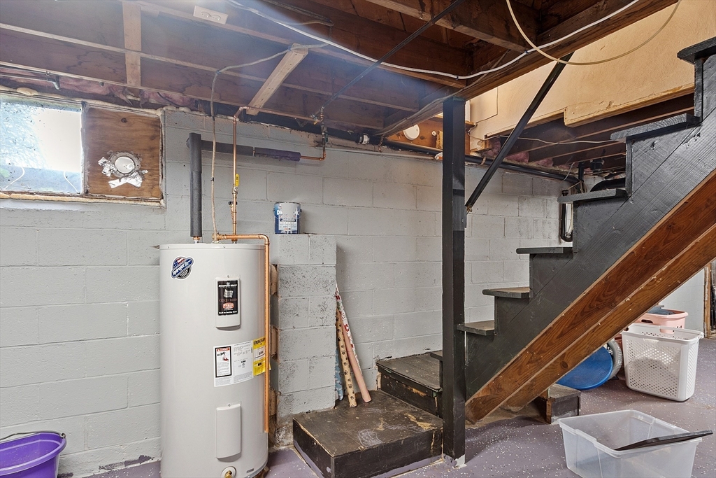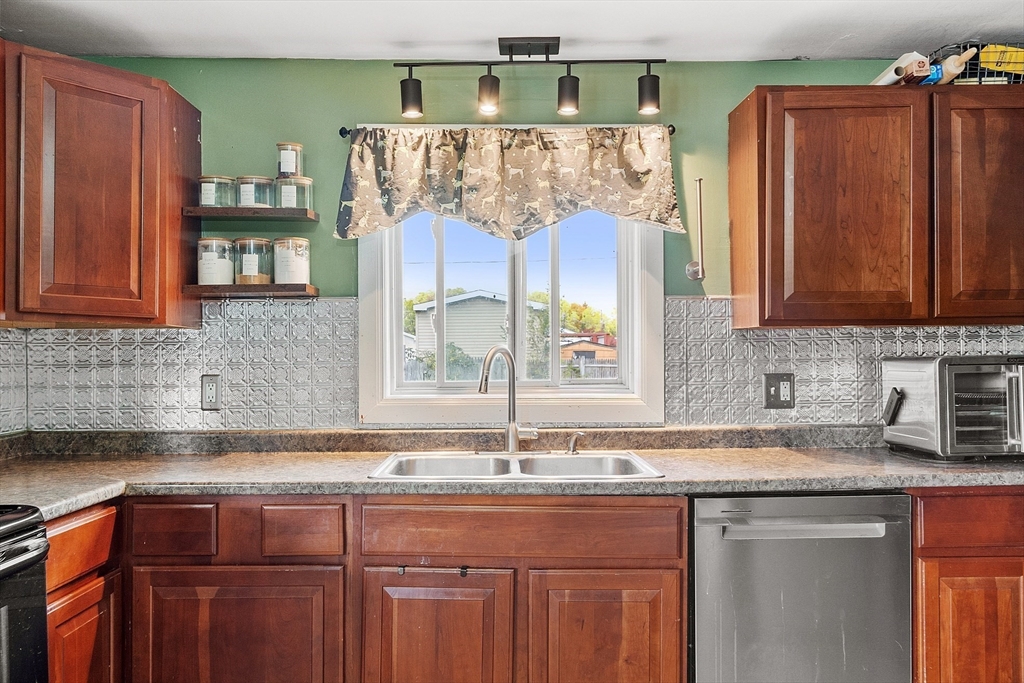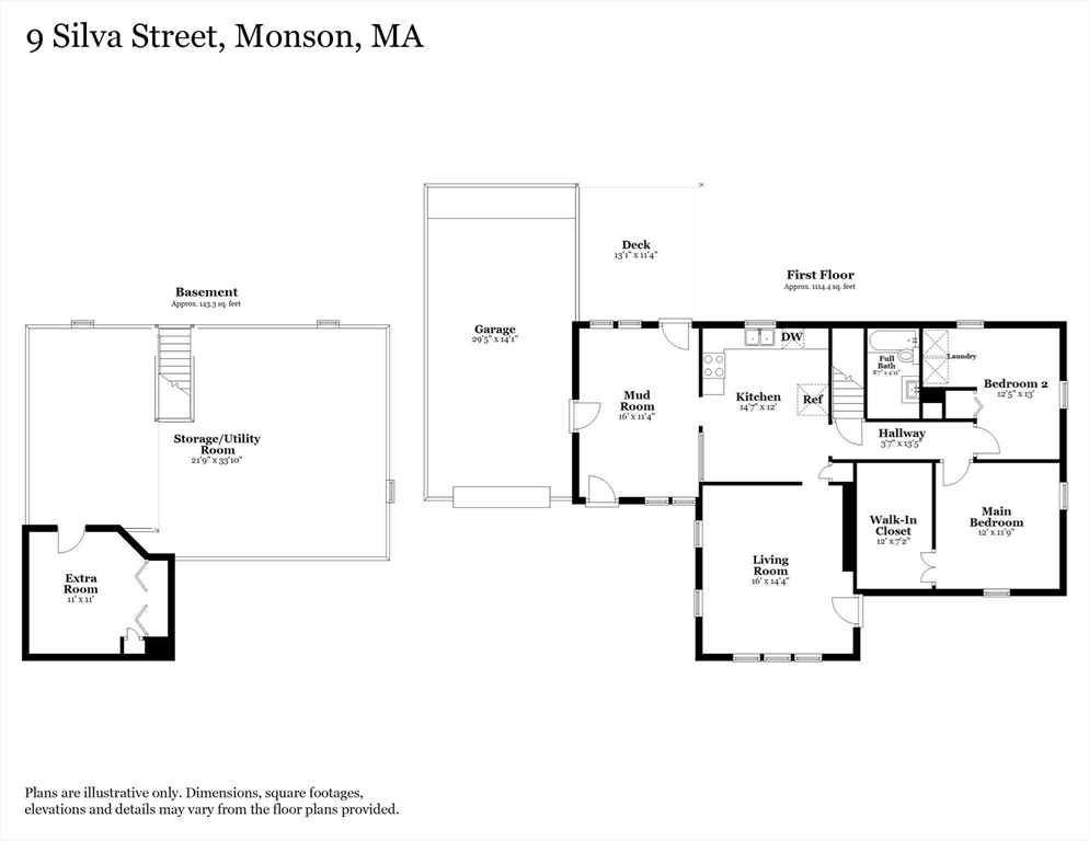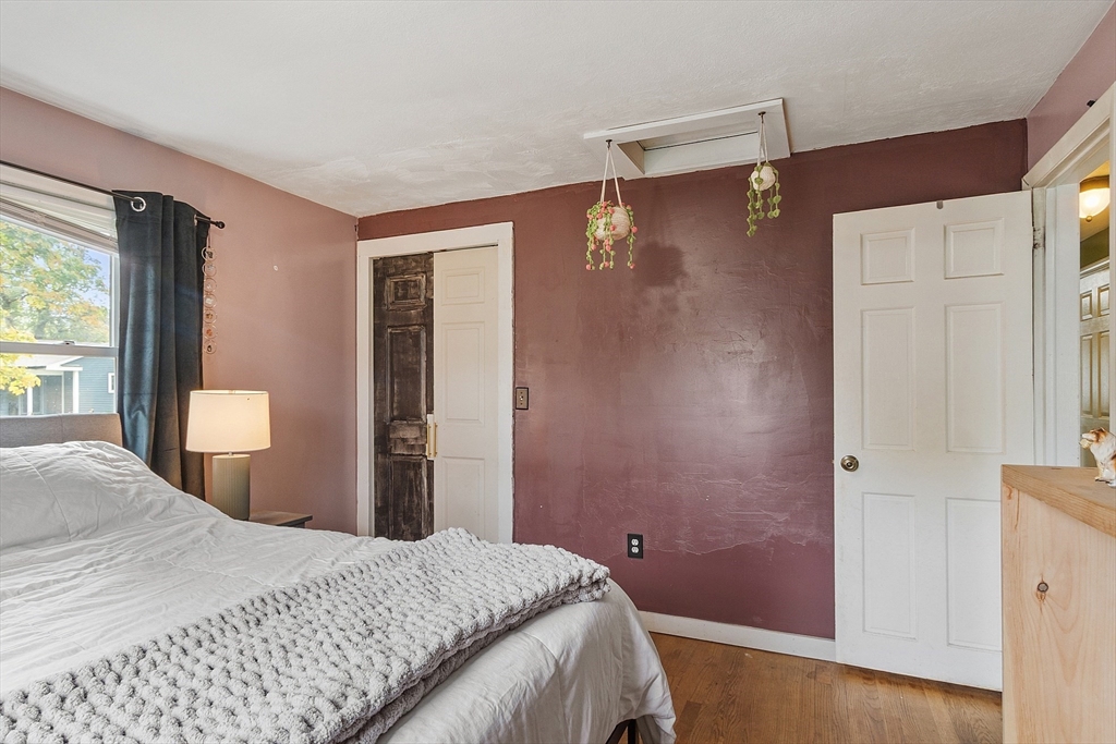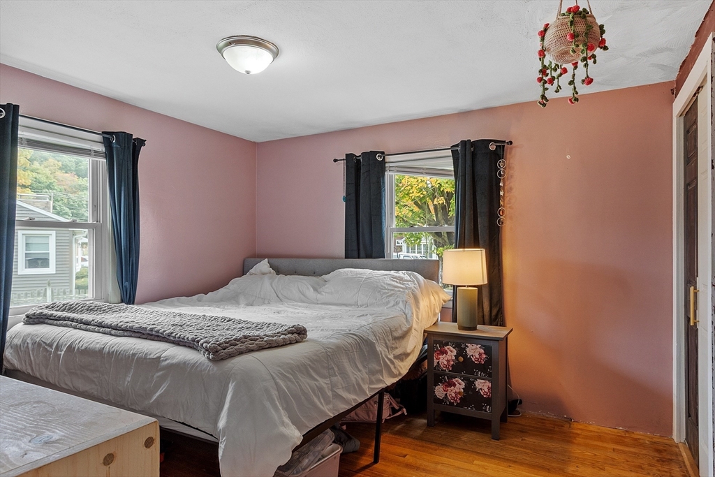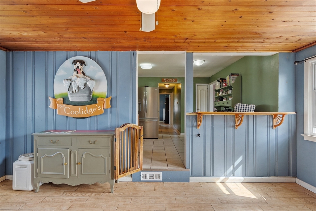 Come check out this adorable 2 bed 1 bath ranch. Enter through the spacious mudroom with a cozy wood stove to warm up after a long day. Step up into your eat-in kitchen; perfect for hosting indoors or out. This home has hardwood floors in the living room and bedrooms. The living room just off the kitchen, pooling with natural light. Primary bedroom continues with hardwood floors, and features a spacious walk-in closet. Second bedroom offers first floor laundry. Downstairs you'll find a partially finished basement, with fresh epoxy floors and a finished office space. Just outside, you'll find a large, flat yard with raised flower beds, a convenient shed, and fire pit. Oversized 1-car garage with workbench and loft storage. On a dead end street, there is plenty of privacy and peace. This is one you won't want to miss.