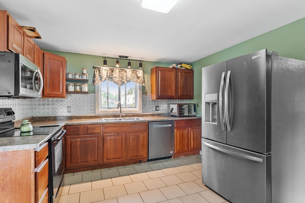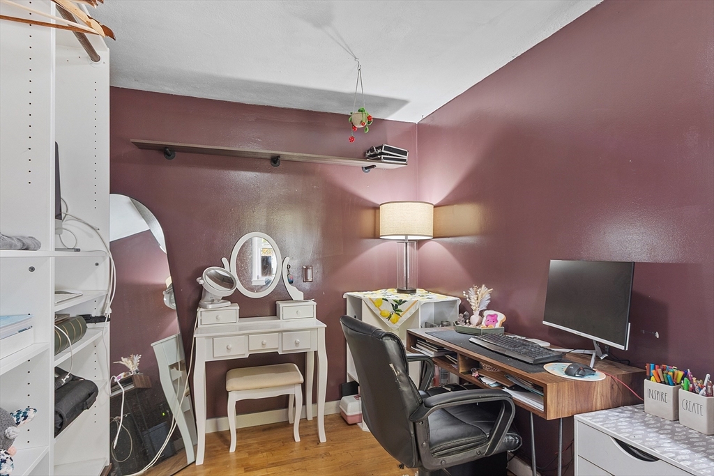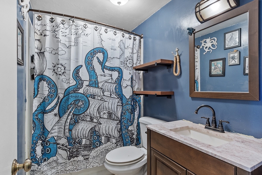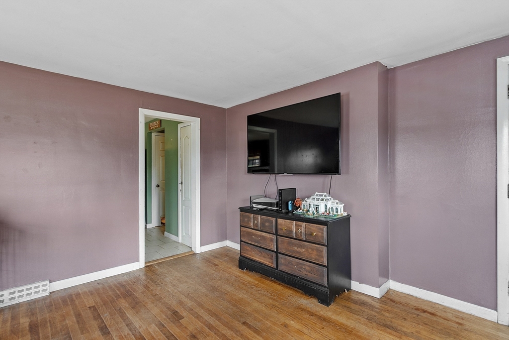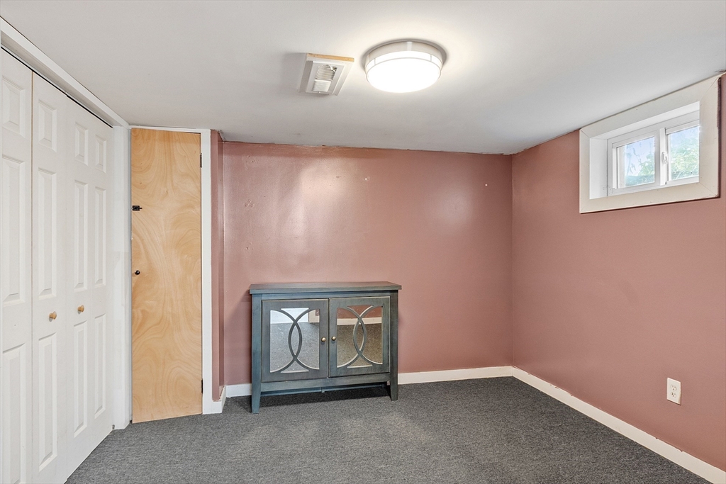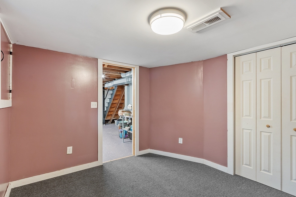 Come check out this adorable 2 bed 1 bath ranch. Enter through the spacious mudroom with a cozy wood stove to warm up after a long day. Step up into your eat-in kitchen; perfect for hosting indoors or out. This home has hardwood floors in the living room and bedrooms. The living room just off the kitchen, pooling with natural light. Primary bedroom continues with hardwood floors, and features a spacious walk-in closet. Second bedroom offers first floor laundry. Downstairs you'll find a partially finished basement, with fresh epoxy floors and a finished office space. Just outside, you'll find a large, flat yard with raised flower beds, a convenient shed, and fire pit. Oversized 1-car garage with workbench and loft storage. On a dead end street, there is plenty of privacy and peace. This is one you won't want to miss.