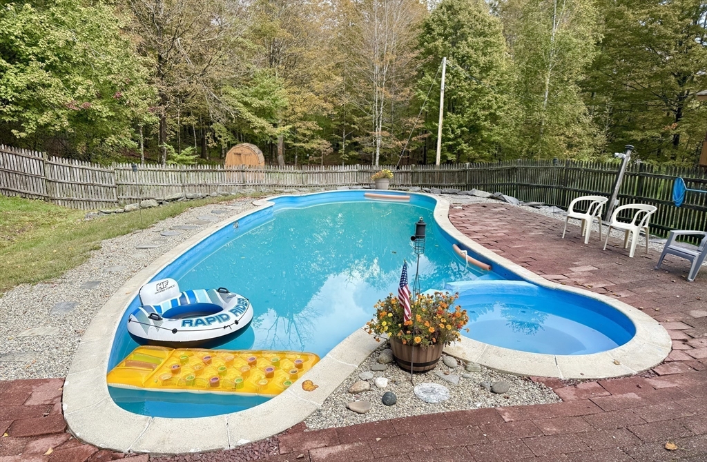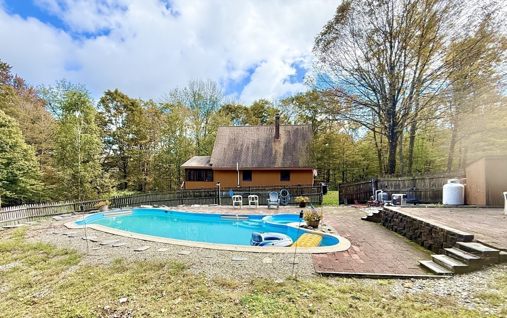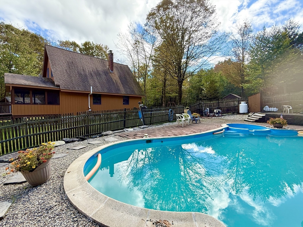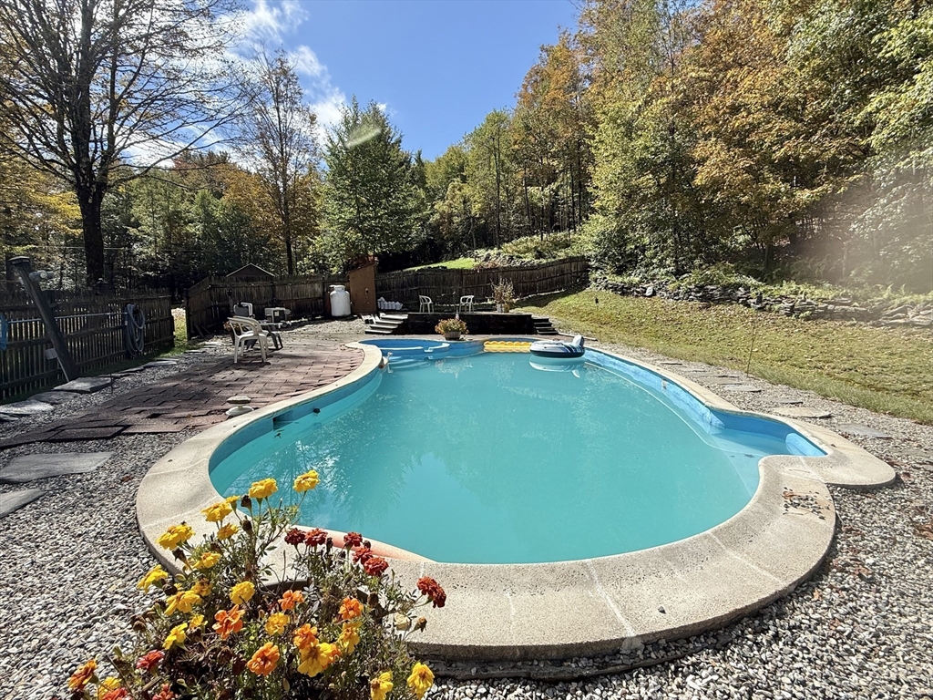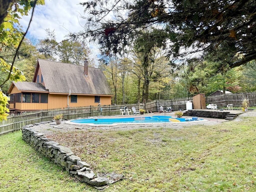 Looking for peace, privacy and room to breathe? Set off the beaten path in Chester, this sweet 2-bedroom home offers 18 acres of extreme solitude--No houses in sight, just surrounded by nature. You'll enjoy summers floating in your inground pool (with new pump and filter) and evening dinners on the screened porch. The expansive yard will easily host gardens, pets and play. Inside the house, the vaulted ceilings and open floor plan make for a comfortable and airy feel. One bedroom on each floor makes for nice separate spaces. Full basement with laundry and work area. A wood stove in basement and a pellet stove in living room make it cozy and comfortable in the colder months. One car detached garage provides additional storage space. This is a rare find for those craving quiet, solitude and a real connection to nature. Perfect for a year-round residence or a weekend getaway. Come see it yourself at the Open House on Sunday, October 5th, from 10am -12 noon.