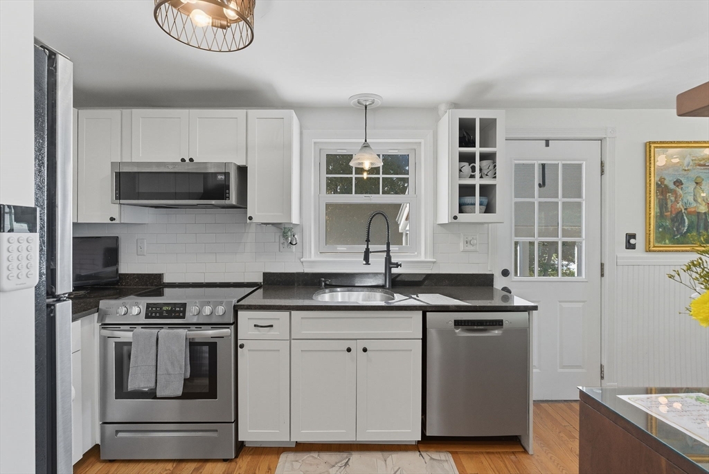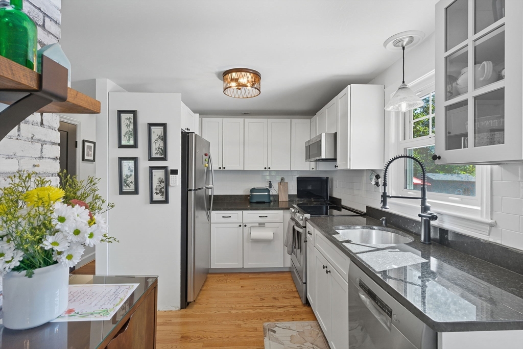 This isn’t your average ranch- perched in the Robin Hood neighborhood, this one stands out with move-in ready comfort and neighborhood charm. The kitchen offers white cabinetry, granite countertops, and stainless appliances. The full bath adds a touch of modern style, and the bonus three-season sunroom creates the perfect spot for morning coffee, checking emails, or simply unwinding.. Downstairs, you'll find 300 square feet of finished space, ideal for a playroom, home office, or guest area. Outside, the patio and yard make entertaining easy, and three-car parking adds everyday convenience. Set on a sidewalk-lined street just steps from highly rated Robin Hood Elementary, this home delivers that true neighborhood feel. With easy access to Routes 93, 95, and 28, commuting is an easy. Recent updates include a 2007 roof and 2012 windows, making this a smart choice for first-time buyers or those seeking low-maintenance, single-level living.