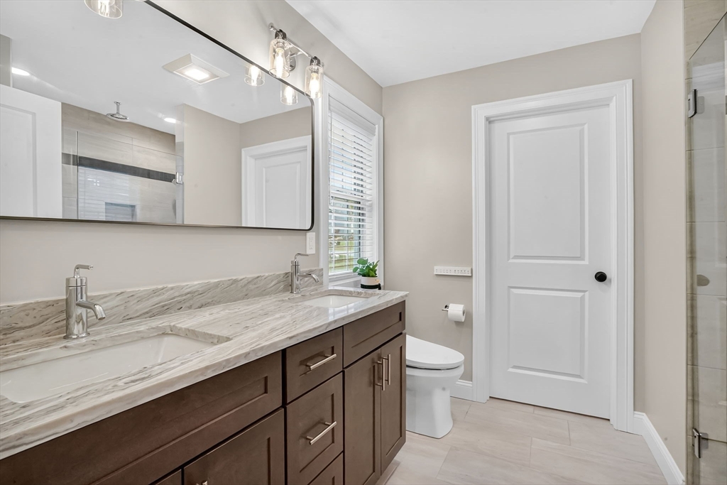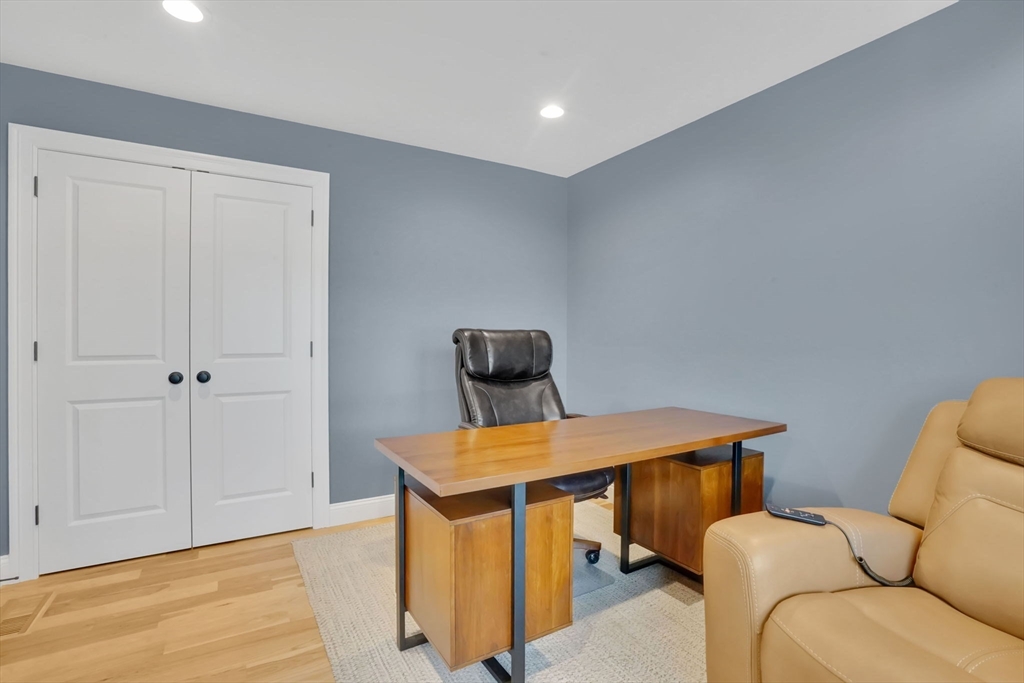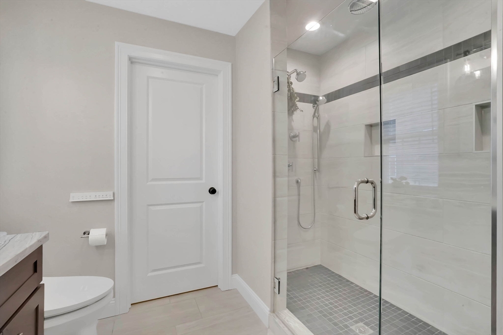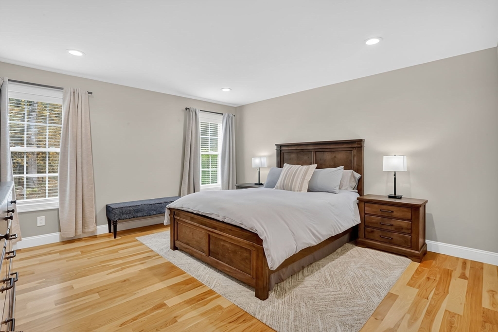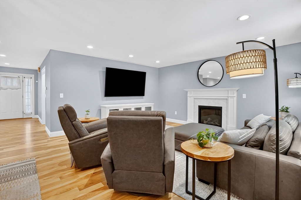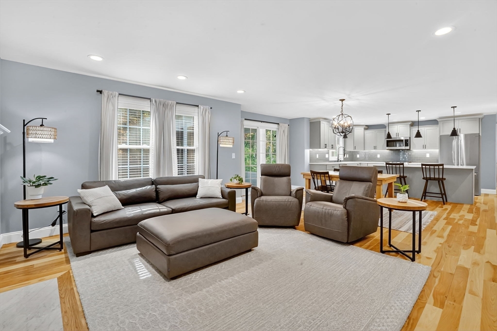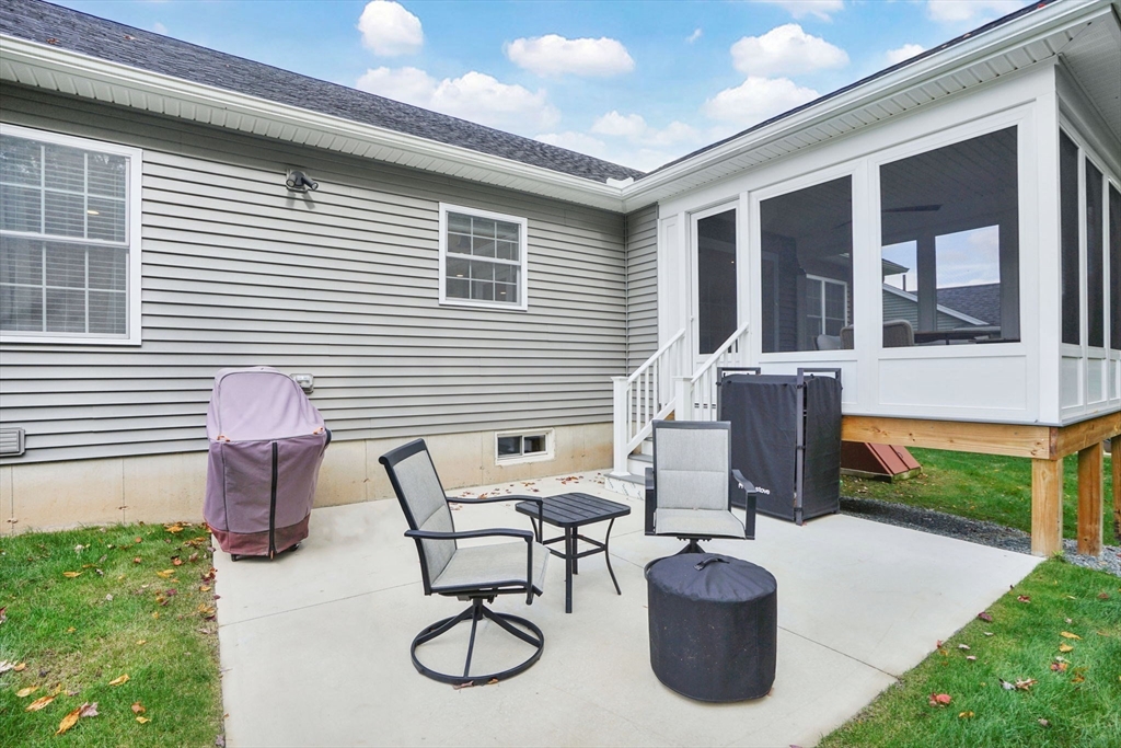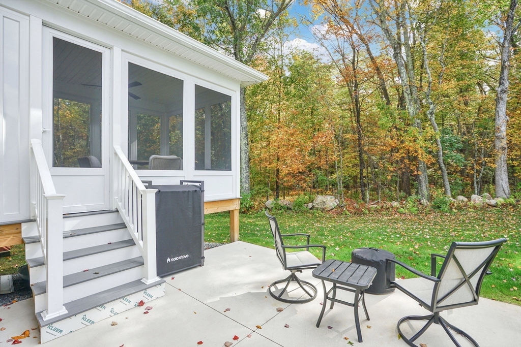 An absolute Stunner and the LOCATION abutting woodlands is the BEST! Enjoy the farmers front porch, center hall foyer w/ gorgeous hickory hardwood floors throughout. A wide open floor plan delivers a spacious living rm w/ a gas fireplace, perfect for those cozy nights opening to beautiful gray kitchen, 7 ft island, gas range, under cabinet lighting, tiled backsplash, wonderful pantry, quartz counters & lovely dining area opening to enclosed/screened porch & patio dining. The primary bedroom has two w/ in closets & a large ensuite w/ tiled shower boasting 3 shower heads functioning at the same time. Enter from the garage to a fantastic mudrm/laundry rm highlight built in cabinetry & pocket door. There are 2 other bedrooms, one currently used as an office w/ hdwd flrs. Enjoy the carefree lifestyle offered here and all those spring/summer days out on your porch and patio area. Custom blinds throughout, built in humidifier, on demand hot water loop system - instant hot water a bonus!