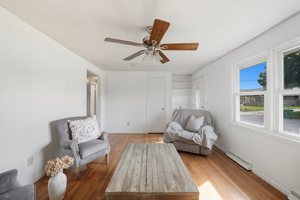 Discover the potential in this classic 3-bedroom ranch located in a convenient Chicopee neighborhood. The home offers a spacious living room with hardwood floors, eat-in kitchen with dining area, and three comfortable bedrooms also featuring wood floors. A full basement provides ample storage or room for future finishing. Outside, enjoy a level yard with a storage shed, a carport, and a large covered patio, ideal for relaxing or entertaining. Recently refreshed but still ready for your personal touch, this home is a great opportunity to make your own. New HW Tank 2024, New electrical service panel 2025.