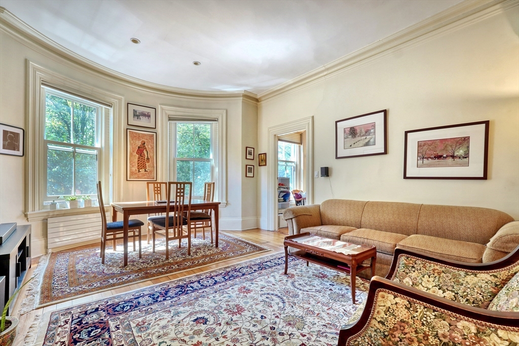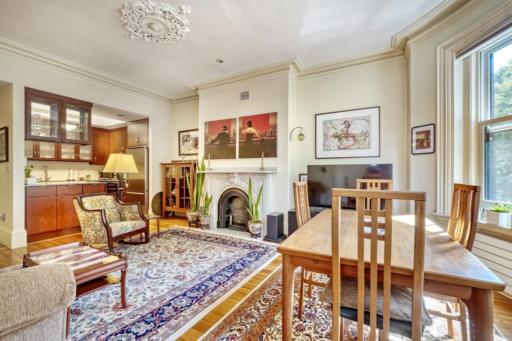 Classic two bedroom one bath on picturesque Union Park. Large primary bedroom with decorative fireplace and second bedroom or office. Living and Dining is sun filled with high ceilings and overlooks Union Park's fountain square. There are hardwood floors through out, and two convenient mini splits for cooling. Open chefs kitchen with gas cooking. Renovated bath and Washer / Dryer in unit. Part of the "Eight Street's" this historic neighborhood offers some of the South End's best dining and shopping. Close to public transportation and major highways. Scheduled showings only.