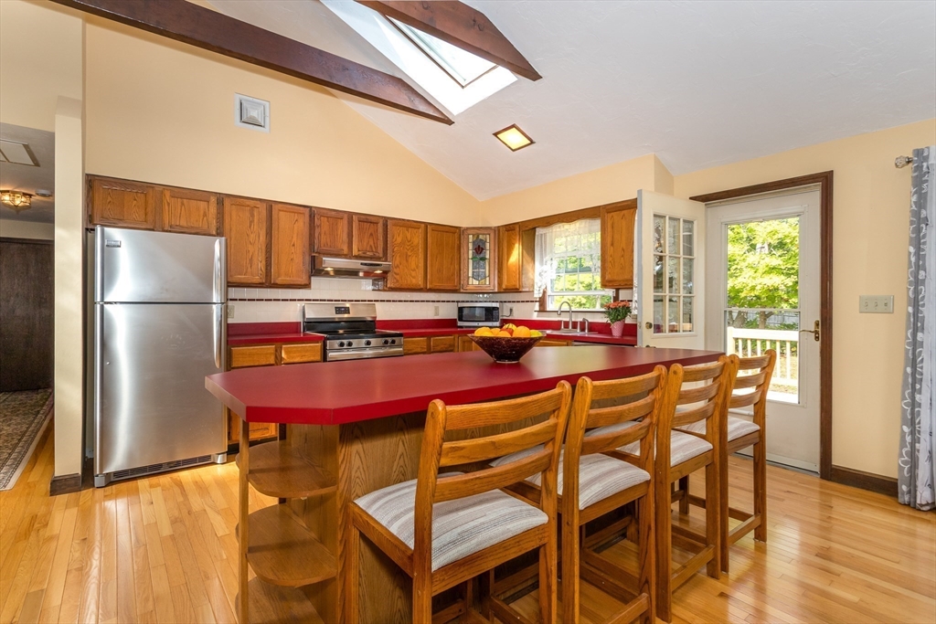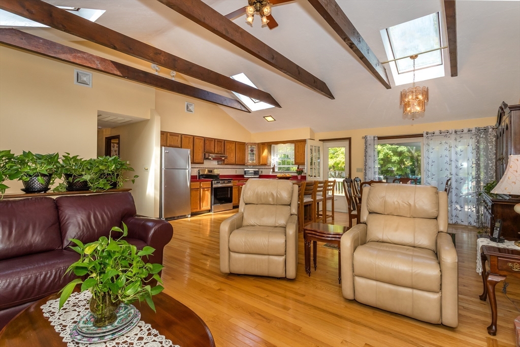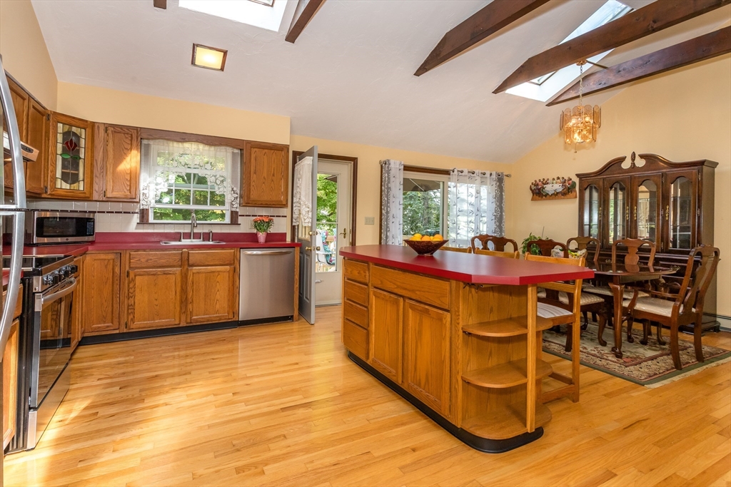 This is the One! Beautiful 3 BR 1.5 bath Split level in an ideal East Weymouth Location. Set on an idyllic 15,000 sq ft private lot on a dead end road, you'll feel like you're relaxing in the country but yet steps away from Whitman's pond, shopping and local amenities. Modern & Open floorplan with vaulted ceilings, fireplaced living room, and slider to an oversized deck. Kitchen layout perfect for entertaining with lots of storage and island. Spacious bedrooms with hardwood floors, double closets and a primary with it's own half bath and Juliet balcony. Cool down with the Central Air conditioning. Attached garage and basement office & family room and plumbed for an additional bath. Too much to list! Want to walk through this home in High Definition 3D? Visit https://tinyurl.com/96WaltonWeymouth ... Showings start at Open House Saturday 10/4 11 am.