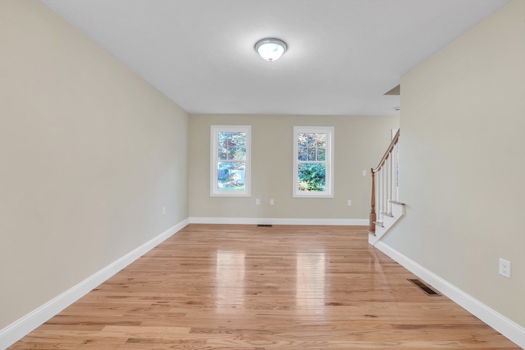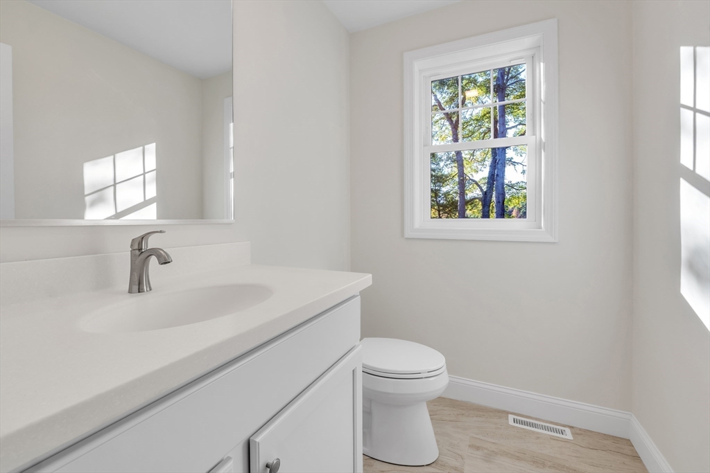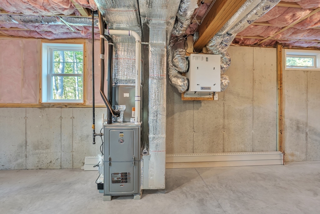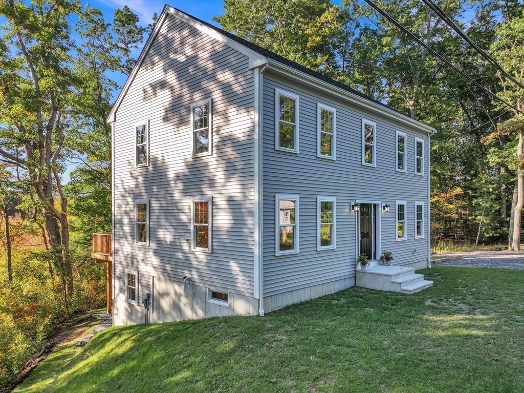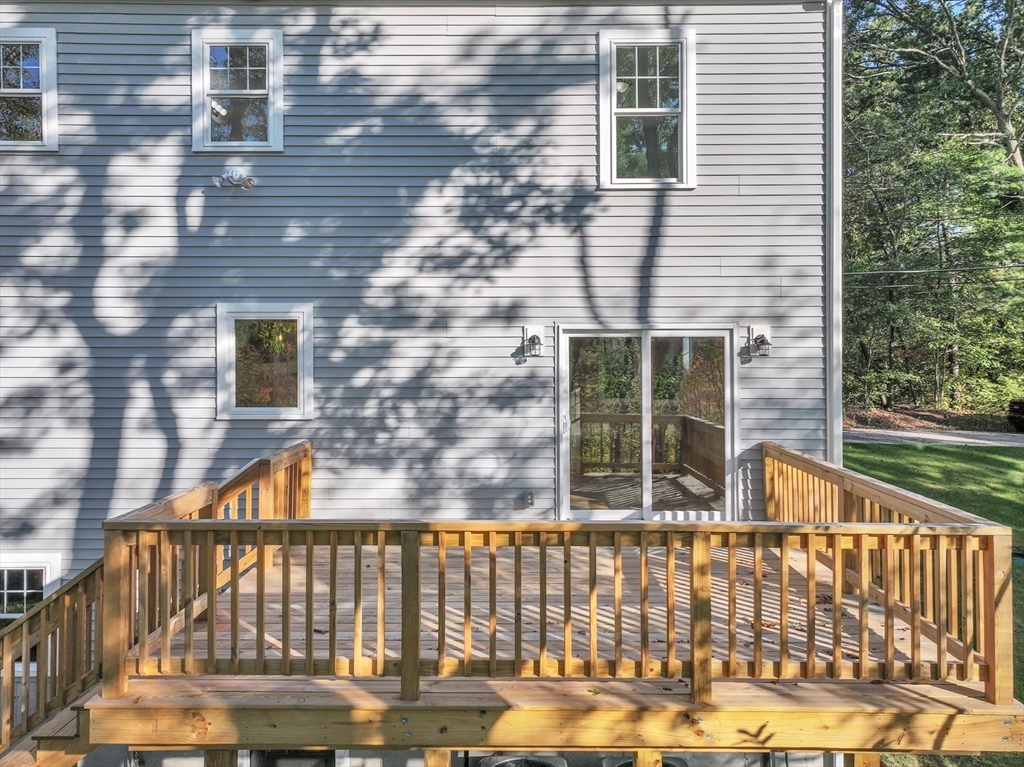 New construction 3BR Colonial with 1,872 sq ft, located at the end of a dead-end road and bordered by wooded conservation land. Over 115 ft of lawn separates you from the neighbor, with parking for 5–6 cars. Inside, hardwood oak floors run throughout with tile in baths and laundry. The open first floor includes a stylish kitchen with stainless appliances, walk-in pantry, snack bar, dining area, and great room. A slider opens to a 12’x16’ deck, perfect for BBQs or relaxing. Upstairs offers 3 bedrooms, office, full bath, and laundry; the primary bedroom has a walk-in closet. The walkout basement with windows, door, and rough plumbing is ready for finishing. Built to energy-efficient standards (HERS 48) with dual-zone HVAC, on-demand hot water, and ERV system. Conveniently near I-495, I-95, commuter rail, shopping, and top-rated Mansfield schools.