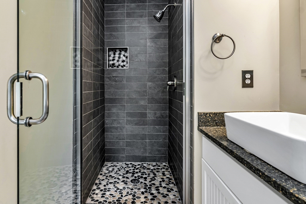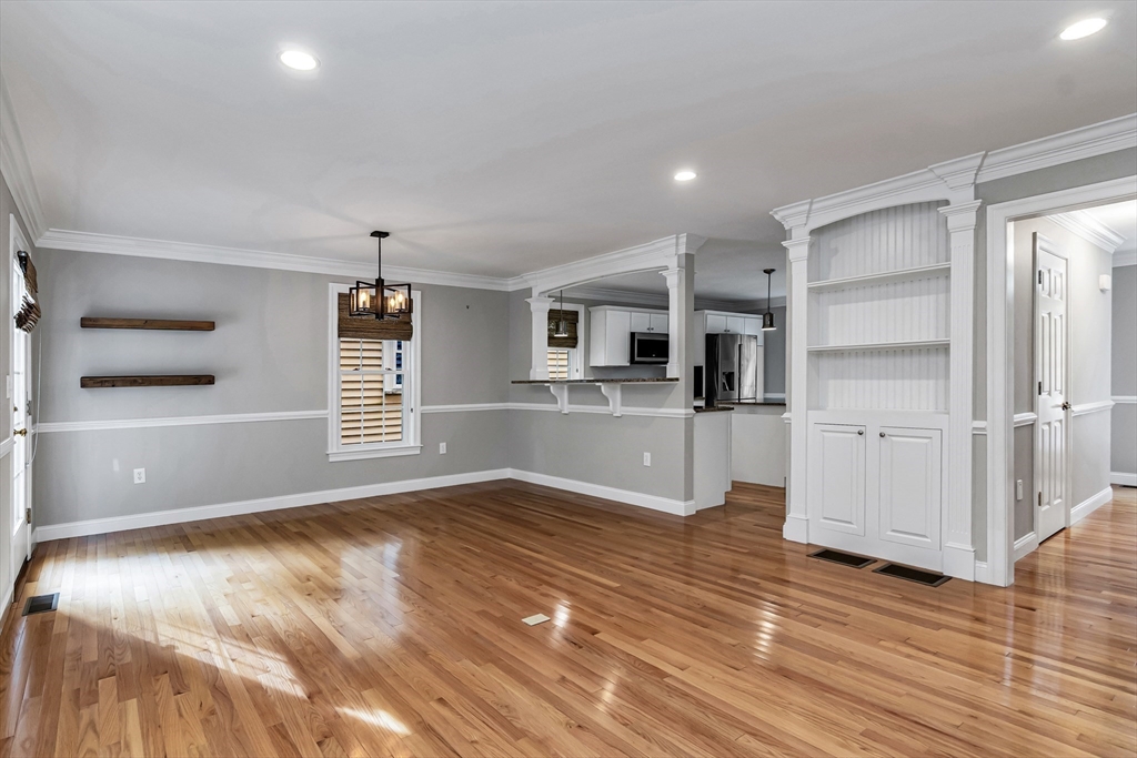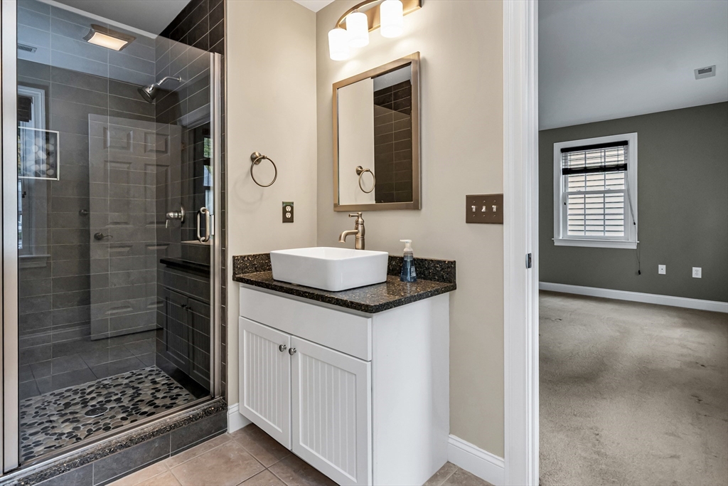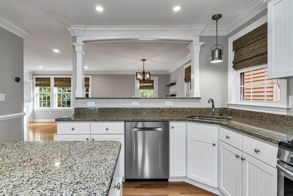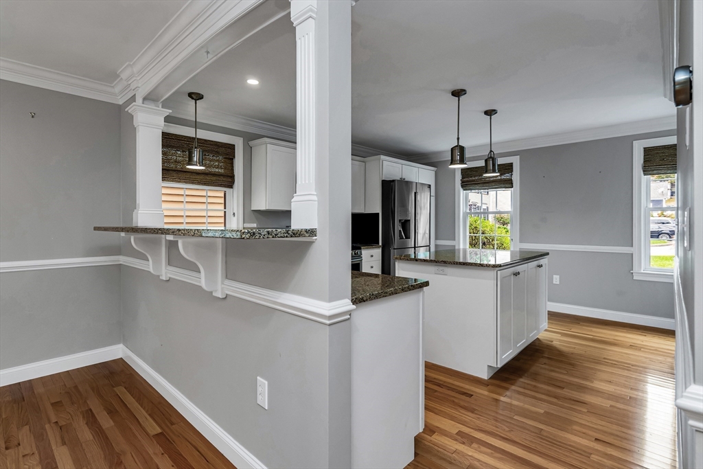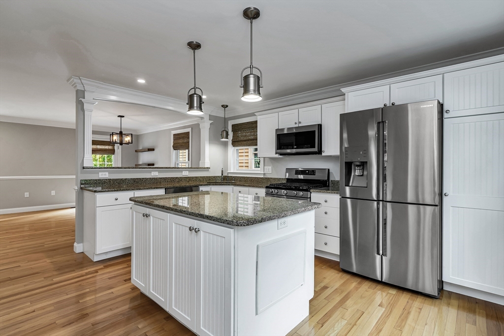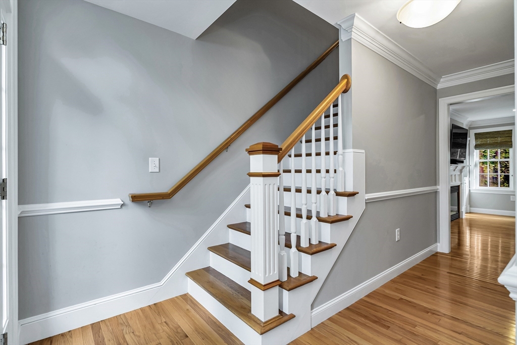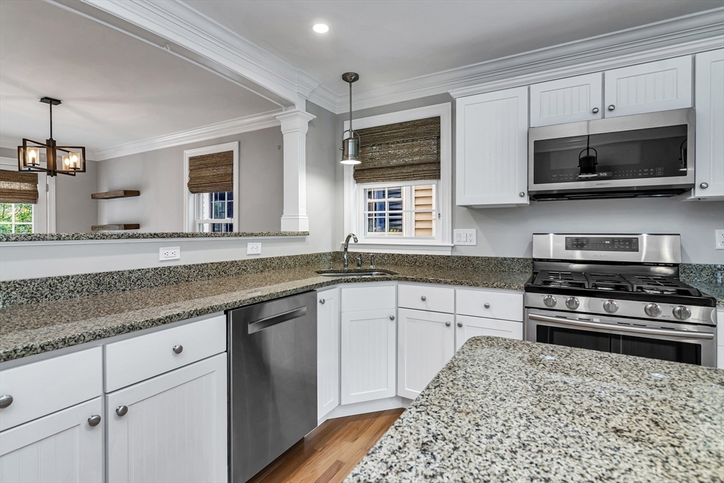Sophisticated and turn-key, this stunning end-unit townhome offers the perfect blend of style, comfort, and convenience. The airy open floor plan is ideal for entertaining, featuring a gourmet kitchen with oversized island, granite countertops, upgraded cabinetry, and stainless steel appliances flowing seamlessly into the dining area and private deck. The elegant living room showcases hardwood floors, custom built-ins, and a gas fireplace framed by large windows with private scenic views. Upstairs, retreat to the oversized primary suite with spa-like bath and custom walk-in closet, while the second bedroom enjoys its own access to a full luxury bath. Perfectly located in a prime commuter setting with easy access to Routes 95, 495, and 1.