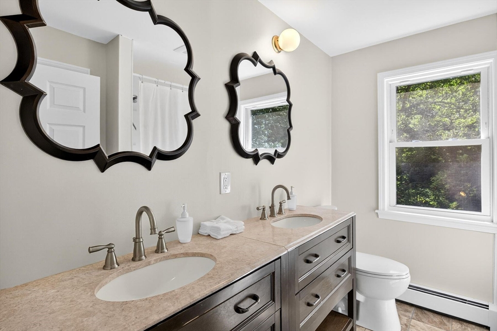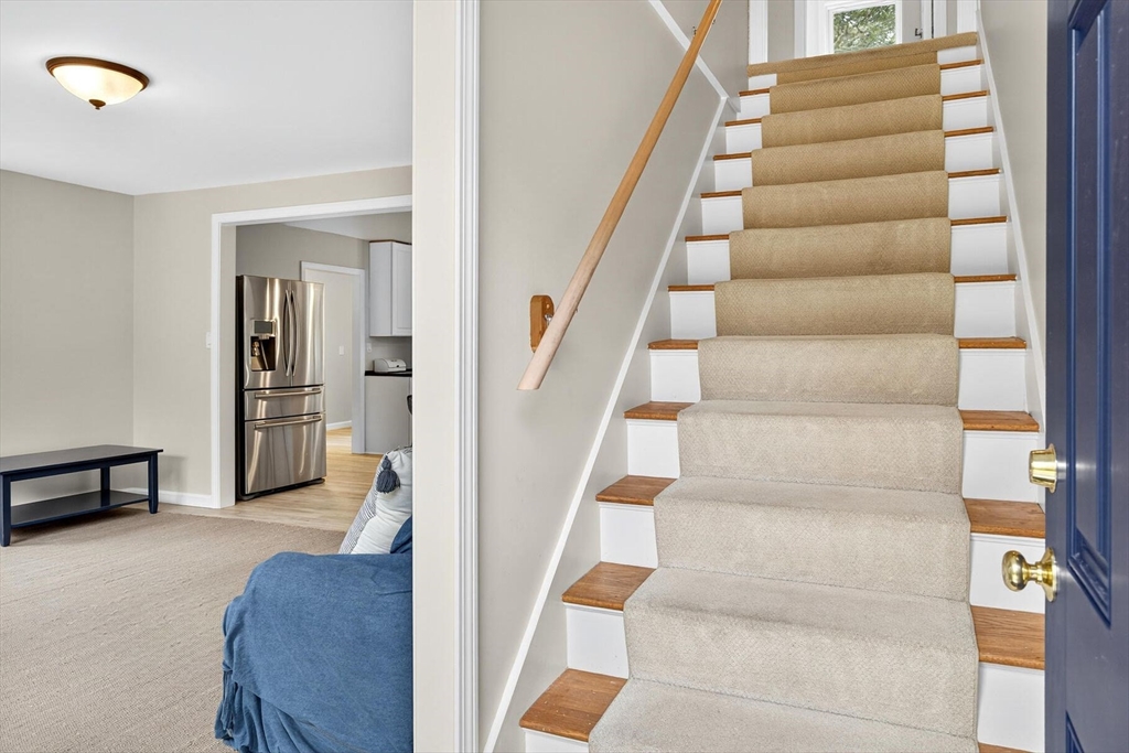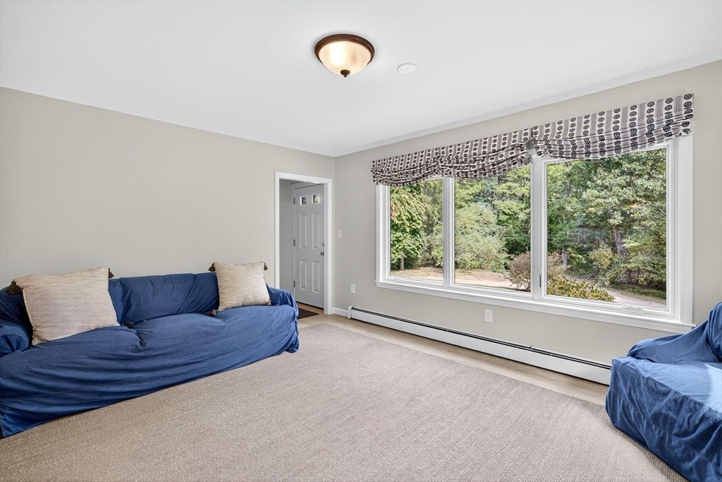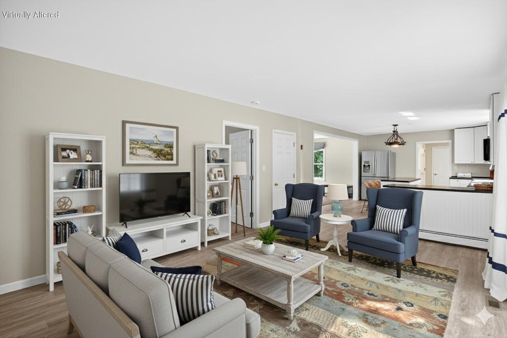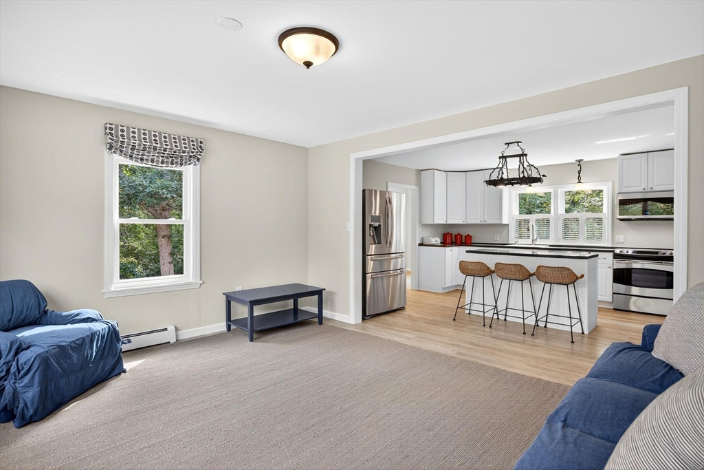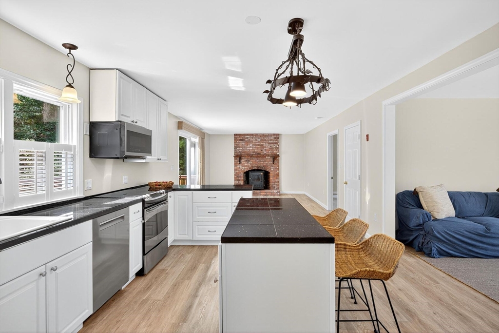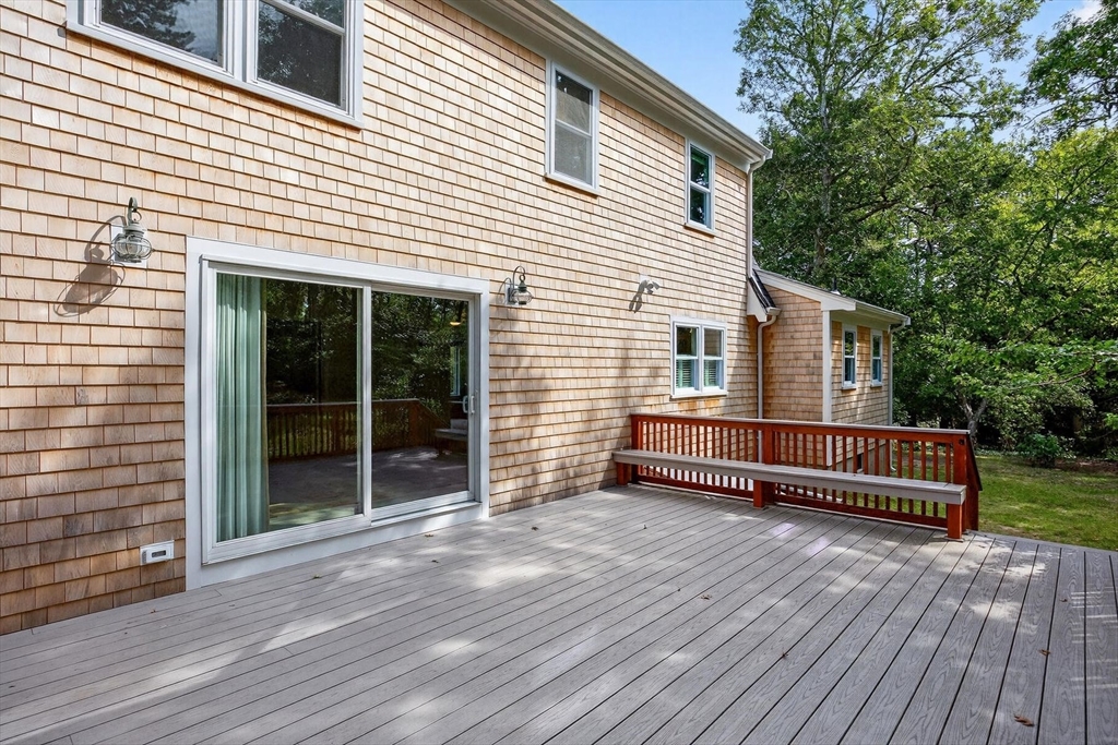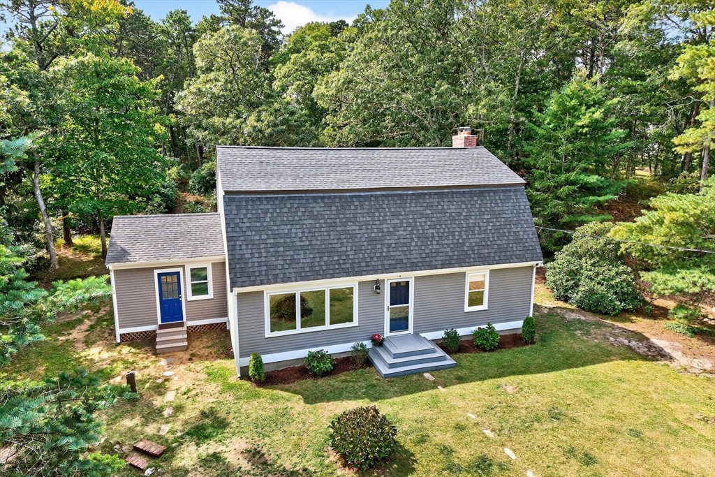 Discover peace and privacy in this South Orleans retreat. On nearly an acre, this property is completely surrounded by hundreds of acres of conservation land—yet is just minutes from village shops, bays, beaches, and all Orleans has to offer. The home welcomes you with a sun-filled, open-concept first floor where the kitchen, dining, and living areas create the perfect gathering space. A first-floor bedroom, and separate half bath with laundry, and versatile mudroom add convenience and flexibility. Upstairs, you will find generous sized primary bedroom as well as two additional bedrooms and a shared full bath. The lower level with high ceilings offers potential to expand your living area. Thoughtful 2024 upgrades enhance comfort and peace of mind, including new first-floor flooring (living room, kitchen, mudroom and bath), new dishwasher, new roof (soffit and ridge vent), repointed chimney, an oversized deck ideal for outdoor entertaining, and new siding.
