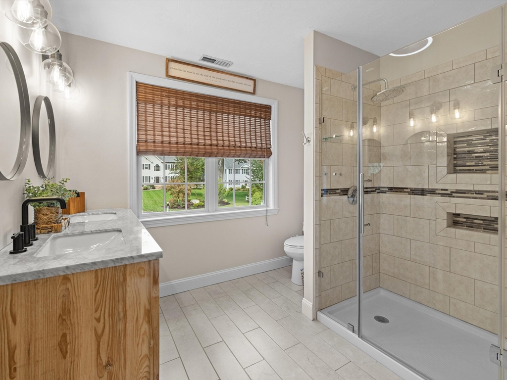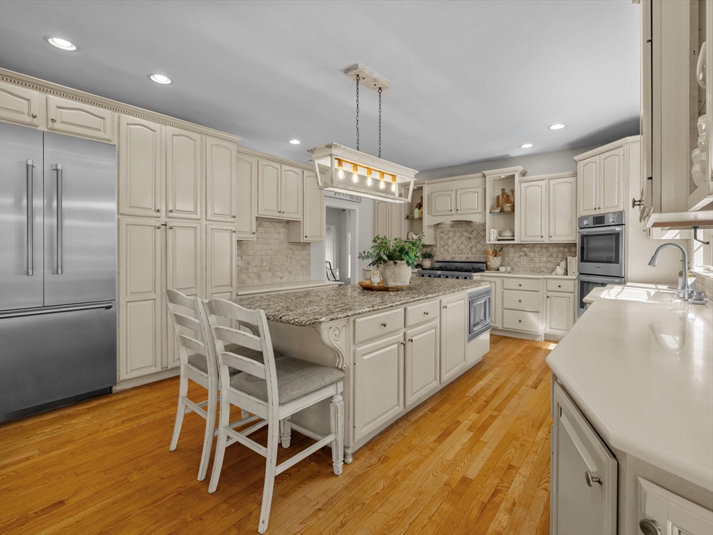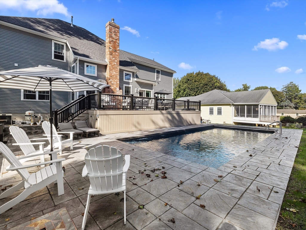 Impeccably updated and stylish 4 bed, 3.5 bath hip-roof Colonial located on a quiet cul-de-sac in desirable Shrewsbury. Over 4,600 sq. ft. of updated living space with hardwood floors throughout. Grand family room with vaulted ceilings and gas fireplace. Gourmet kitchen with Viking natural gas range, granite island, built-in refrigerator, double wall ovens, Bosch dishwasher, and a spacious breakfast area. Formal dining room, living room, home office, powder room, and mudroom complete the main level. Upstairs offers 3 large bedrooms, renovated full bath, laundry room, and a luxurious primary suite with sitting area, spa-like en-suite bath, and custom walk-in closet. Finished basement features a home gym, game/media room, full bath, and storage. Enjoy outdoor living with a 2025 heated saltwater pool with automatic retractable pool cover, stone patio, and new deck. Close to top-rated schools, shopping, parks, and major commuter routes. Move-in ready!