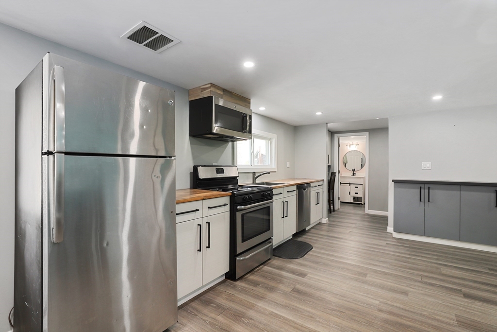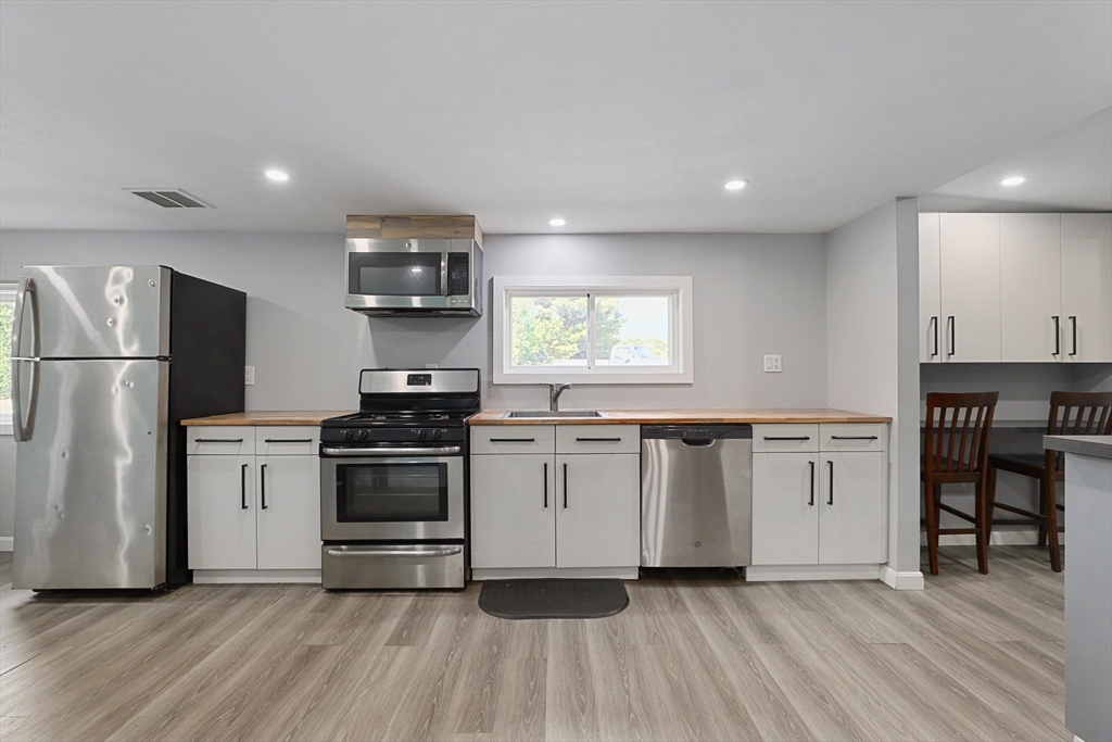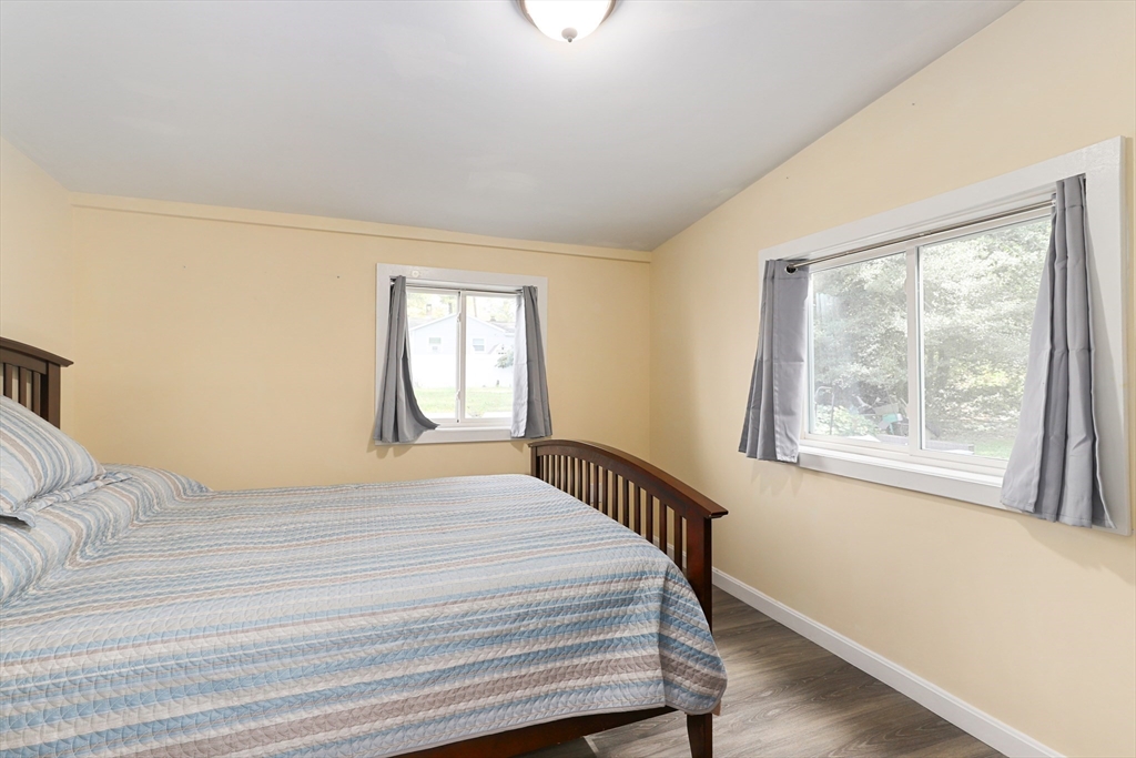 Charming bungalow-style home nestled in a quiet lakeside community, just steps from the water. This renovated single-level home features 3 bedrooms and 1 bathroom, blending peaceful surroundings with easy access to the lake. Inside, you’ll find a bright, open living area with newer flooring throughout. The updated kitchen showcases butcher block countertops, a cozy coffee nook, and generous pantry space. Fully remodeled in 2022, the home includes newer windows, flooring, vinyl siding and a newer septic system,. The property offers water views and plenty of outdoor space, giving you the flexibility to create your ideal outdoor retreat. With gas heat and brand new mini-split, comfort is ensured year-round. Conveniently located near the commuter rail, shopping and dining.