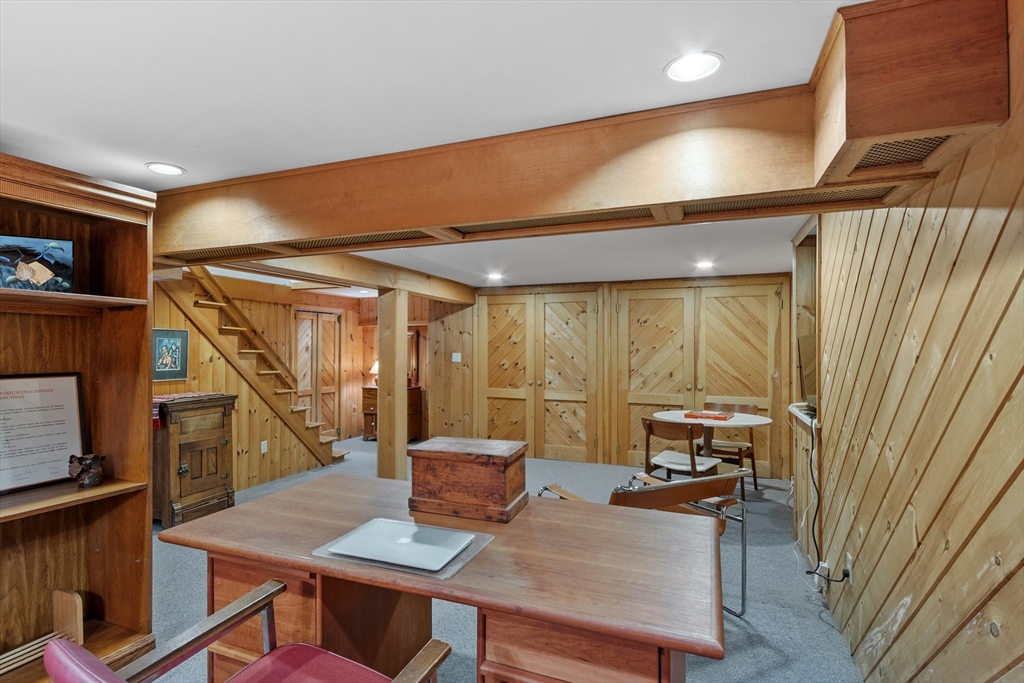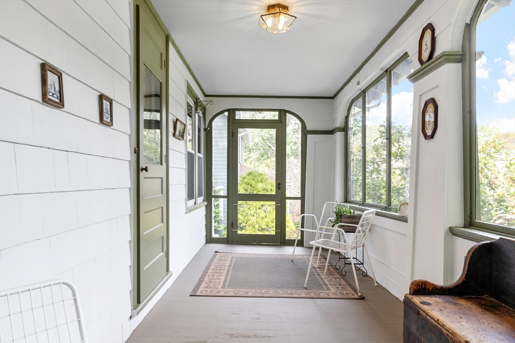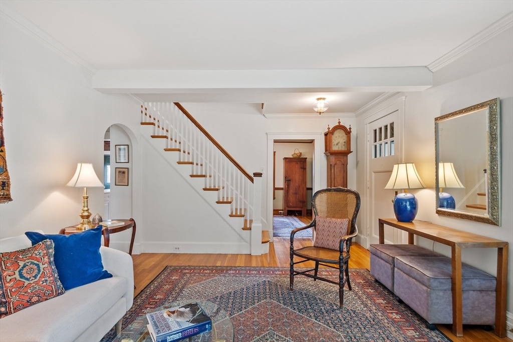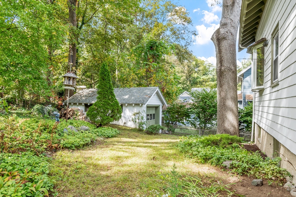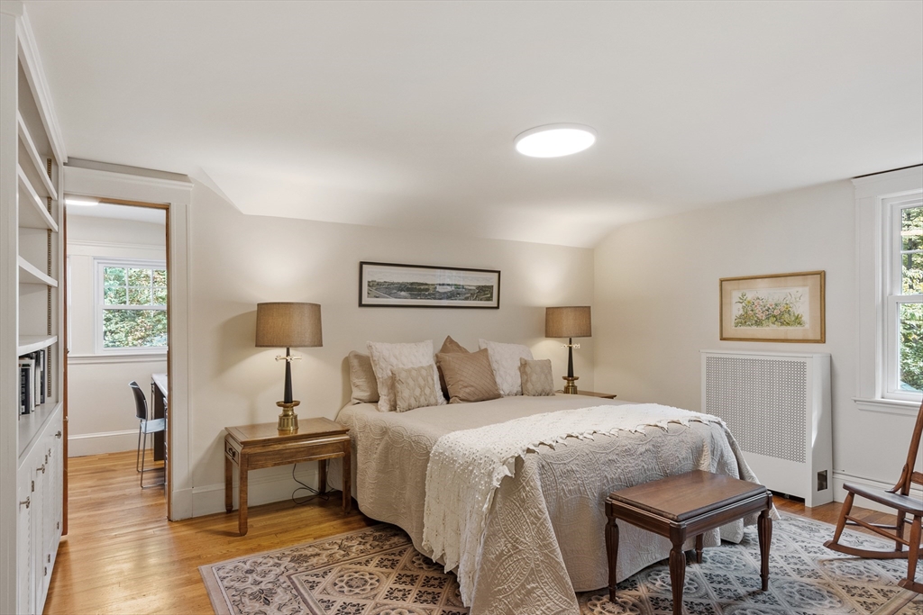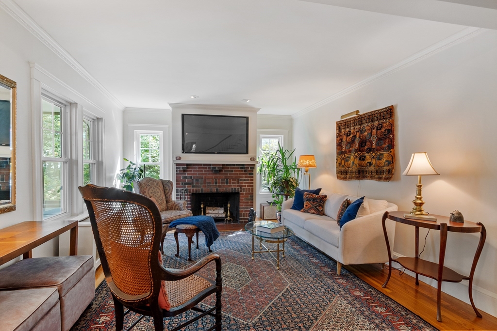 On sought-after Follen Hill, this fine 1928 home is recognized as one of few examples of the Bungalow style of architecture in Lexington. Outside, note the deep eaves, bracketed side gables and a room-sized screened front porch with distinctive columned woodwork. A gracious living room invites you to sit by the fireplace and is complemented by a formal dining room. The eat-in kitchen was redone by the owner with particular quality and includes an oversized bay window that overlooks a charming backyard. The first floor also has a delightful retro full bath and a bedroom/den with a wall of custom bookcases, cabinet and double closets. Upstairs, find a generous primary bedroom with an adjoining 2-person office. There is a bath and a sunny second bedroom with two walk-in closets. The lower level has another custom room with recessed lighting, diagonal fir walls and a full bath with jetted tub. Enjoy living near Wilson Farm, public transportation, Route 2 and the Bikeway. Welcome home!