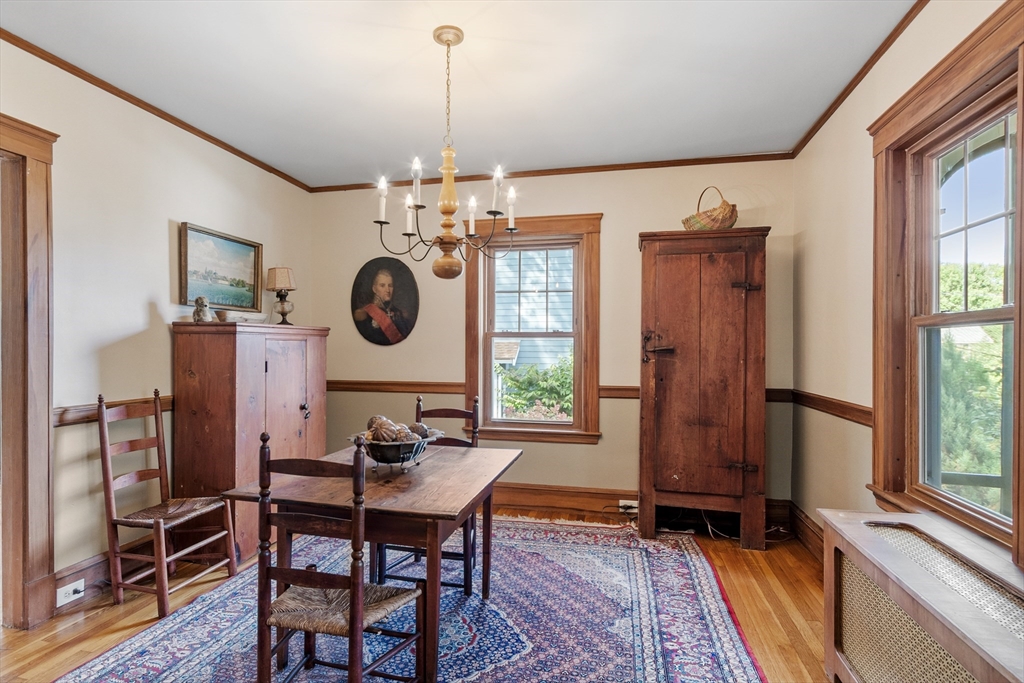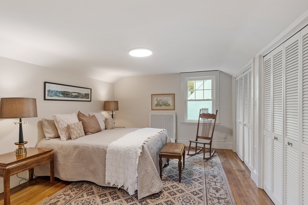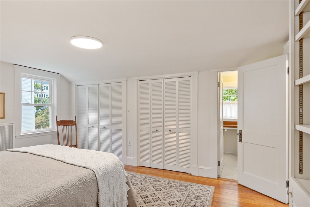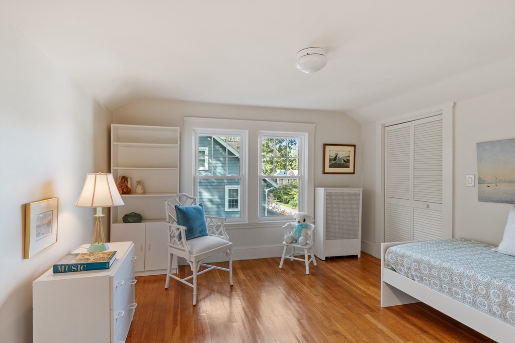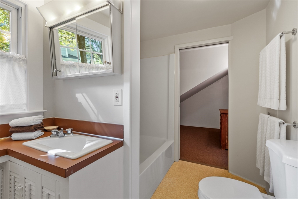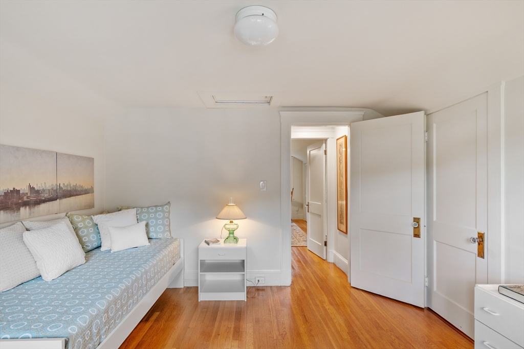 On sought-after Follen Hill, this fine 1928 home is recognized as one of few examples of the Bungalow style of architecture in Lexington. Outside, note the deep eaves, bracketed side gables and a room-sized screened front porch with distinctive columned woodwork. A gracious living room invites you to sit by the fireplace and is complemented by a formal dining room. The eat-in kitchen was redone by the owner with particular quality and includes an oversized bay window that overlooks a charming backyard. The first floor also has a delightful retro full bath and a bedroom/den with a wall of custom bookcases, cabinet and double closets. Upstairs, find a generous primary bedroom with an adjoining 2-person office. There is a bath and a sunny second bedroom with two walk-in closets. The lower level has another custom room with recessed lighting, diagonal fir walls and a full bath with jetted tub. Enjoy living near Wilson Farm, public transportation, Route 2 and the Bikeway. Welcome home!